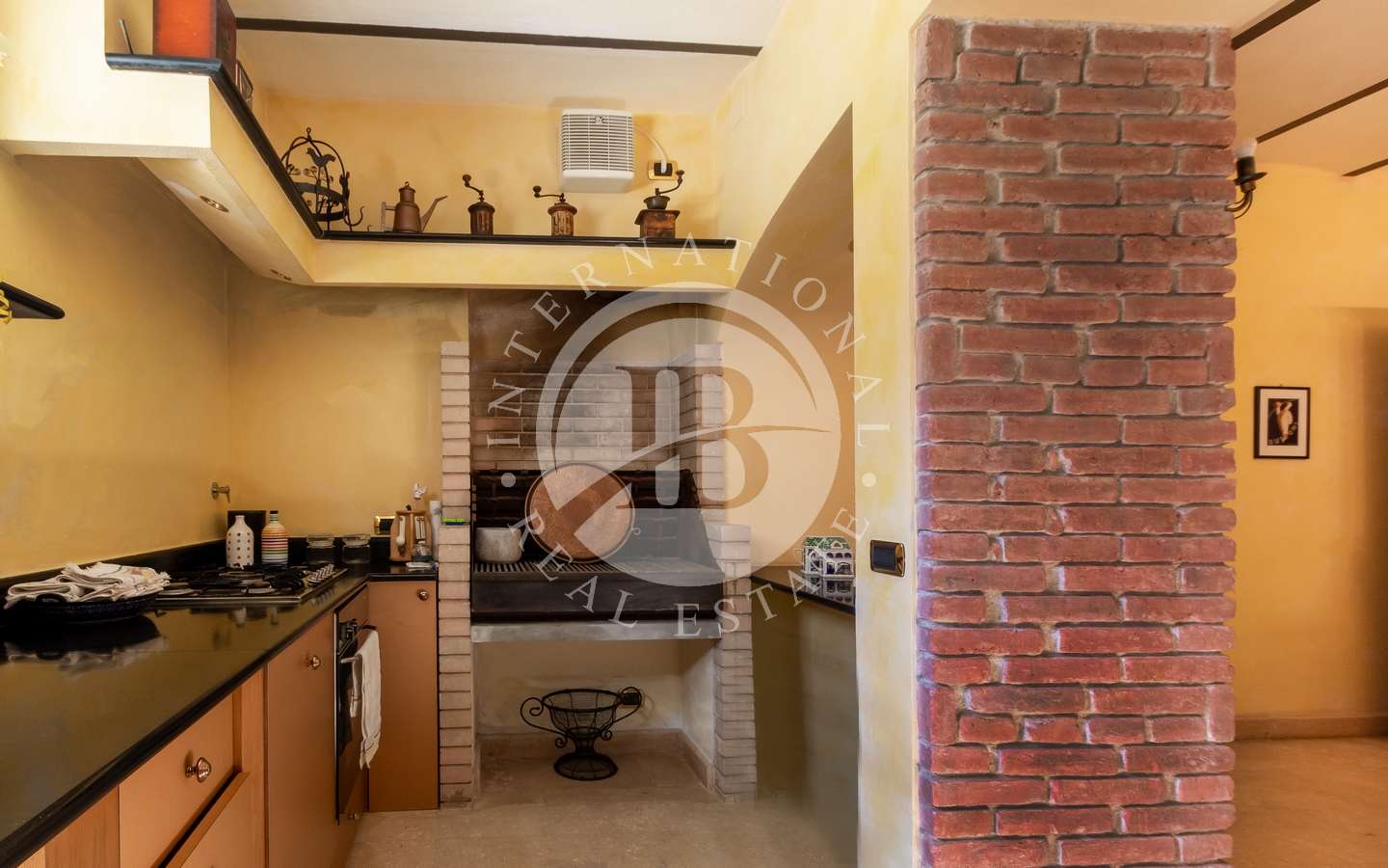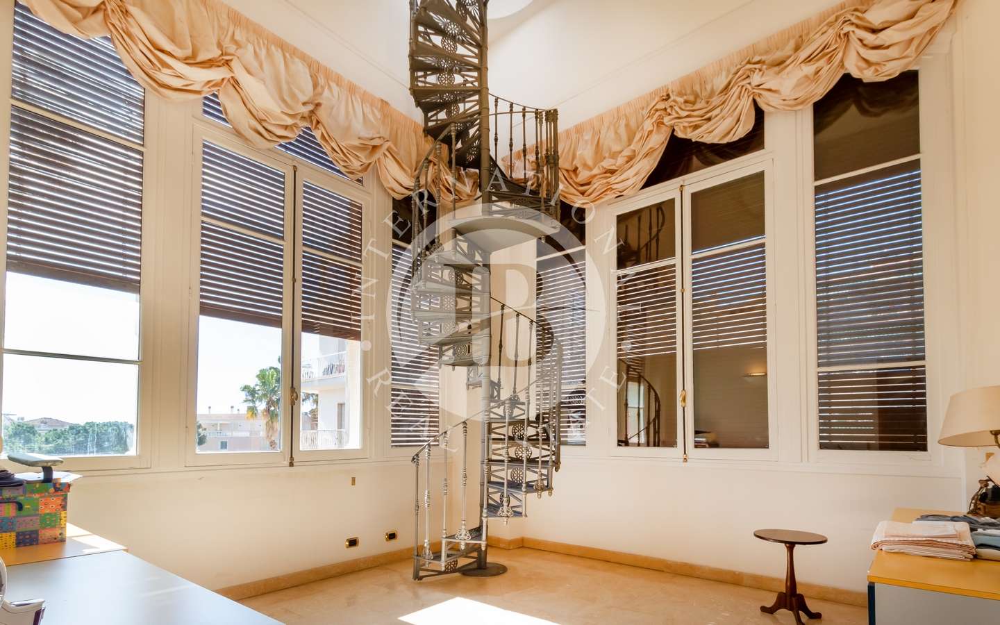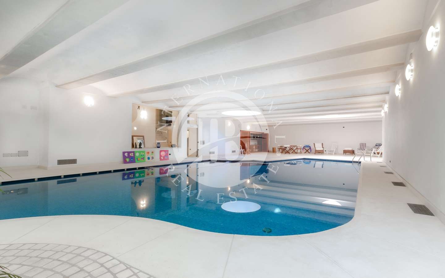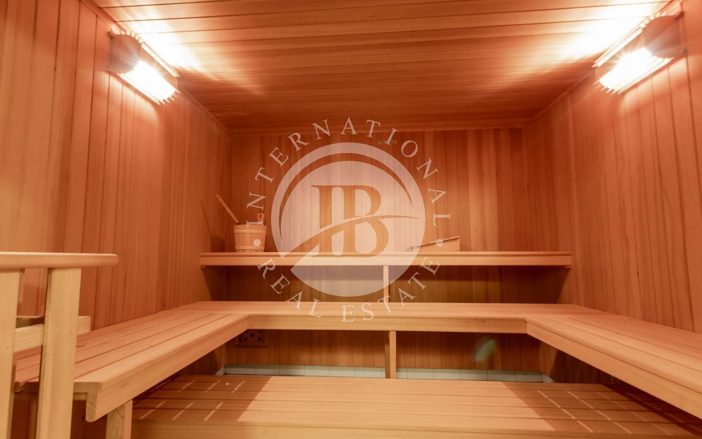 , abbracciato da rigogliosi arbusti e alte palme, conferisce alla proprietà un'aura di esclusività e tranquillità. La piscina coperta, la sauna e il bagno turco offrono momenti di puro relax, mentre il parcheggio sotterraneo accoglie fino a dieci automobili con discrezione e comodità.