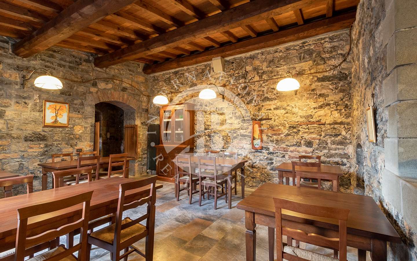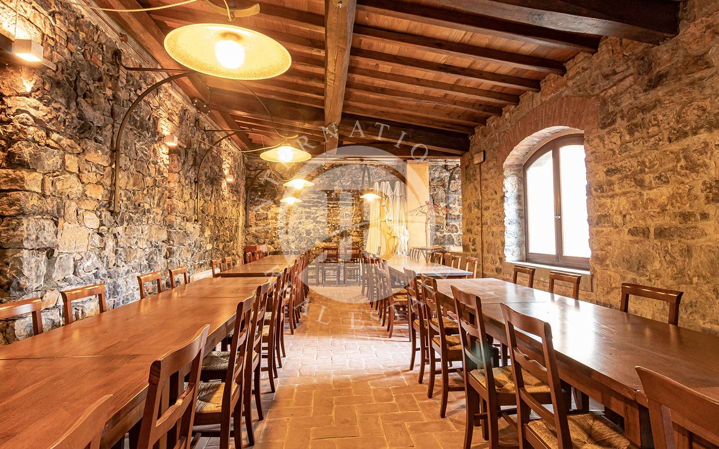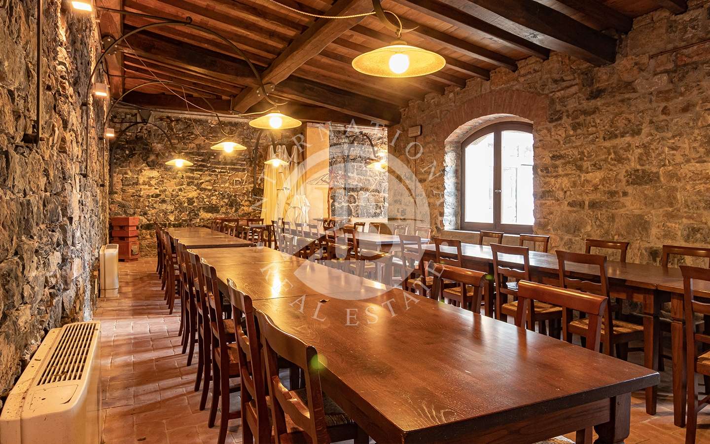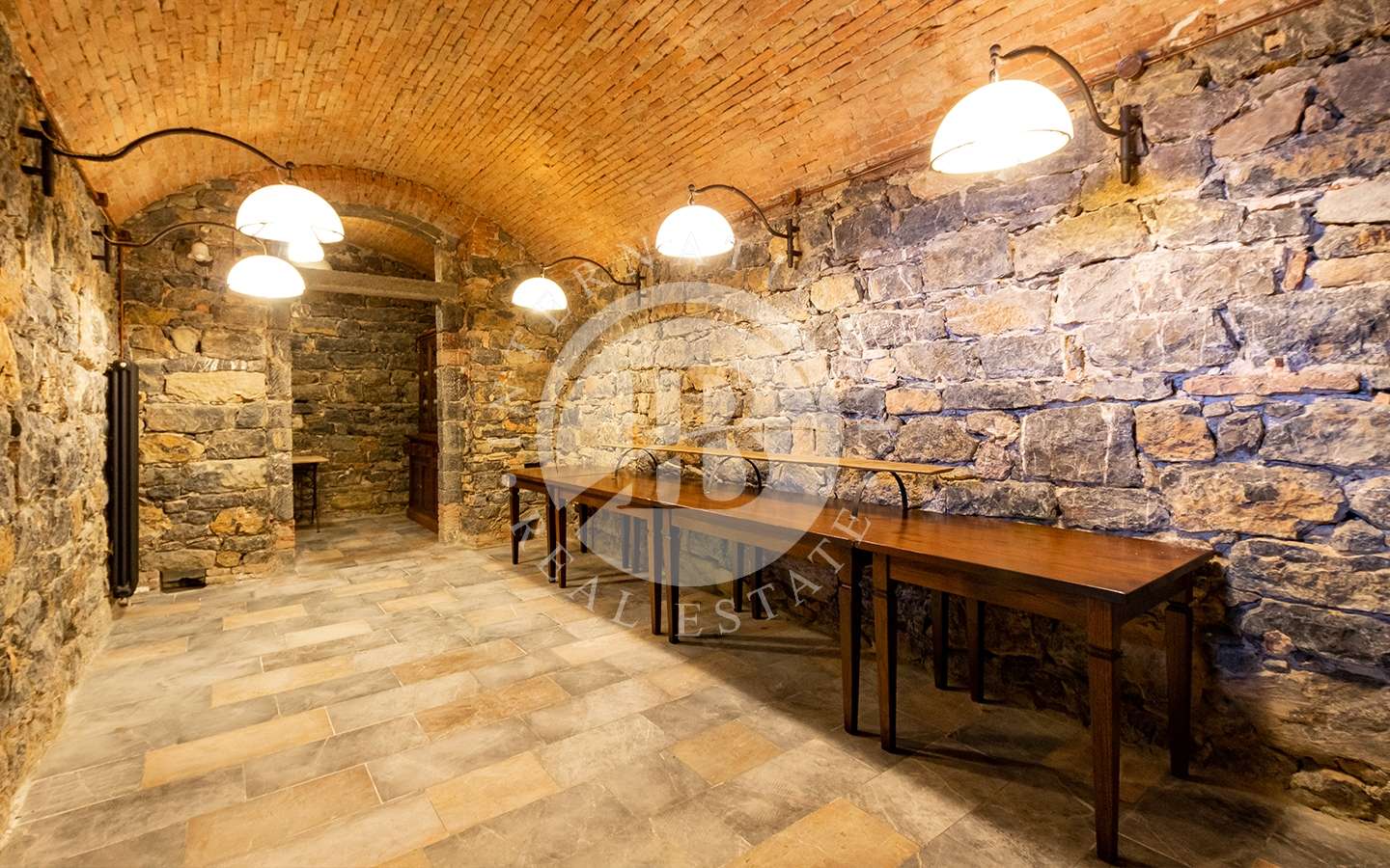 Le finiture come pietre, mattonelle in cotto dell’impruneta, arenaria, travi in castagno e ferro battuto sono state mantenute anche dopo l’opera di restaurazione, per lasciare intatto lo stile e la storia che possiede la fortezza.