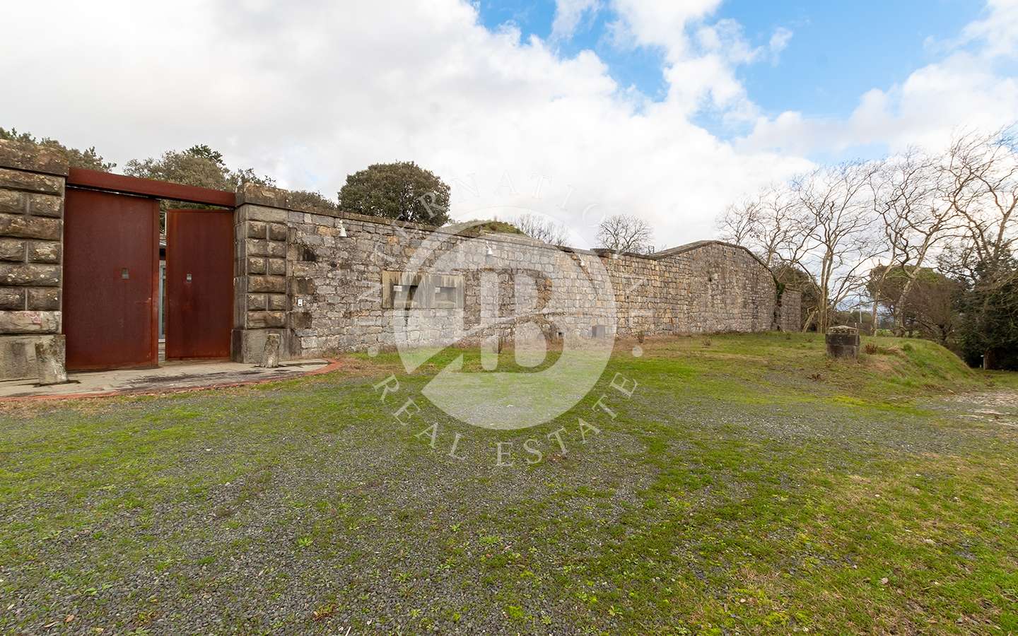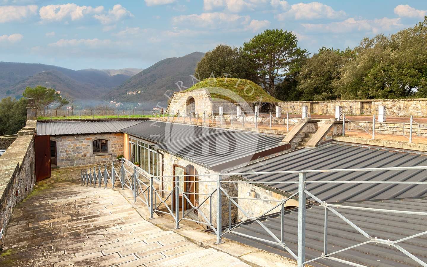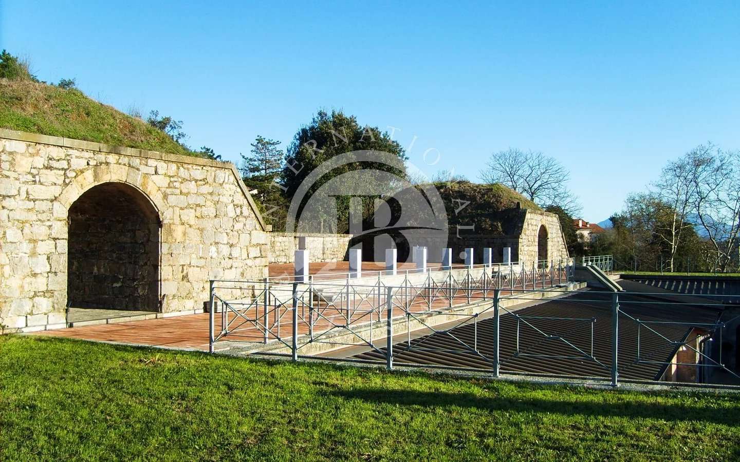 A seguire, l’accesso al piano rialzato di c.a 80 mq è dato da una gradinata percorribile anche con automezzi di servizio.