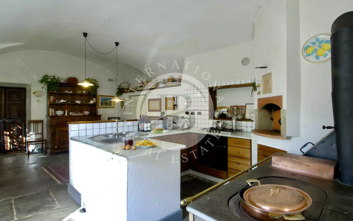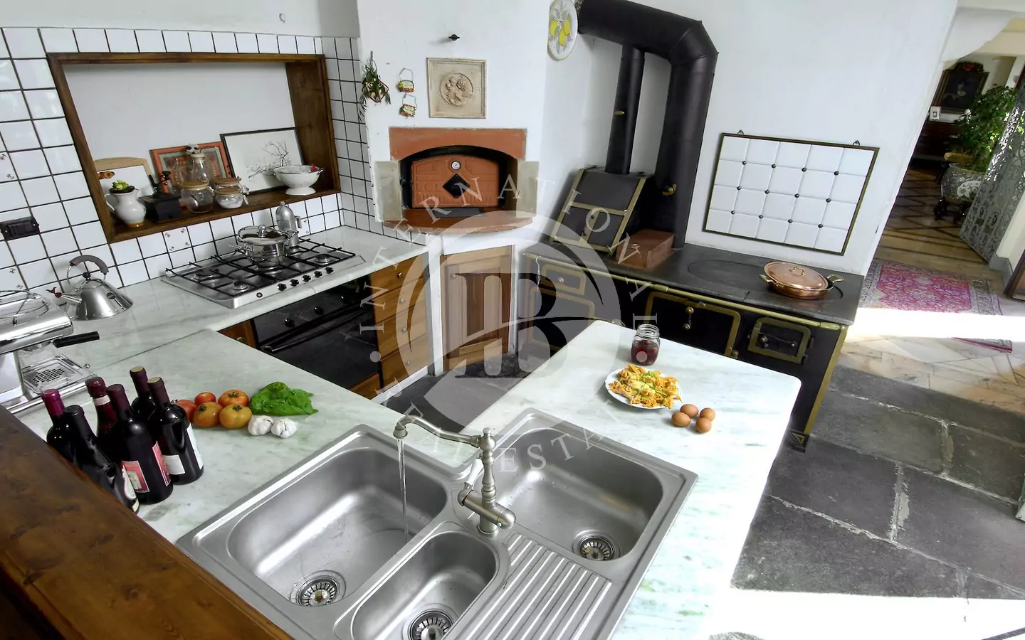 Piano Terra: ingresso sull’imponente vano scala in pietra, ampia cucina in muratura con soffitti a volta e rivestimenti in marmo, grande cantina e una splendida sala da pranzo con camino originale del Settecento e portafinestra lavorata a mano che si apre su un terrazzo panoramico con vista mozzafiato sulla valle.