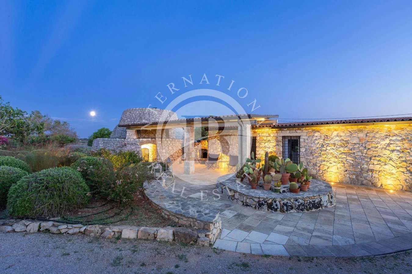 Il Giardino, completamente Illuminato e Irrigato con un sistema automatico, dispone di una Cisterna Interrata da 15.000 litri e dell’autorizzazione per realizzare un Pozzo Artesiano da cui attingere acqua dolce.