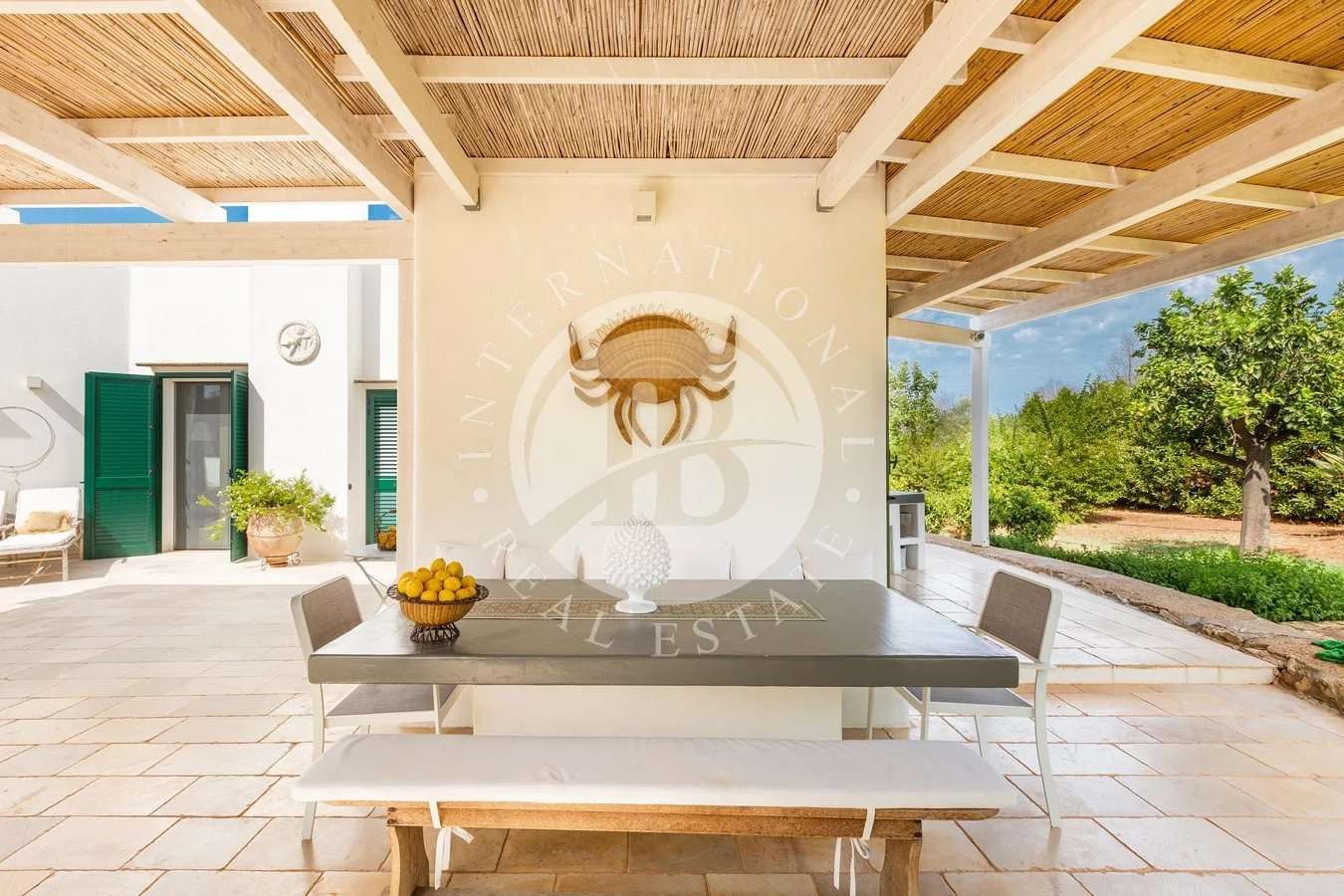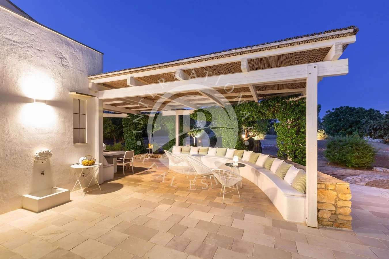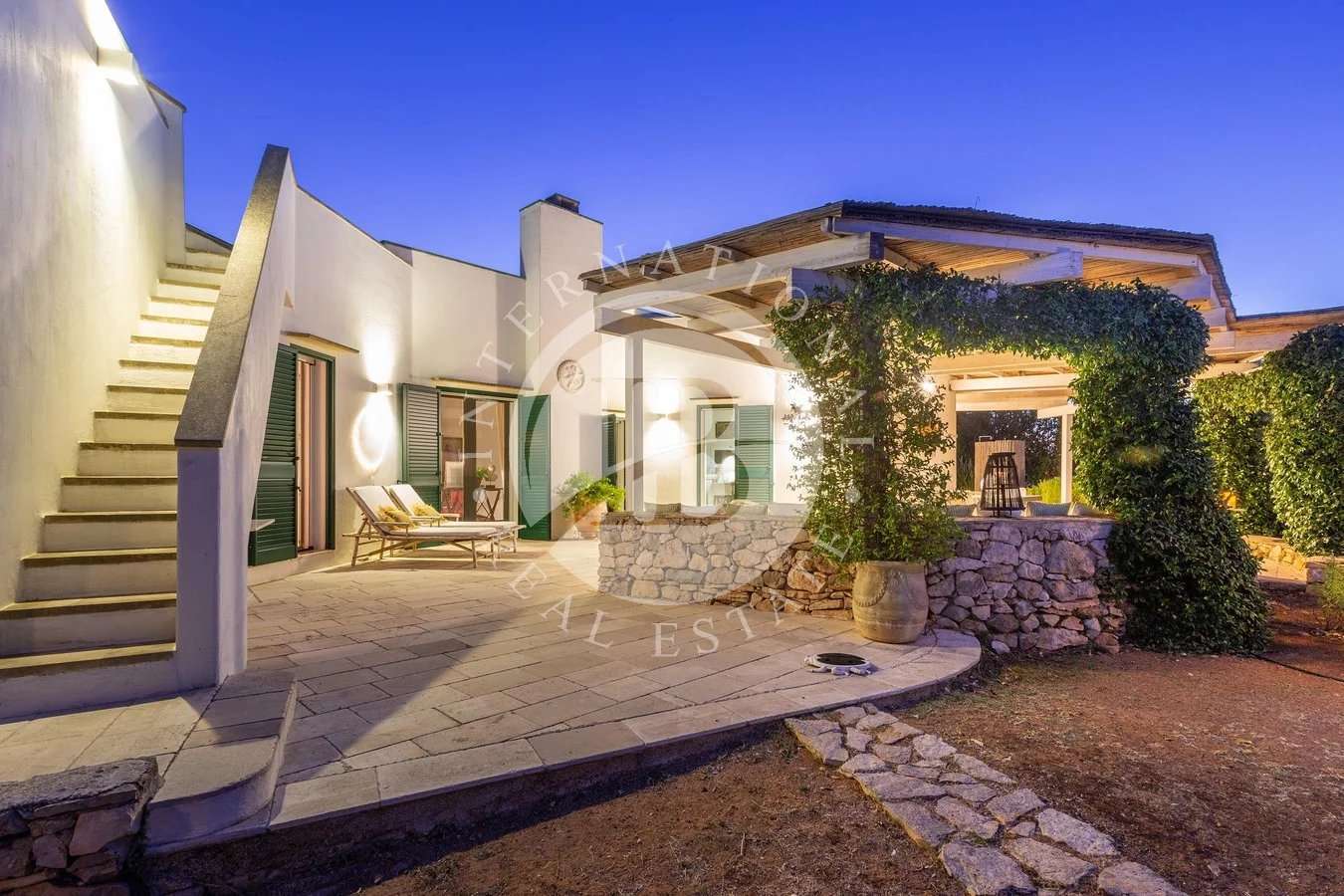 Lussuosa Villa di 210 mq coperti con Antica Pajara Ristrutturata, immersa in un contesto di ville prestigiose e circondata da un Giardino di 5.000 mq a 3 km dalle Spiagge. La Villa si sviluppa su un unico livello, questa proprietà accoglie un Ampio Living Open Space con Camino, 1 Cucina, 1 Vano Lavanderia, 1 Bagno di Servizio e 1 Camera Padronale con Bagno En Suite. Un vialetto pedonale ben sistemato, permette l'accesso alla Lussuosa Villa che, frontalmente, ospita una Confortevole Terrazza. La Villa dispone di un Meraviglioso Pergola…