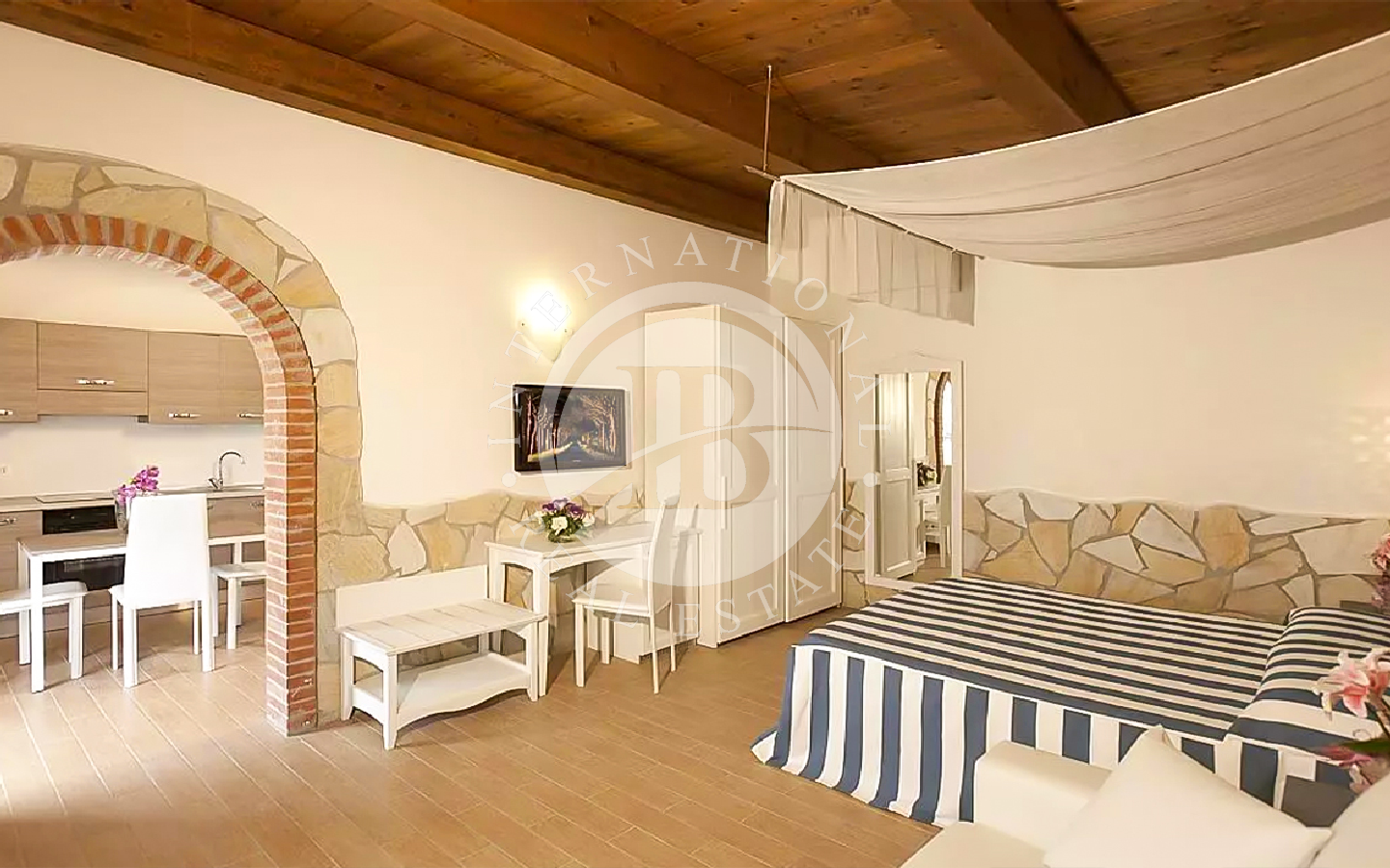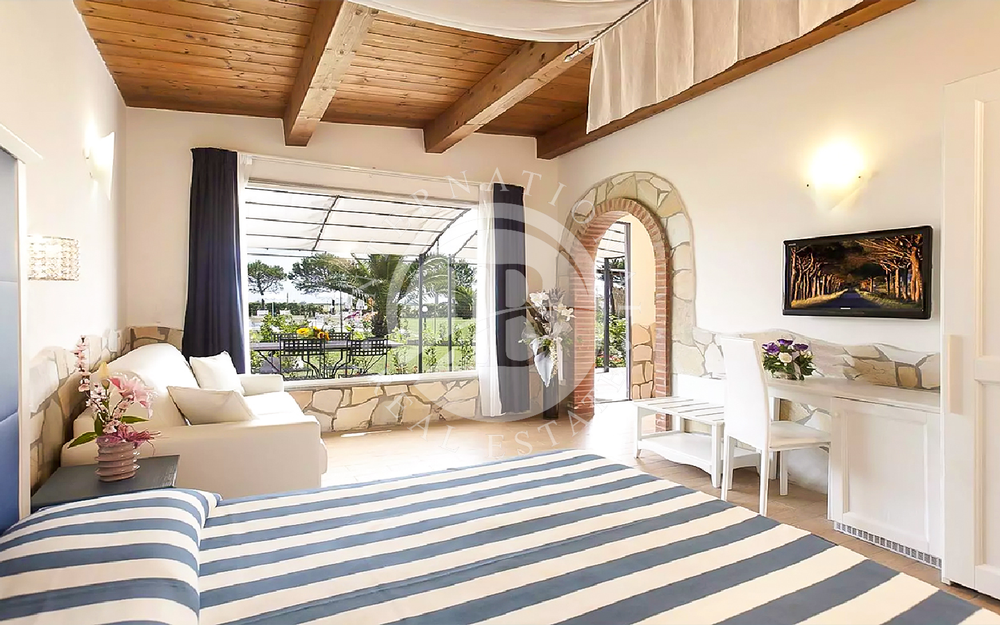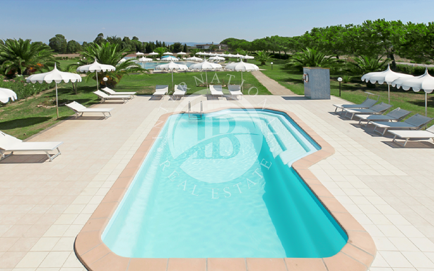 ti che si affacciano su giardini privati. A disposizione degli ospiti c'è un ampio ristorante che unisce il gusto moderno e toscano, in grado di accogliere comodamente tutti gli ospiti. Una spaziosa area per la colazione e un bar contribuiscono a rendere il soggiorno in questo resort di lusso esclusivo e confortevole. Tra i servizi offerti, si possono trovare un campo da tennis, un campo da beach volley, 4 piscine (di cui 2 dedicate ai bagni dei cani), un bar, un ristorante e un'area attrezzata e recintata per l'Agility-dog, con doccia e bar dedicati ai cani e un parcheggio riservato ai clienti. L'intera struttura, costruita nel 2002 e completata in più fasi fino al 2023, è stata ristrutturata e rinnovata negli arredi tra il 2019 e il 2023, ottenendo la classificazione RTA 4 stelle e presentandosi in condizioni impeccabili. La maggior parte delle ville si caratterizza per muri in pietra naturale, tetti in legno e mobili di alta qualità. Sono dotate di riscaldamento centralizzato, Wi-Fi, telefono, cassaforte e TV satellitare. Ideale per soddisfare qualsiasi esigenza, il resort offre comfort su misura per grandi e piccoli. La sua posizione strategica lo rende ideale per famiglie, con la presenza di campi sportivi e un parco giochi. Inoltre, il resort è perfetto per chi desidera continuare un'attività ricettiva di alto livello, offrendo la possibilità di vivere all'interno della struttura stessa. La sua posizione pianeggiante, tra il mare e la città, a breve distanza dalle incantevoli spiagge della Maremma e dai servizi offerti da Grosseto, lo rende un luogo ideale immerso nel verde, circondato da paesaggi collinari e facilmente accessibile alle attrazioni circostanti, come il Parco Naturale della Maremma, l'oasi faunistica della Diaccia Botrona, piste ciclabili e cantine vinicole per l'acquisto di prodotti locali.