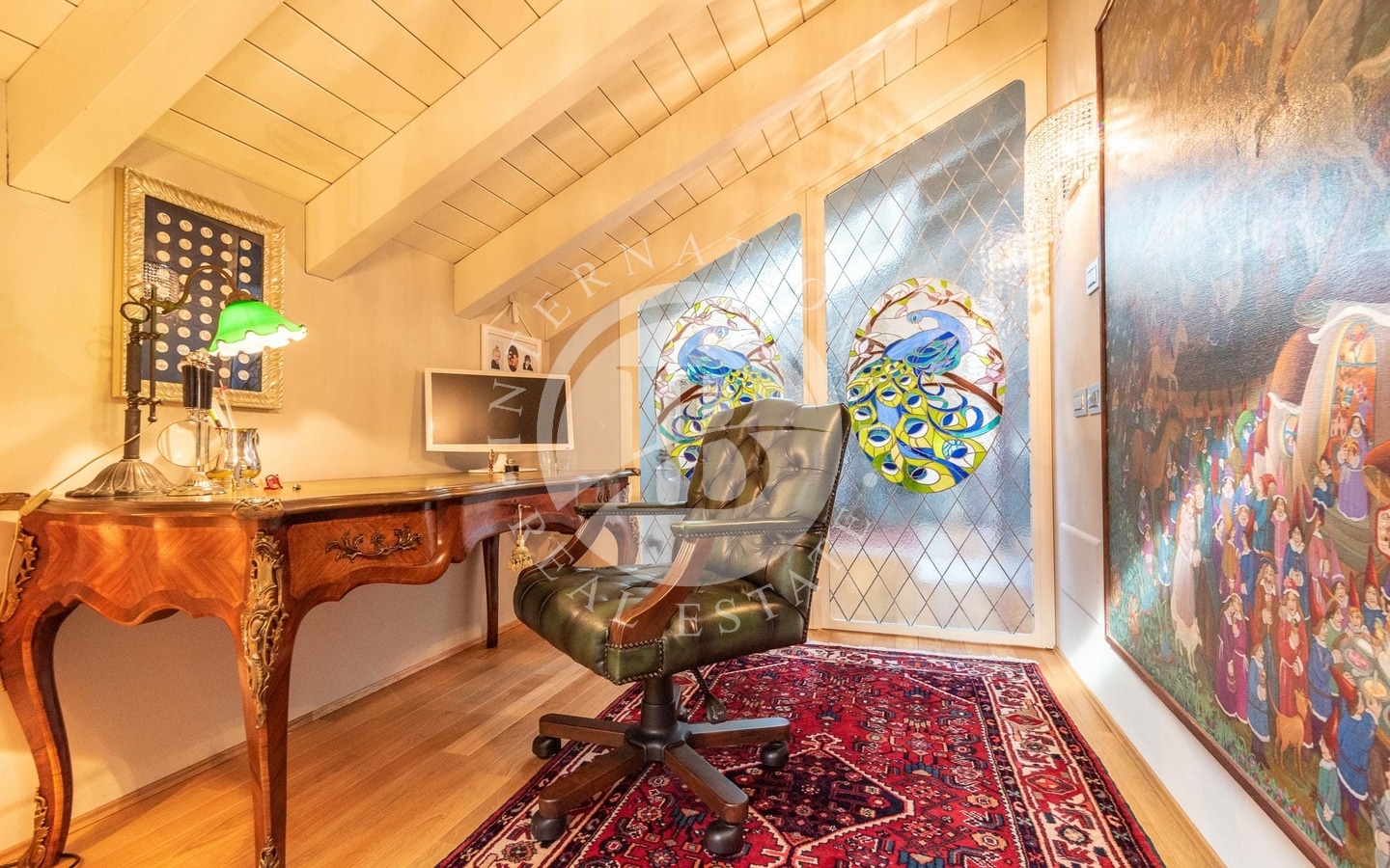 Questa elegante villa, situata sulle sponde del Lago Maggiore, si distingue per il suo fascino Neogotico e per il parco che la circonda. Costruita nel secolo scorso, la residenza è stata restaurata con attenzione, conservando i suoi dettagli originali. Si sviluppa su due piani principali, un attico e un piano seminterrato.Al piano terra, un grande terrazzo coperto conduce all’ingresso principale, che introduce a raffinati saloni decorati con affreschi, una sala da pranzo e una sala musica. I vari livelli della villa sono collegati da…