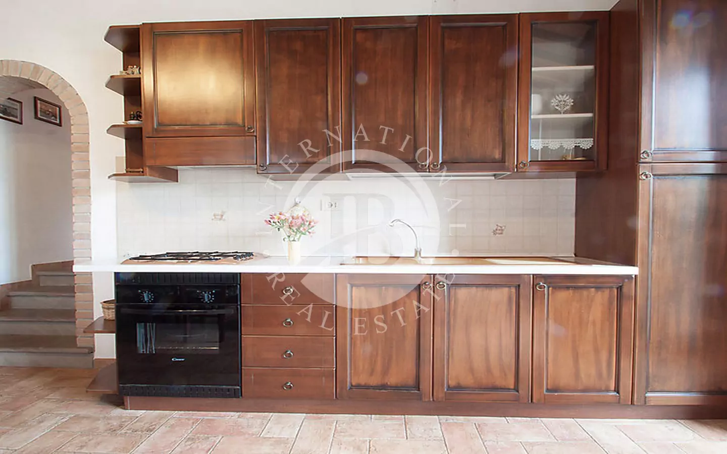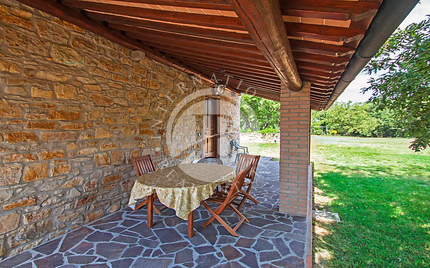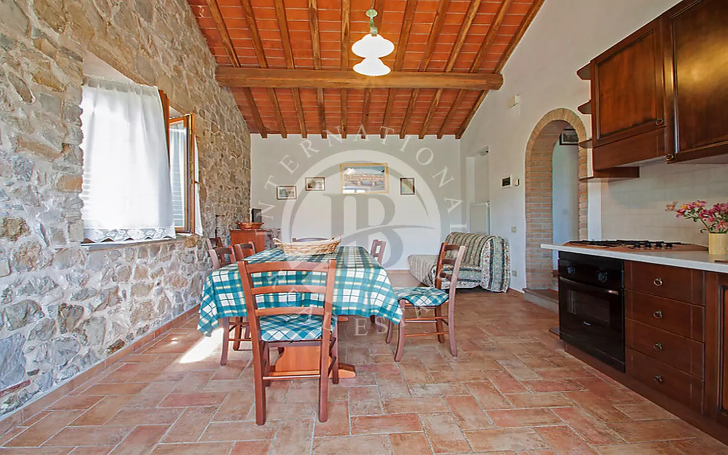 le di circa 250 mq, oggetto di una ristrutturazione curata che ha saputo preservare tutto il fascino dello stile toscano. Gli interni si distinguono per i dettagli architettonici originali, come le pareti in pietra a vista, i soffitti con travi e travicelli in legno di castagno e le mezzane, che conferiscono un’atmosfera calda, accogliente e autentica.