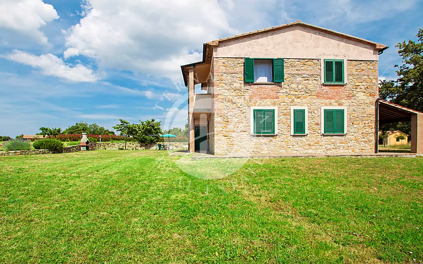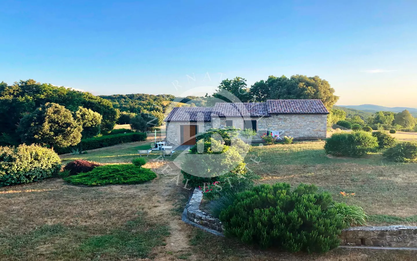 All’interno della proprietà si trovano anche tre garage per un totale di 75 mq, una cisterna da 18 metri cubi, un pozzo con casottino tecnico di 6 mq, un locale tecnico, e due ruderi da acquistare separatamente, rispettivamente di 100 mq e 80 mq. Vi è inoltre la possibilità di ampliare ulteriormente la proprietà con l’acquisto di altri 20 ettari di terreno contigui, dove sorge un ulteriore rudere di circa 100 mq.