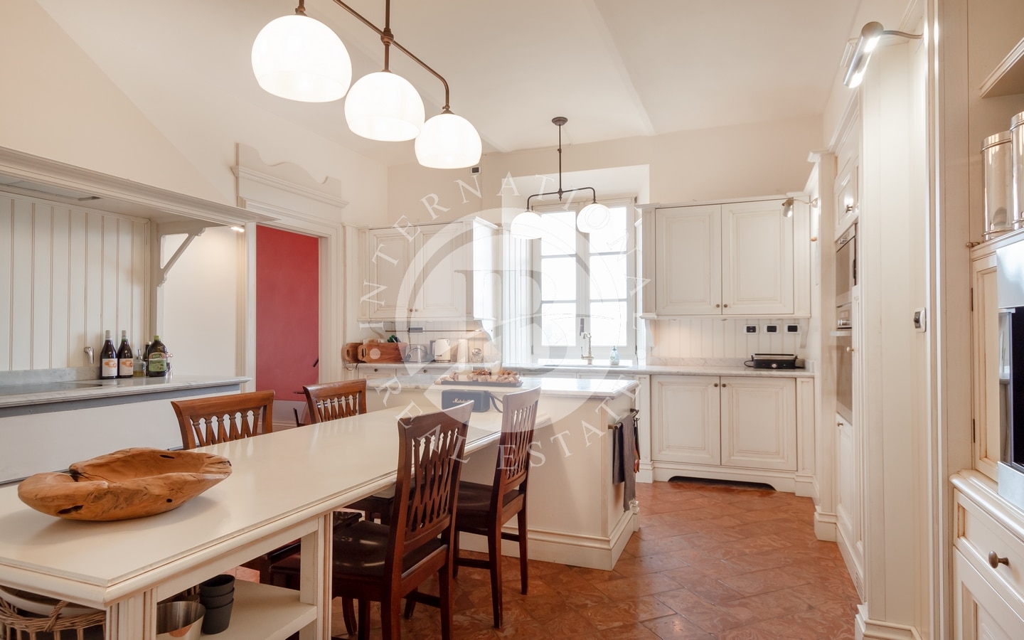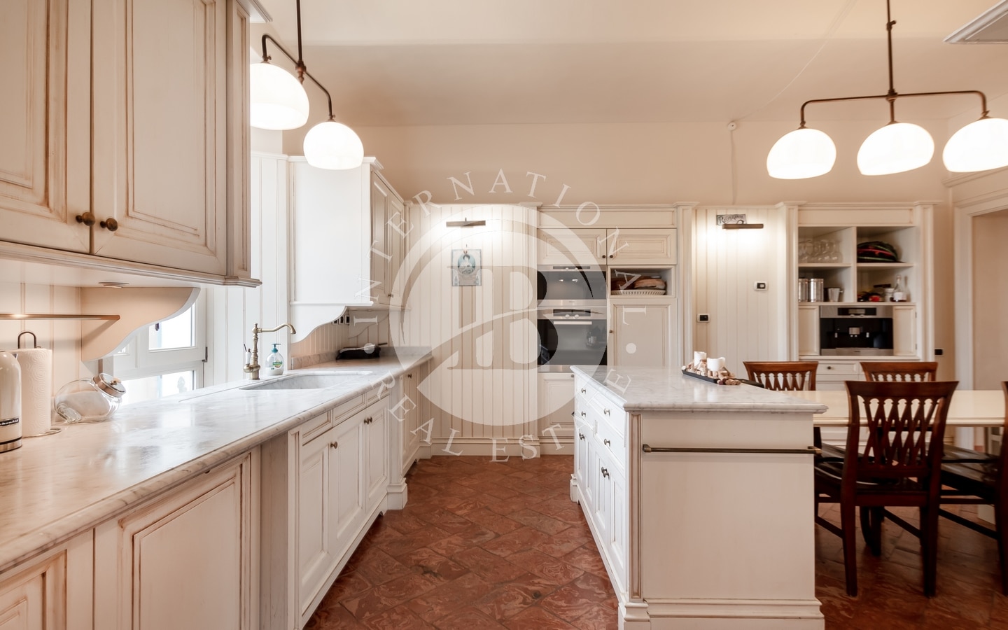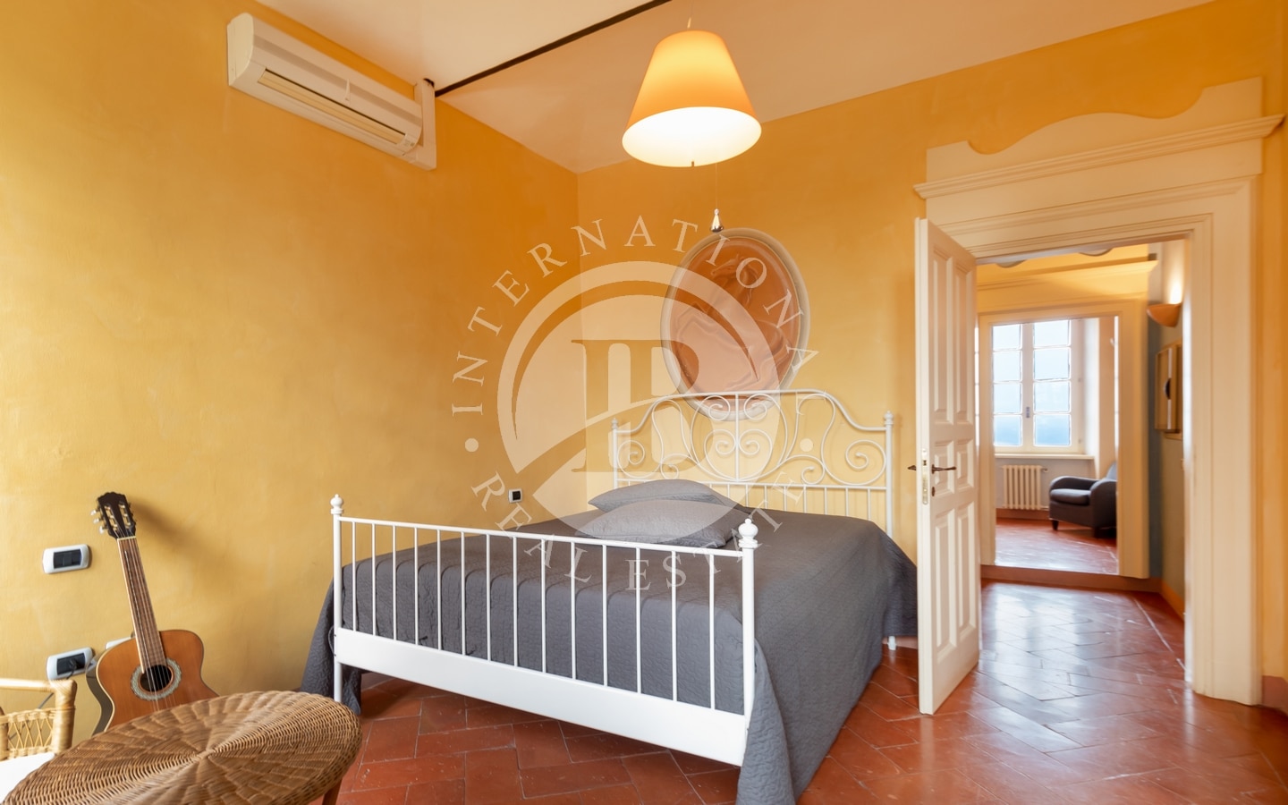 L'abitazione principale si estende per circa 364 mq e, al piano terra, accoglie una raffinata zona giorno composta da salotto con camino, sala da pranzo e cucina. Al piano superiore, la zona notte ospita tre ampie camere da letto, ognuna con bagno privato, oltre a una stanza guardaroba e una lavanderia.