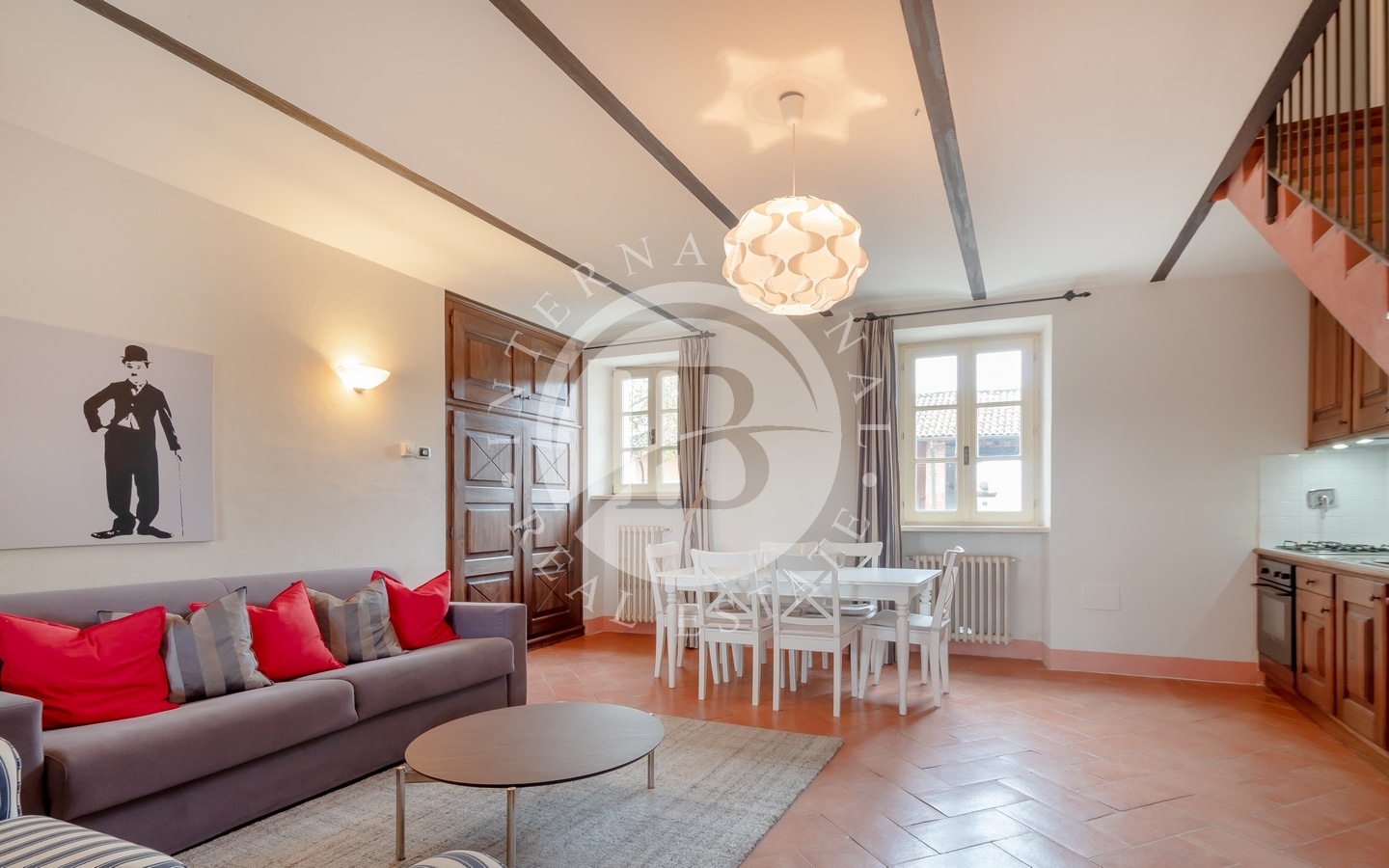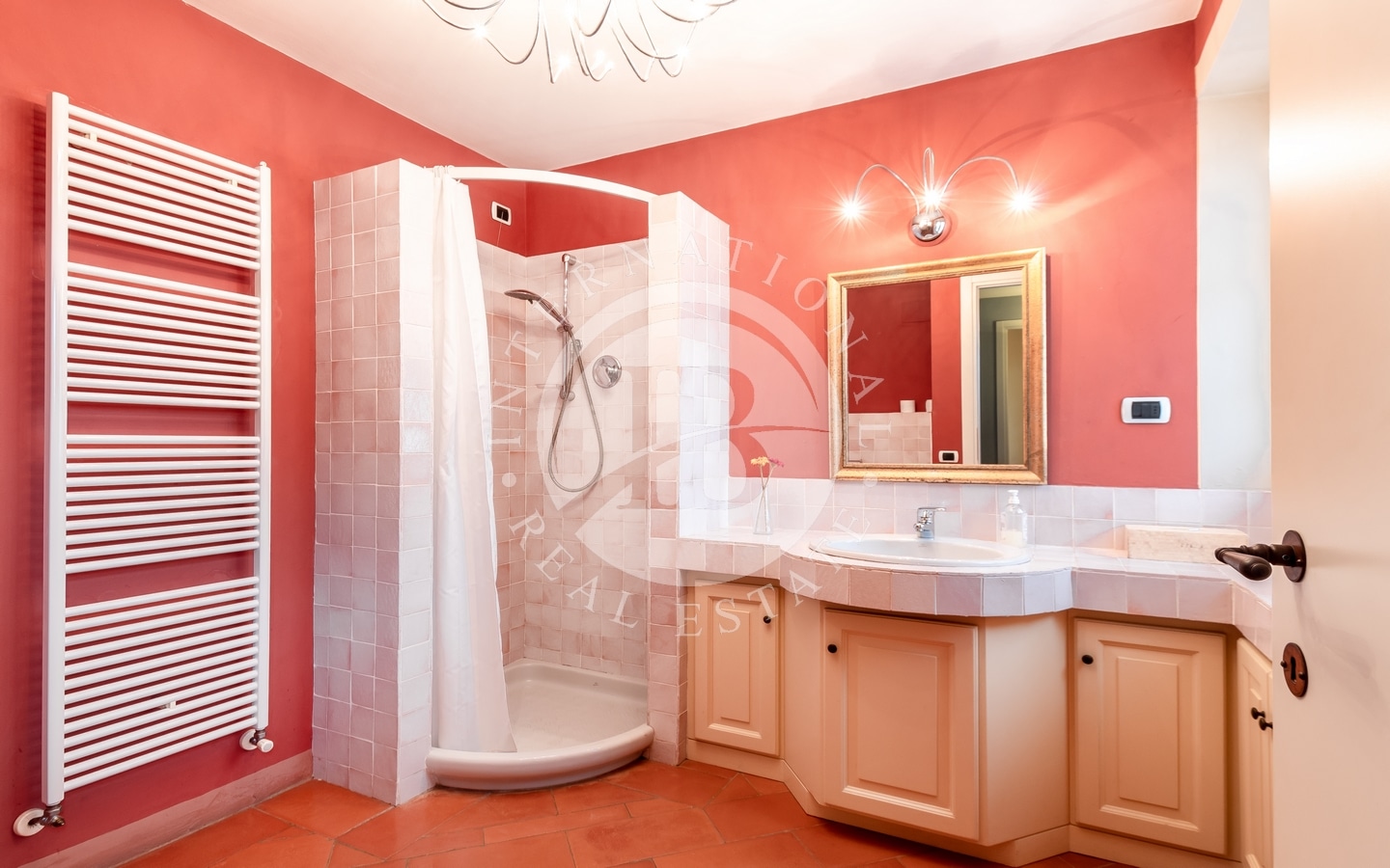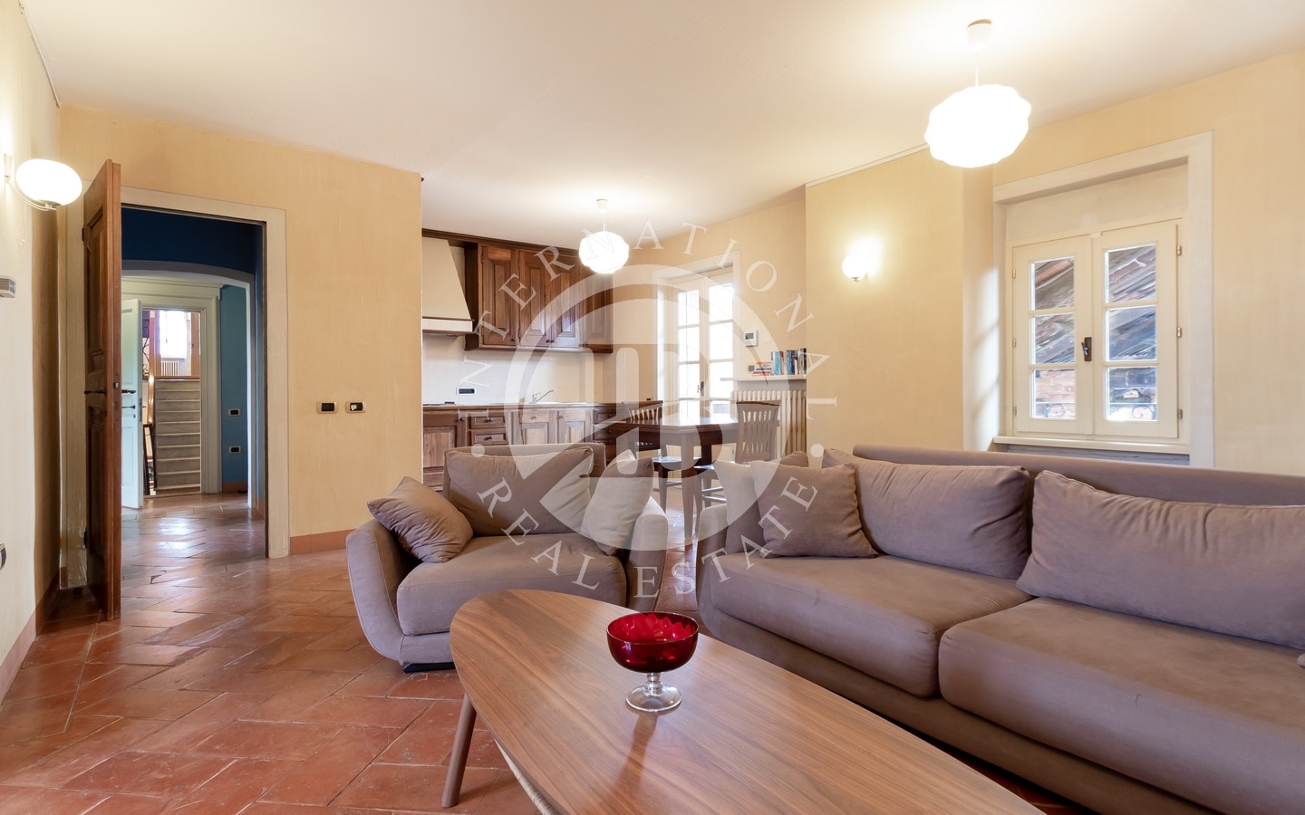 L'abitazione principale si estende per circa 364 mq e, al piano terra, accoglie una raffinata zona giorno composta da salotto con camino, sala da pranzo e cucina. Al piano superiore, la zona notte ospita tre ampie camere da letto, ognuna con bagno privato, oltre a una stanza guardaroba e una lavanderia.