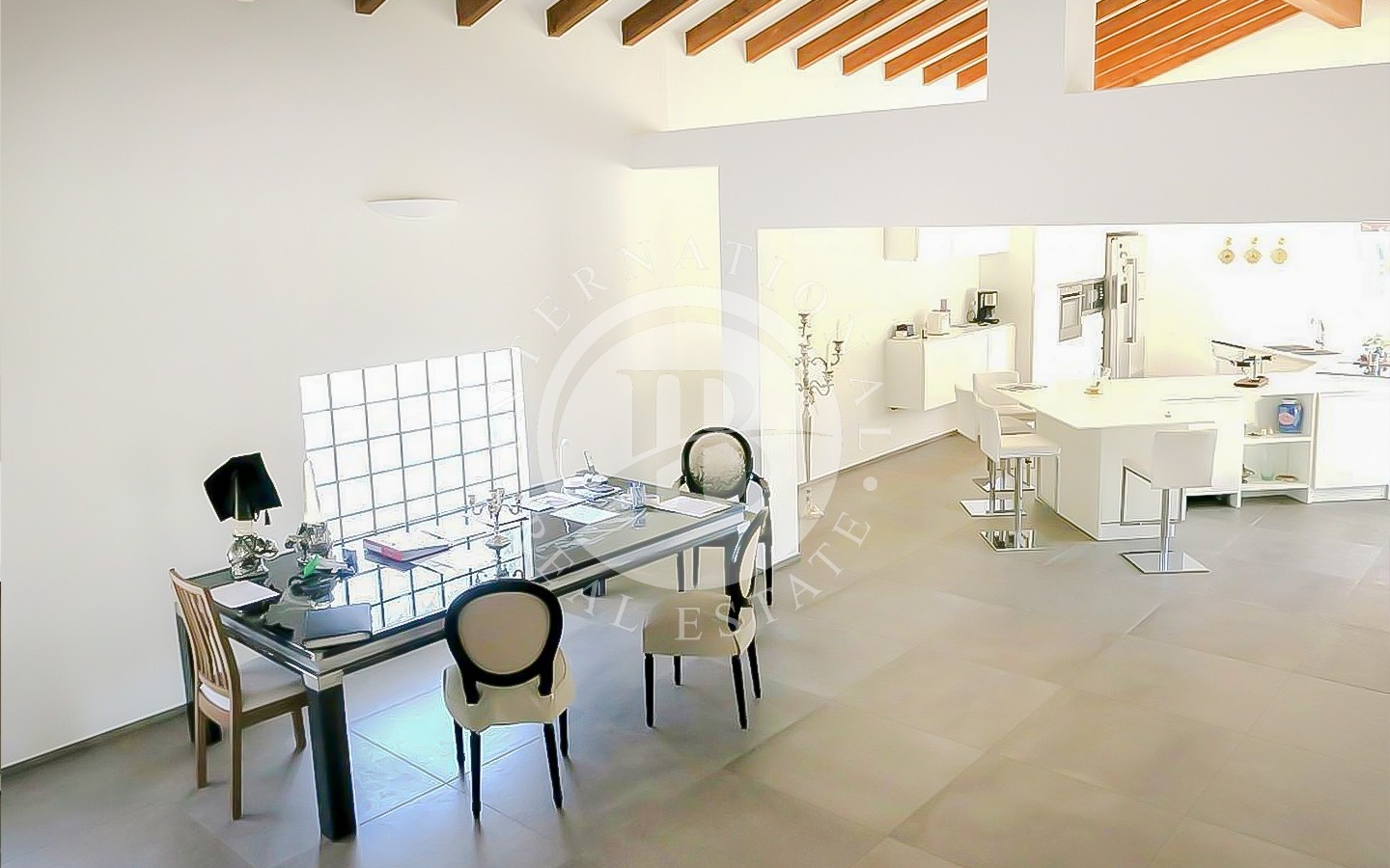 L’abitazione è dotata di un moderno sistema di domotica, riscaldamento a serpentine con termopompa, tetto a falde con travi a vista e lucernari elettrici con sensori pioggia per la chiusura automatica, oltre a un sistema di allarme integrato con videosorveglianza.
