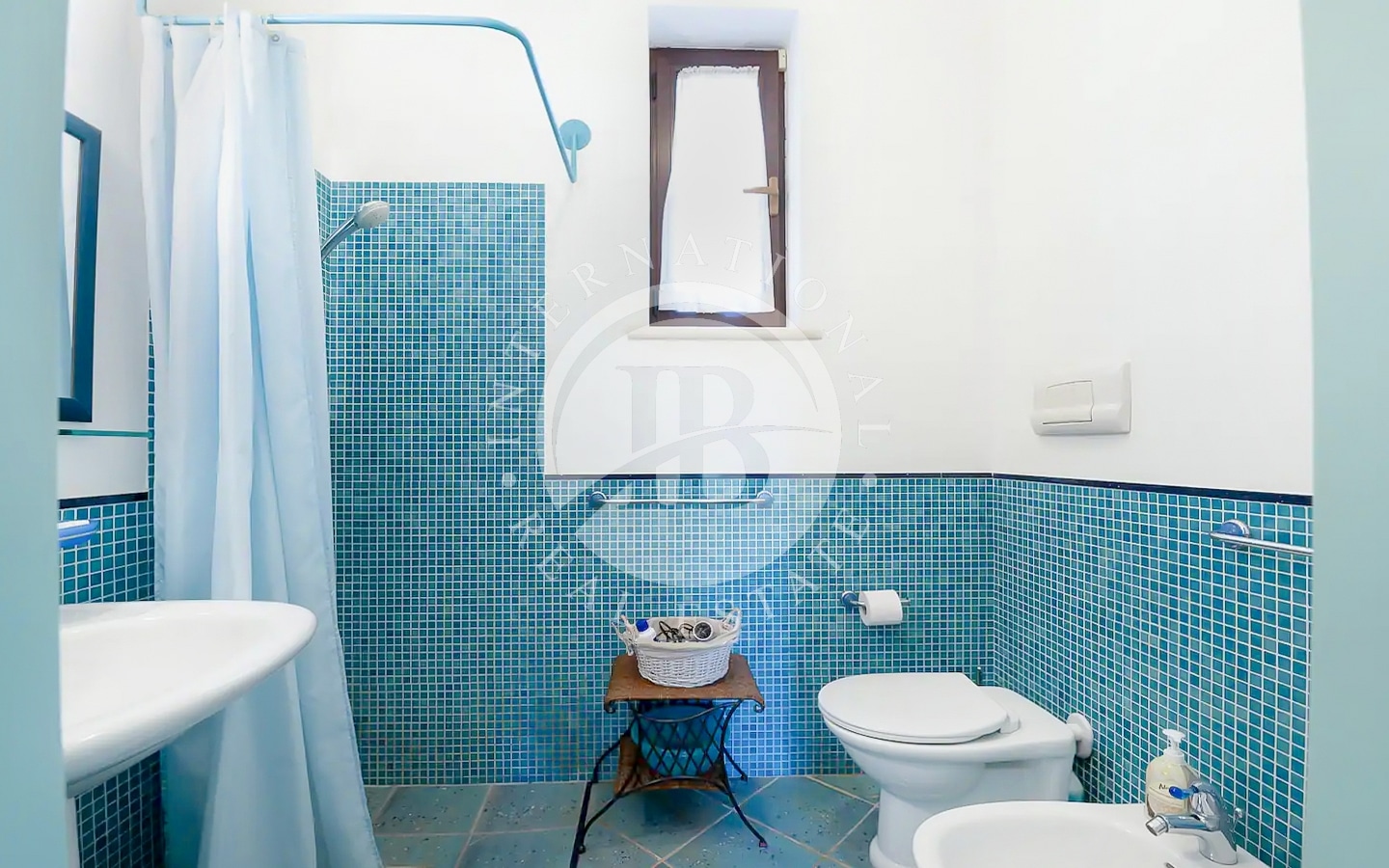 Il primo bagno è ricavato in un'alcova di pietra ed è completo di sanitari, doccia e vasca da bagno.