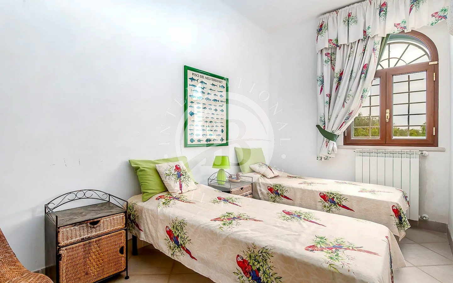 Due camere da letto indipendenti, ciascuna con bagno privato en-suite, per garantire totale privacy e comfort. La zona giorno con caminetto, cucina attrezzata e tavolo da pranzo offre un ambiente perfetto per i momenti di convivialità. Un comodo divano e aria condizionata completano l’atmosfera accogliente e raffinata.