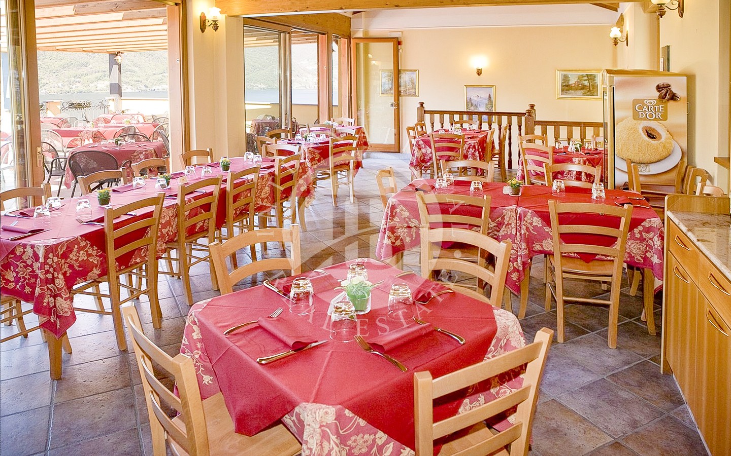 Il ristorante-pizzeria, disposto su due livelli (piano strada e primo piano), è perfettamente attrezzato e già operativo. Comprende un ampio salone con zona bar, servizi, cucina professionale completamente equipaggiata, forno a legna e una splendida terrazza panoramica sul lago, in grado di accogliere almeno 140 coperti.