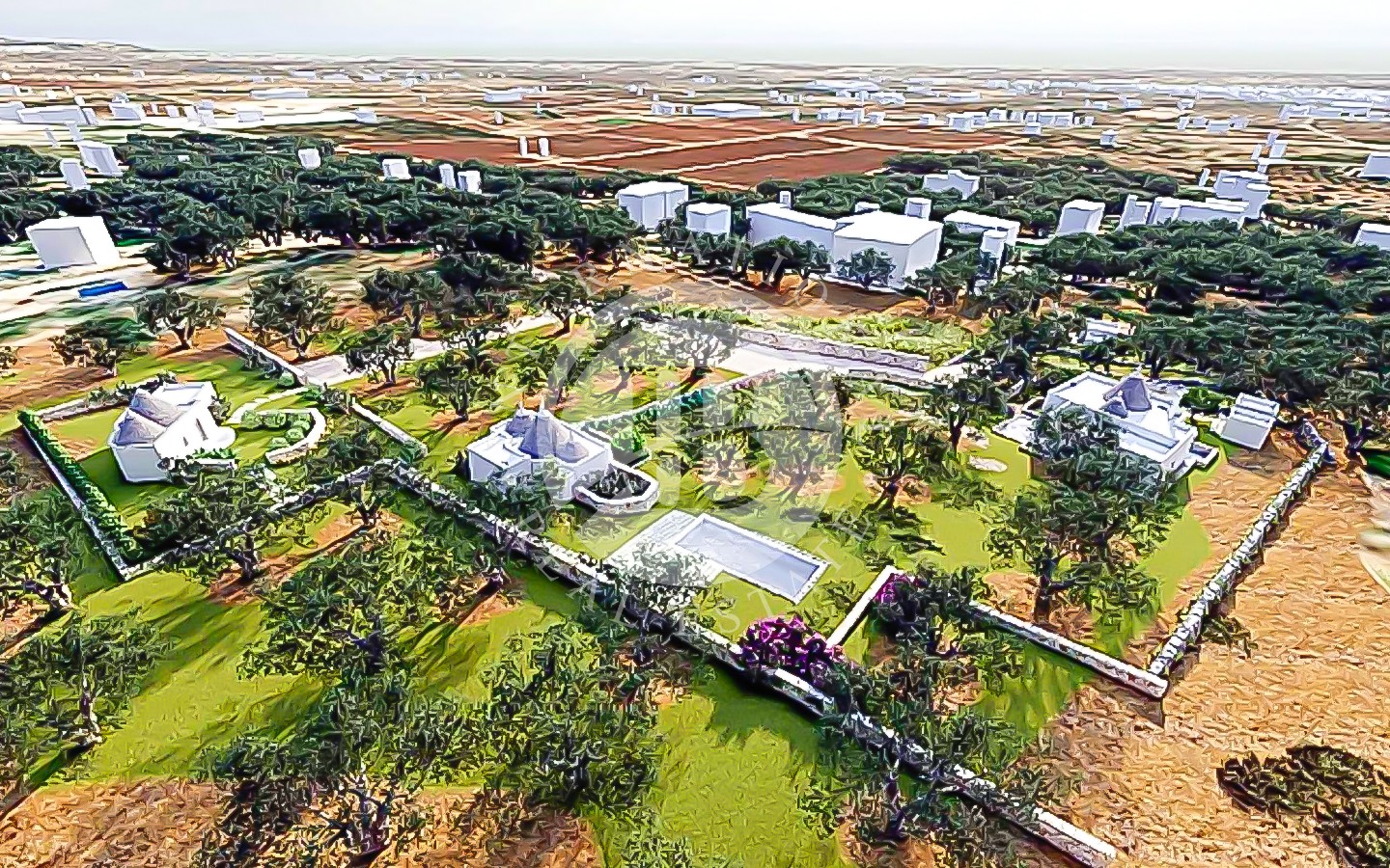In una posizione dominante e panoramica, con splendida vista mare, proponiamo in vendita una proprietà unica nel suo genere, composta da 4 singole unità di Trulli e Lamie per un totale di circa 290 mq. La proprietà è situata su un terreno di circa 18.000 mq, piantumato con alberi da frutto e 50 piante di ulivi, offrendo ampie vedute sul paesaggio circostante. Il progetto per la ristrutturazione e l'ampliamento delle unità abitative è già stato approvato, con una possibilità di ampliamento del 20% per ciascuna unità. Il progetto preved…