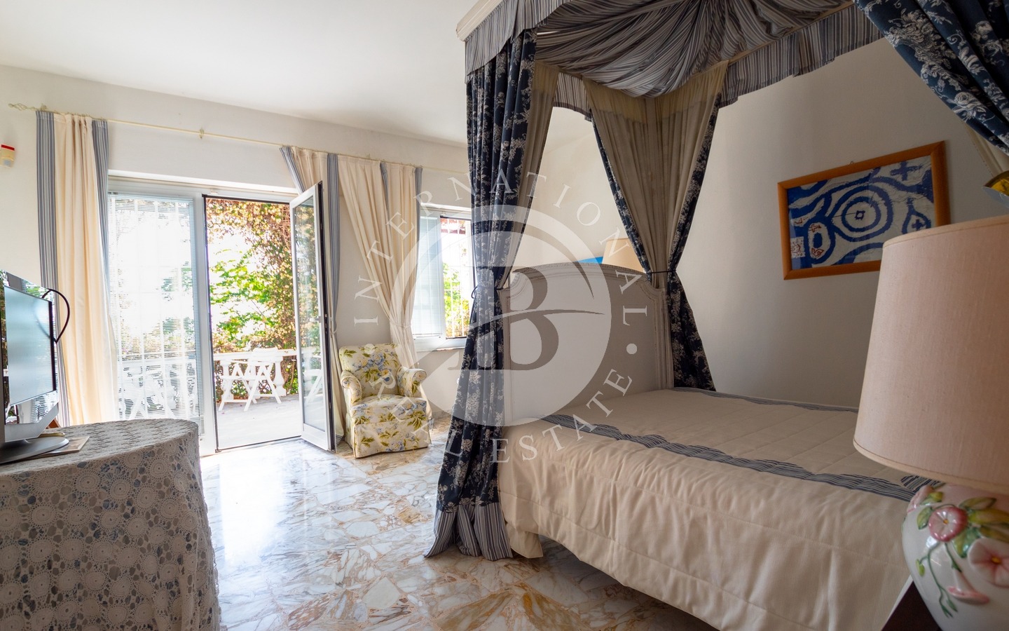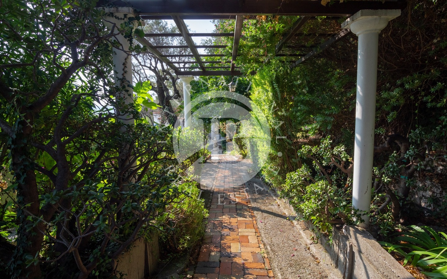 Si accede alla proprietà da un ascensore adiacente ai due posti auto proseguendo per un pittoresco vialetto porticato, adornato da bouganville e glicini profumati.