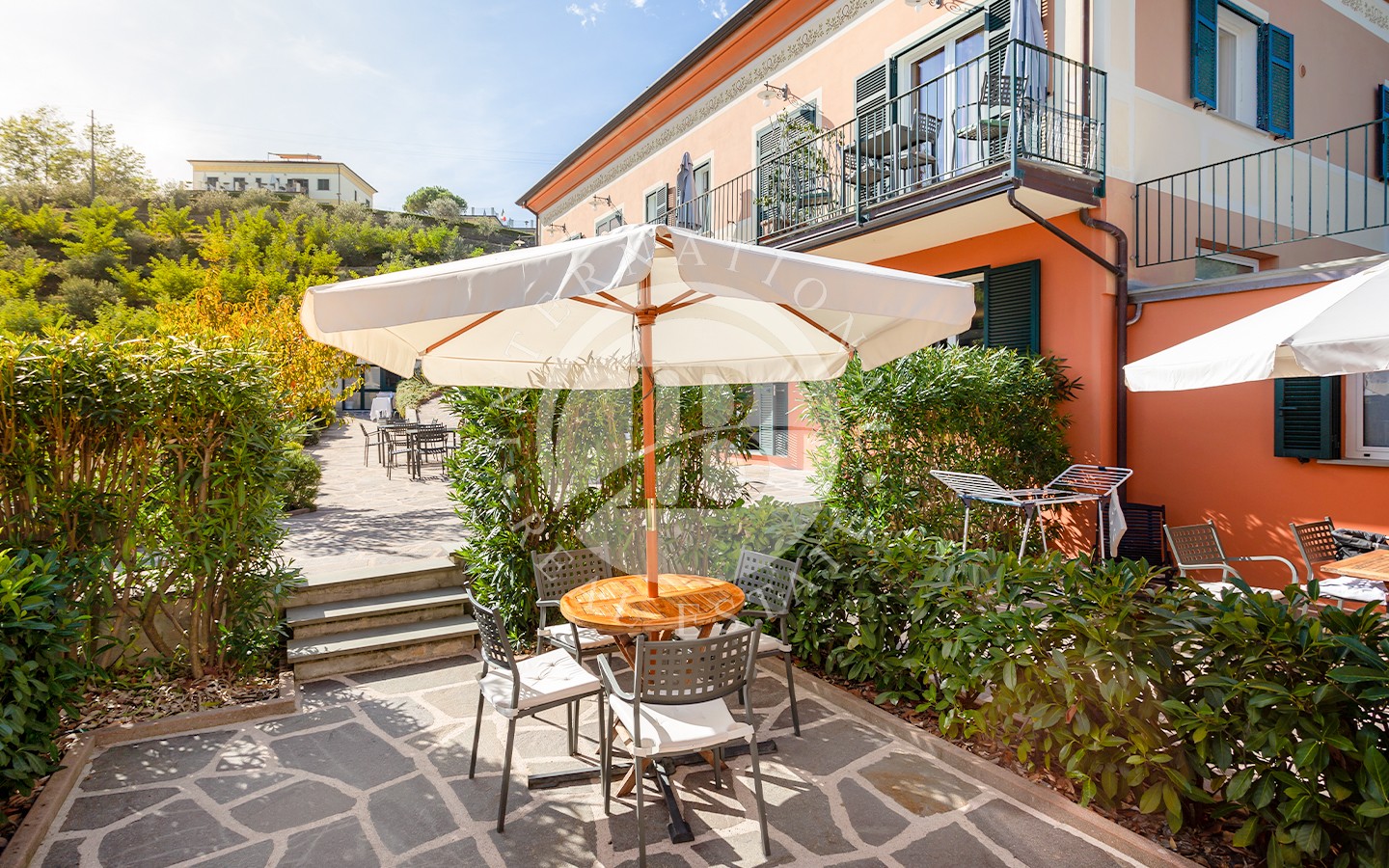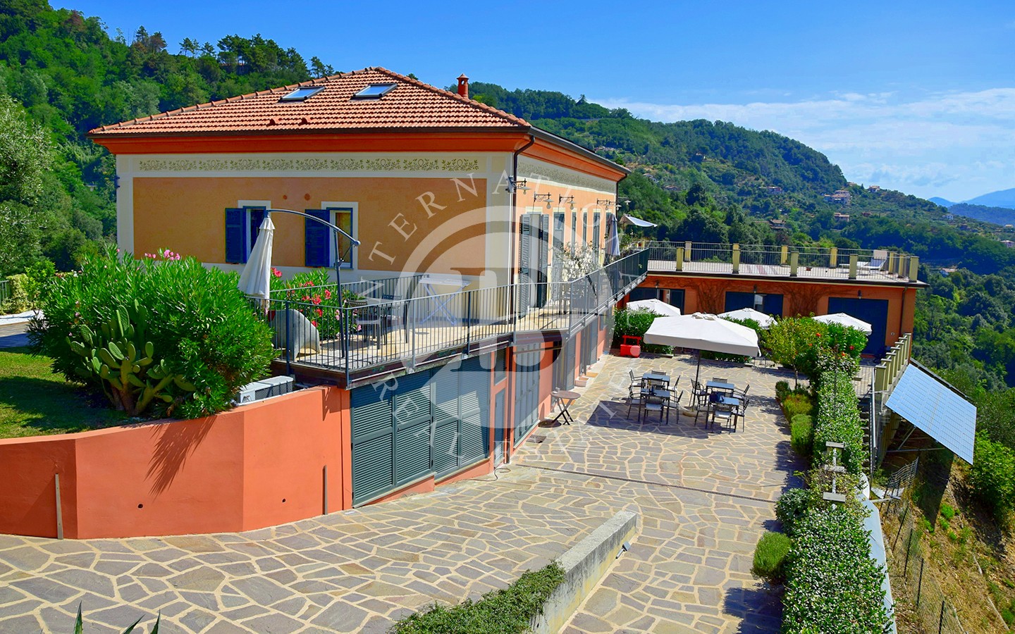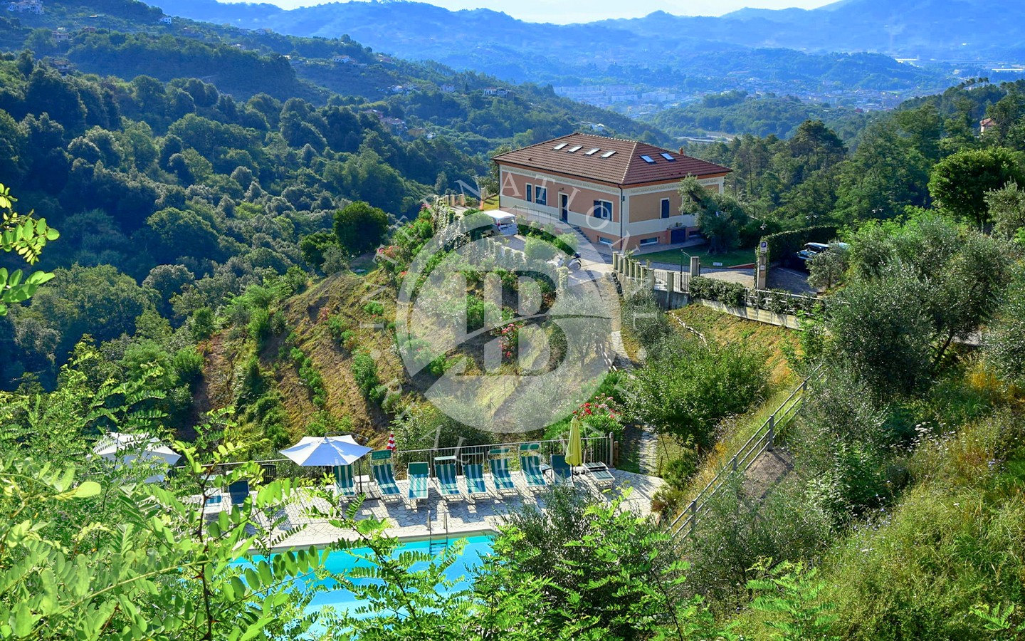 Situata sulle colline di La Spezia questa proprietà offre una splendida vista panoramica su tutto il golfo, con una ottima esposizione. Circondata da un terreno collinare di 1 ha piantumato ad uliveto, con 180 piante d’ulivo, la proprietà si divide in due unità immobiliari rispettivamente di 400 mq e 100 mq. L’immobile principale, essendo ora struttura agrituristica, ospita reception, sala tecnica / lavanderia e cantine. Al primo piano tre appartamenti ciascuno dotato di balcone di cui due con una camera matrimoniale e uno con due cam…