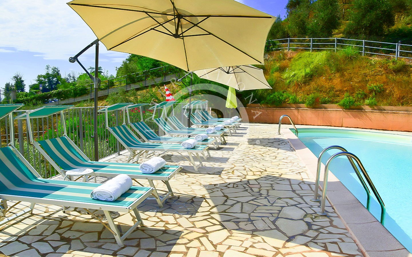 A completamento della proprietà un pozzo privato per l’irrigazione dell'uliveto e una piscina di 55 mq (in condivisione con l’attività vicina al 50%) con locali tecnici di 60 mq e parcheggio privato.
