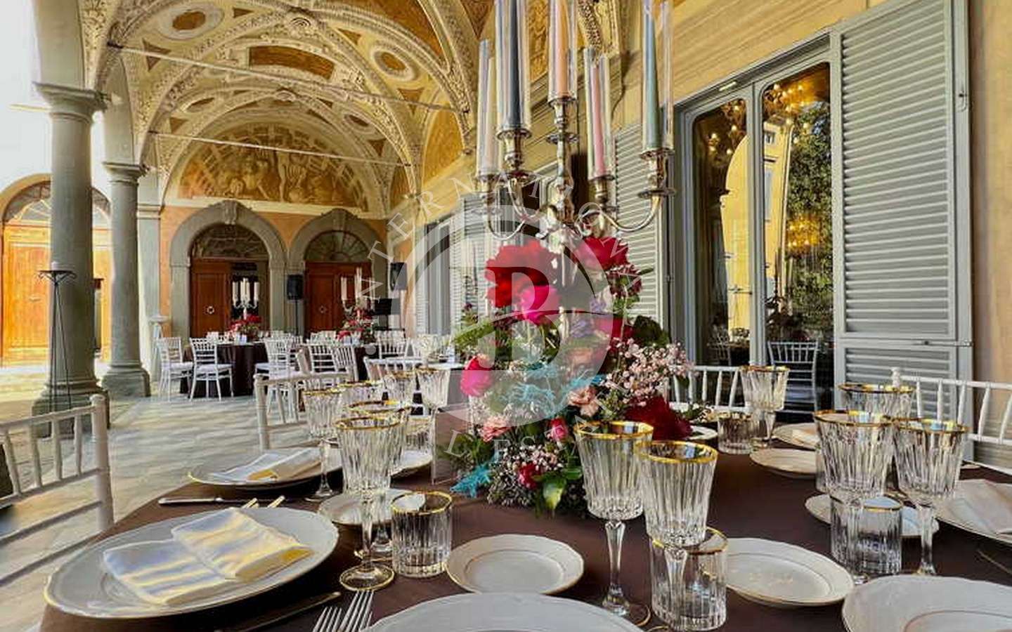 eservato l'eleganza e la magnificenza. Nel settecento furono eseguiti importanti interventi di ristrutturazione; a tale epoca si deve perciò la sua attuale configurazione con il corpo centrale, ornato con un loggiato a cinque arcate di ordine toscano, al quale vennero aggiunte le due ali laterali che formano un ampio cortile, chiuso verso il parco da una imponente cancellata.