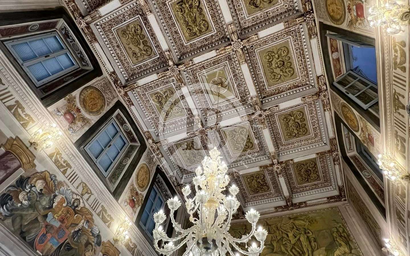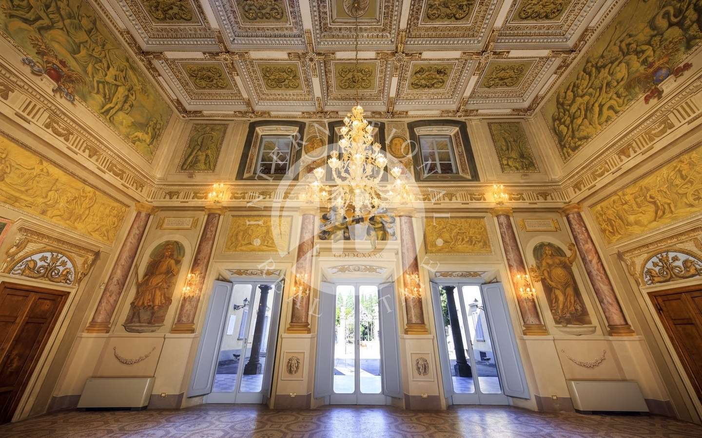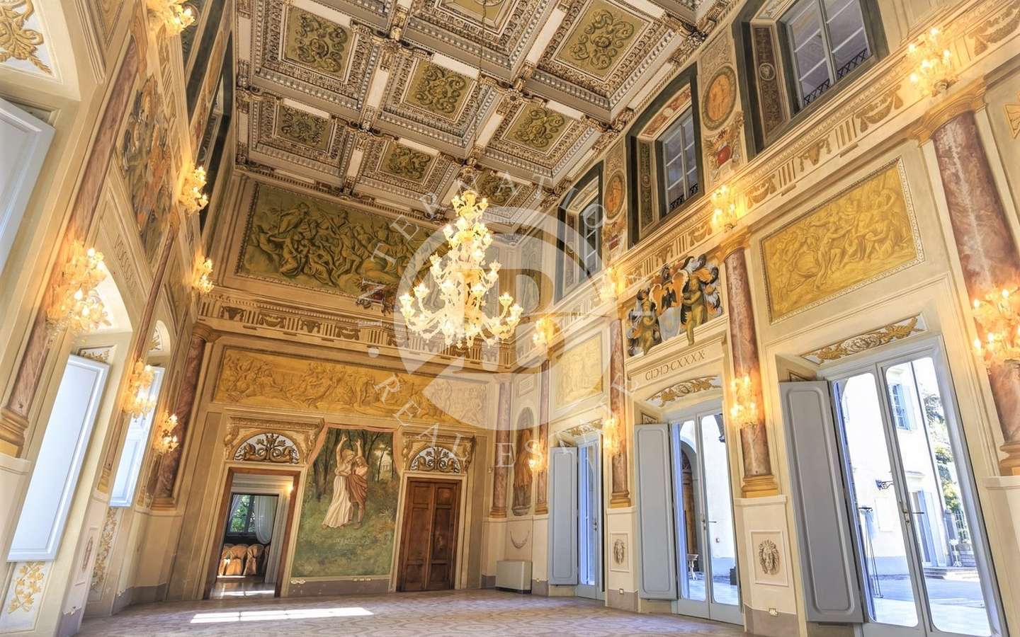 La struttura interna e le decorazioni della villa sono caratterizzate da trompe-l'oeil eseguiti da importanti artisti settecenteschi Internamente i saloni sono affrescati, con soffitti a cassettoni decorati in oro zecchino, ampie finestre e spazi di incredibile bellezza.