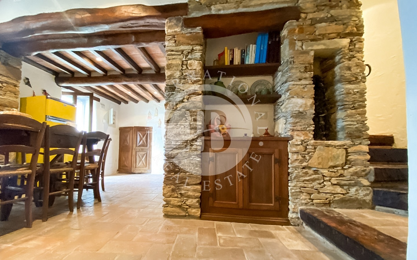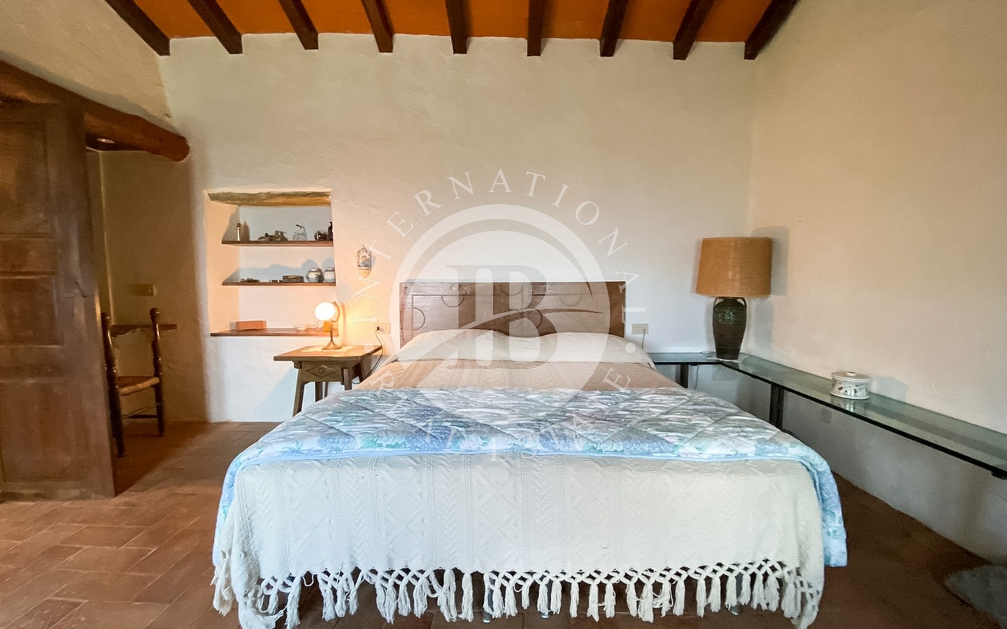 Questa proprietà in pietra si trova a circa 50 metri di distanza dalla villa principale, con accesso indipendente e sviluppata su due livelli per circa 95 mq. Gli interni, arredati secondo il classico stile toscano, sono caratterizzati da pavimenti in terracotta e travi in legno originali. Dal patio in pietra l’accesso avviene direttamente sul soggiorno composto da angolo cottura in muratura, ceramica e legno, area pranzo e area relax resa calda e accogliente dal grande camino in pietra.