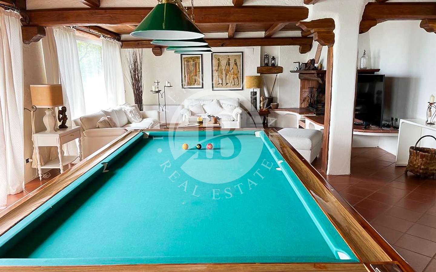 La proprietà principale di questa bellissima tenuta si sviluppa su tre livelli per un totale di 335 mq. L’accesso avviene al piano terra, dove si trova anche la bellissima e panoramica infinity pool e che ospita al di sotto 3 locali tecnici rispettivamente di cui uno può comodamente trasformarsi in una zona fitness con vista panoramica. L’ingresso avviene sull’ampio living adibito ad area relax, con un pregiato tavolo da biliardo ottimo per trascorrere momenti spensierati.