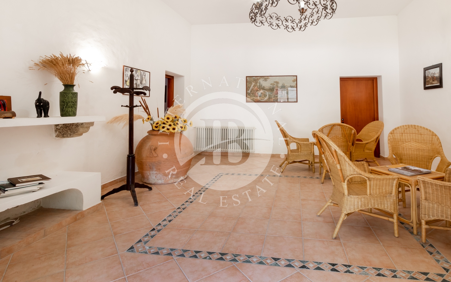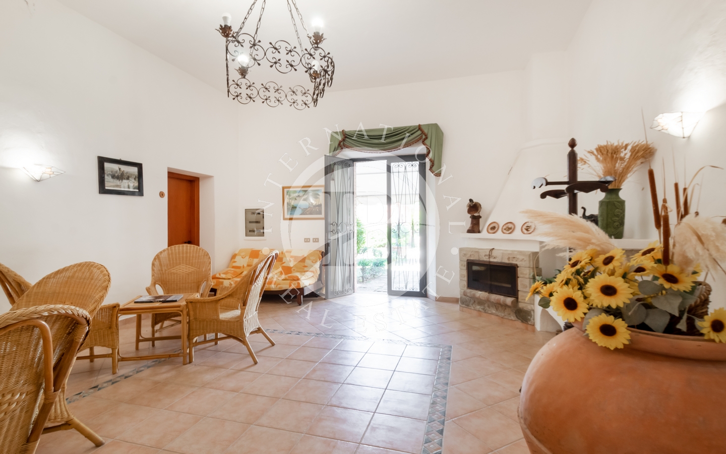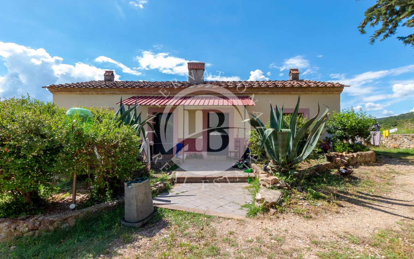 All'esterno, la villa sorge su un ampio terreno di 550 ha che si perde tra dolci colline e panorami mozzafiato. In questo terreno troviamo un uliveto, una tenuta di caccia e una piantagione di sughero, davvero redditizia.
