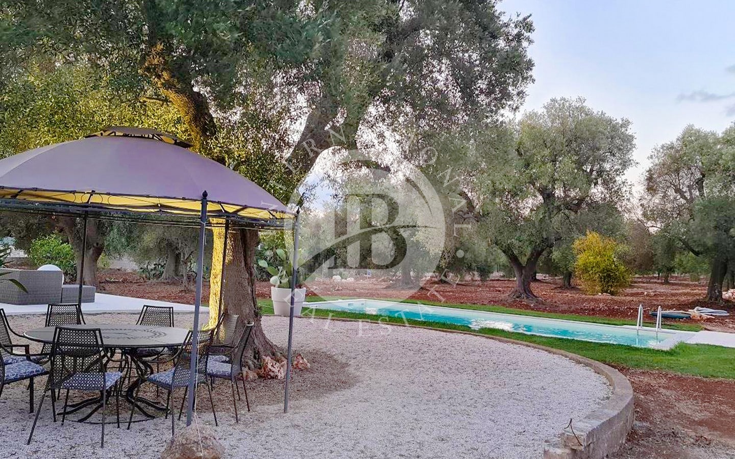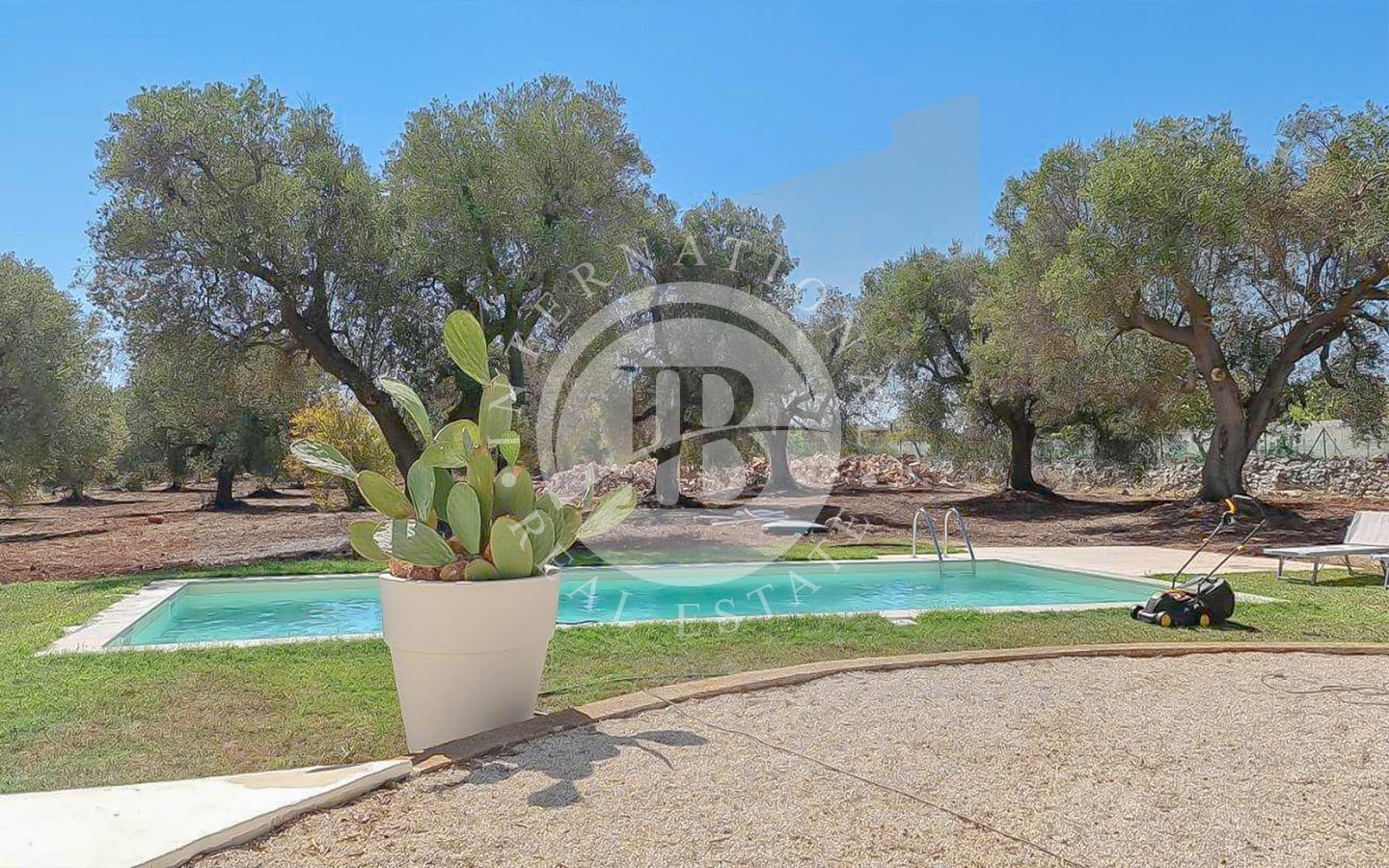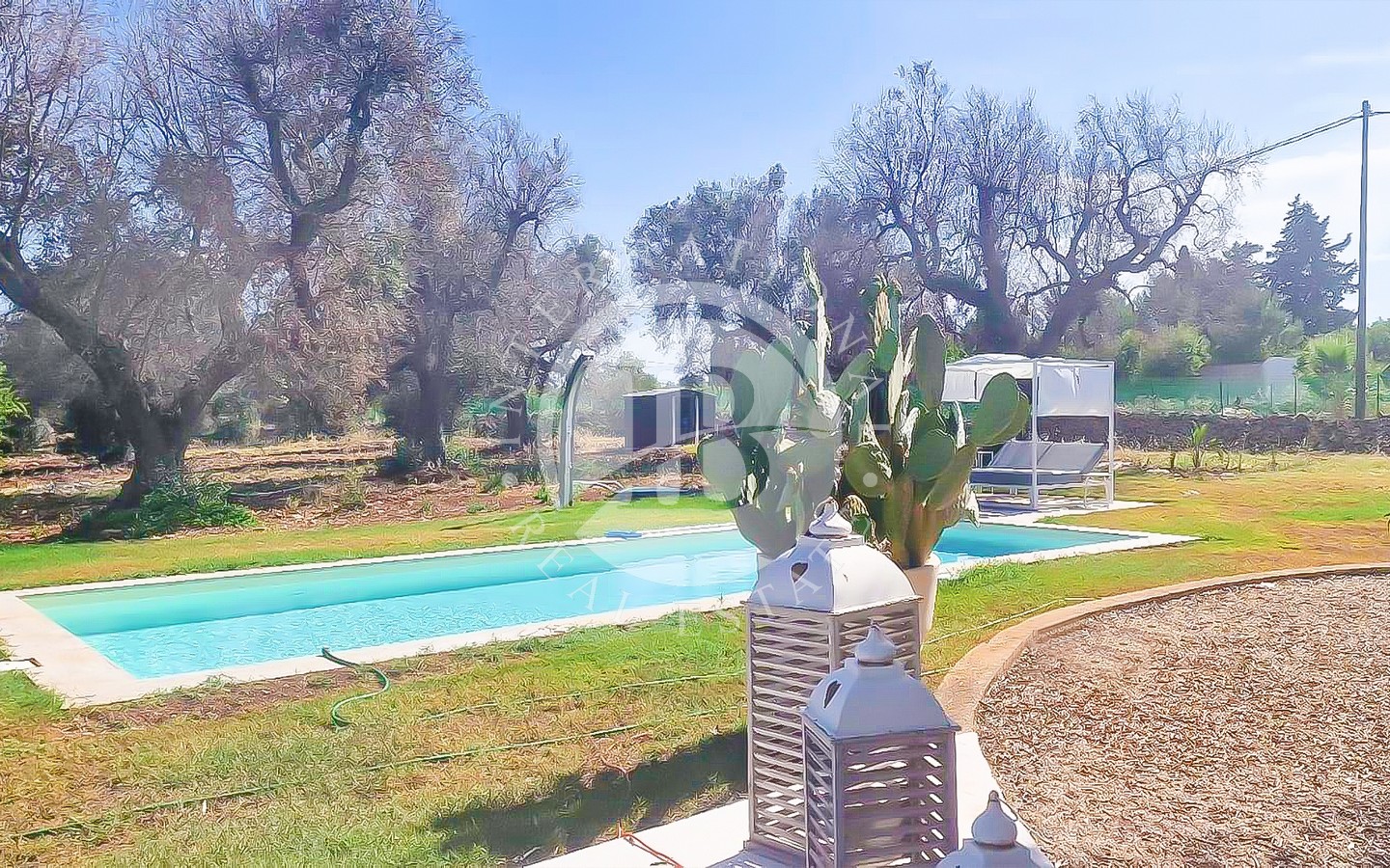 Il vero punto di forza della proprietà è la piscina Aquilus di generose dimensioni (4x10 m), completa di solarium, vano tecnico e doccia solare, che rappresenta il luogo ideale per rilassarsi e godersi il clima mediterraneo.