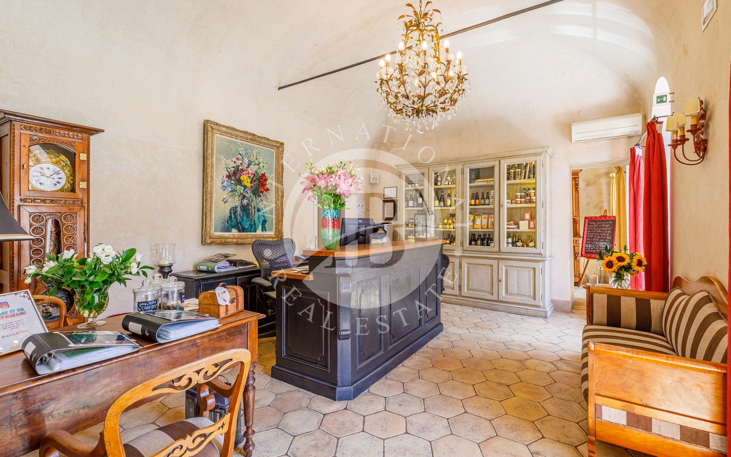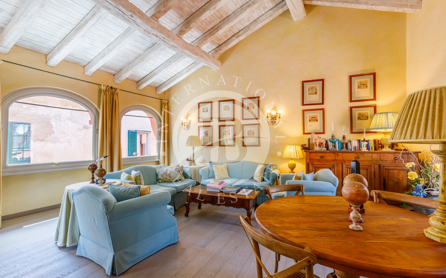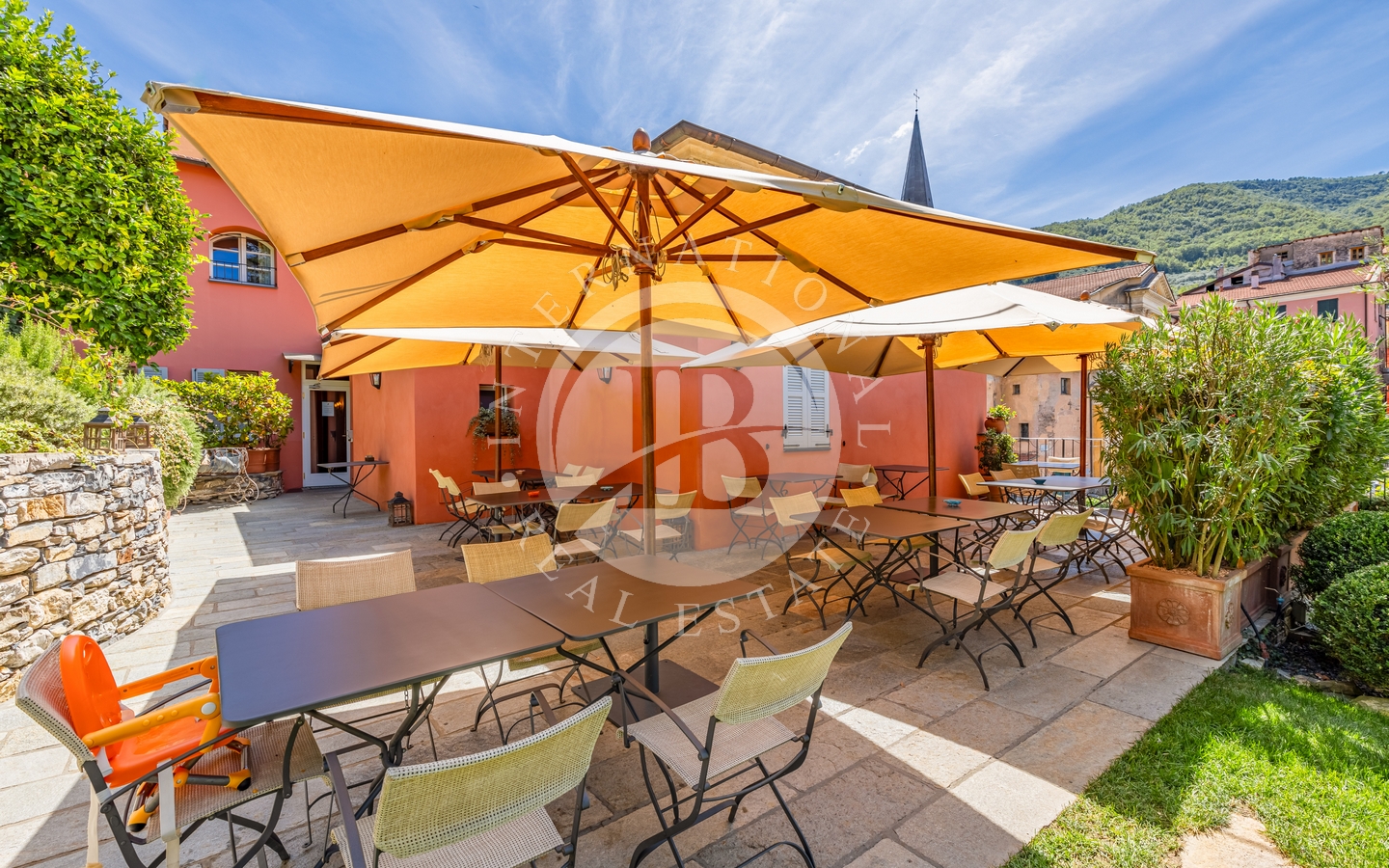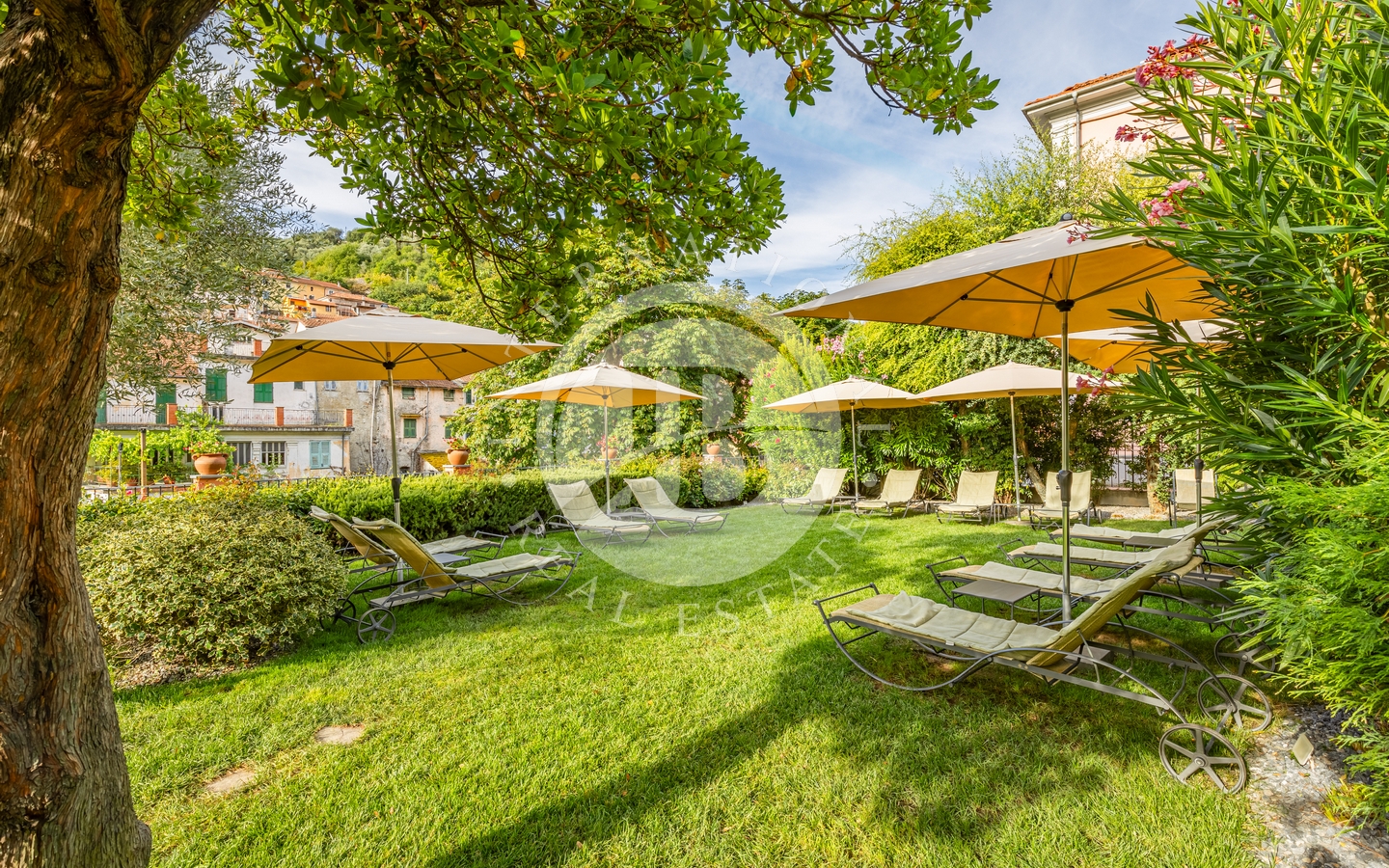 La proprietà è situata in un antico borgo dell'entroterra ligure, a pochi chilometri dalle spiagge della Riviera di Ponente, in prossimità di Sanremo e della suggestiva Costa Azzurra. In questo incantevole scenario, circondato da maestose piante di ulivo, la proprietà comprende tre edifici storici, per una superficie interna totale di circa 1000 mq. Tra questi, spiccano la dimora padronale risalente agli inizi del XIX secolo, la casa del borgo e la casa del fienile. Vi è poi un giardino di circa 1500 mq che abbraccia l'intero compless…