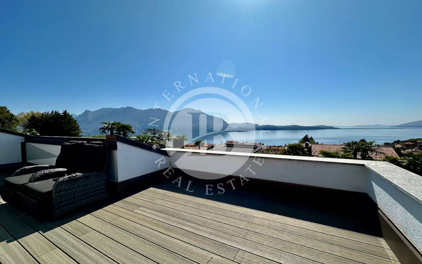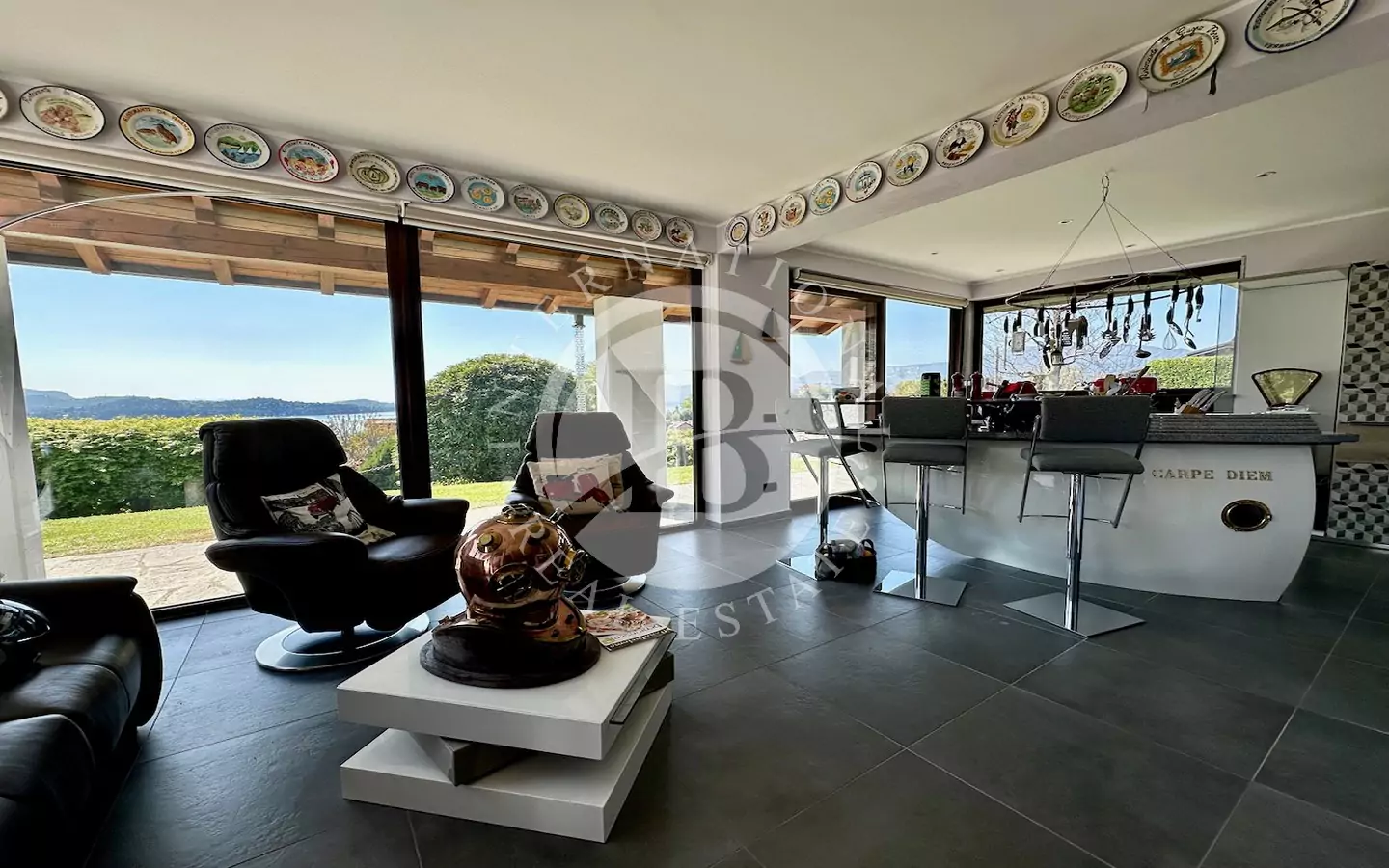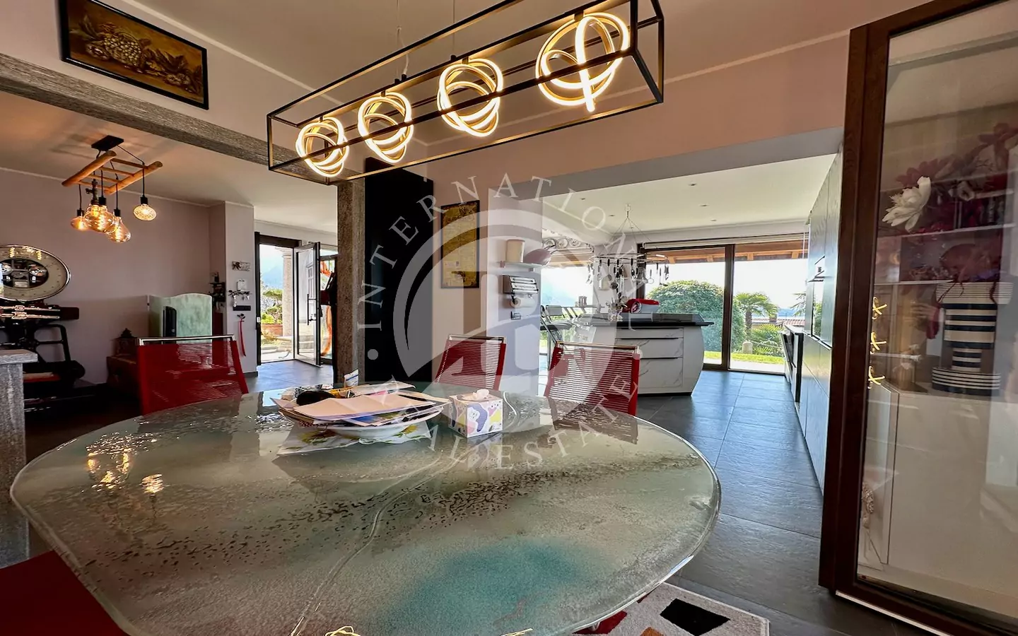 La villa, oggetto di una prima ristrutturazione negli anni Novanta e di un attento ampliamento e restyling nel 2020, si sviluppa su due livelli. Al piano terra si apre un’ampia zona giorno con grandi vetrate che offrono una vista impareggiabile sul Lago Maggiore. La cucina di design, integrata con il soggiorno e il camino bifacciale, dialoga armoniosamente con la zona pranzo. Il piano comprende inoltre due camere da letto, due bagni, un disimpegno, una cantina e due terrazzi coperti.