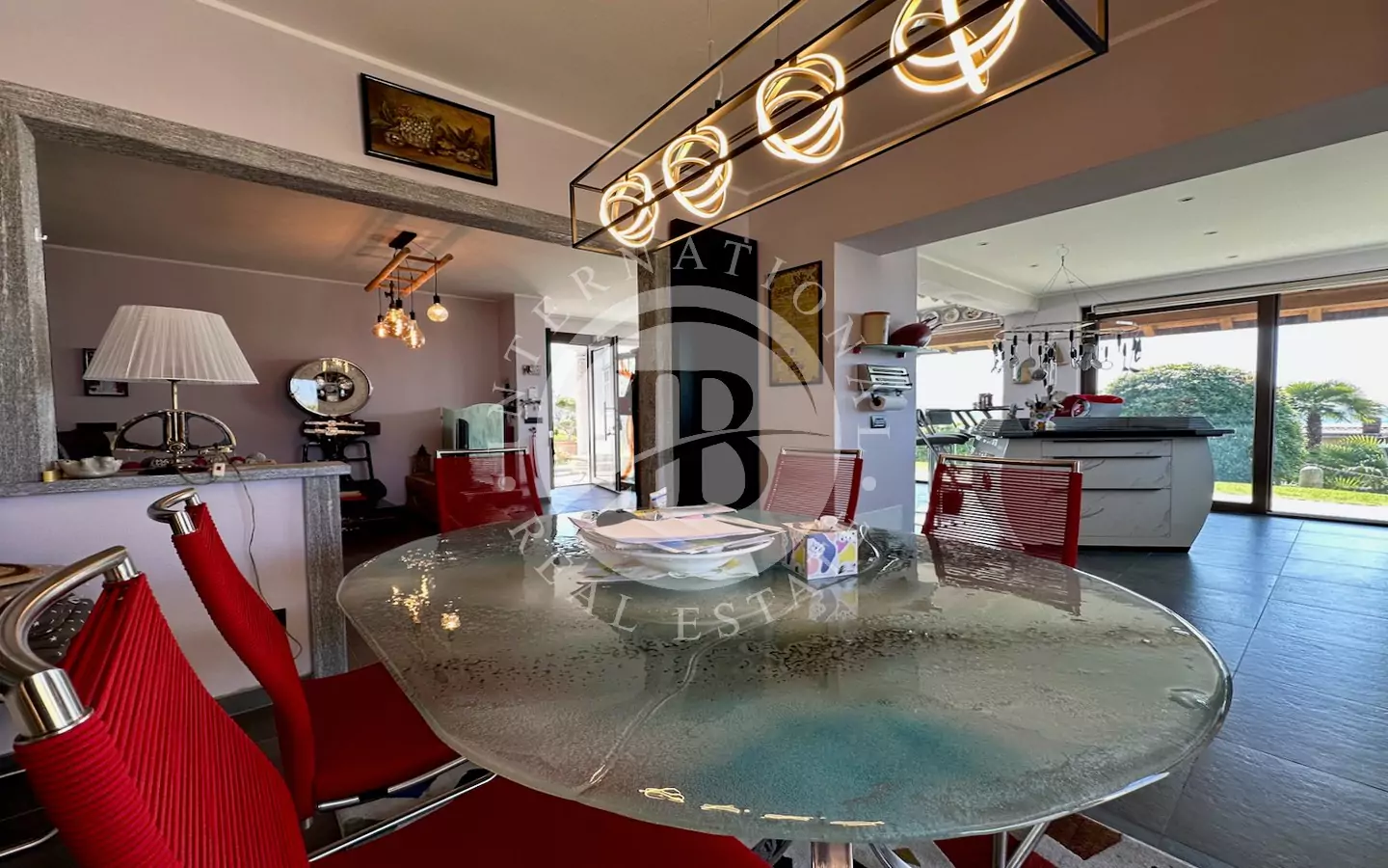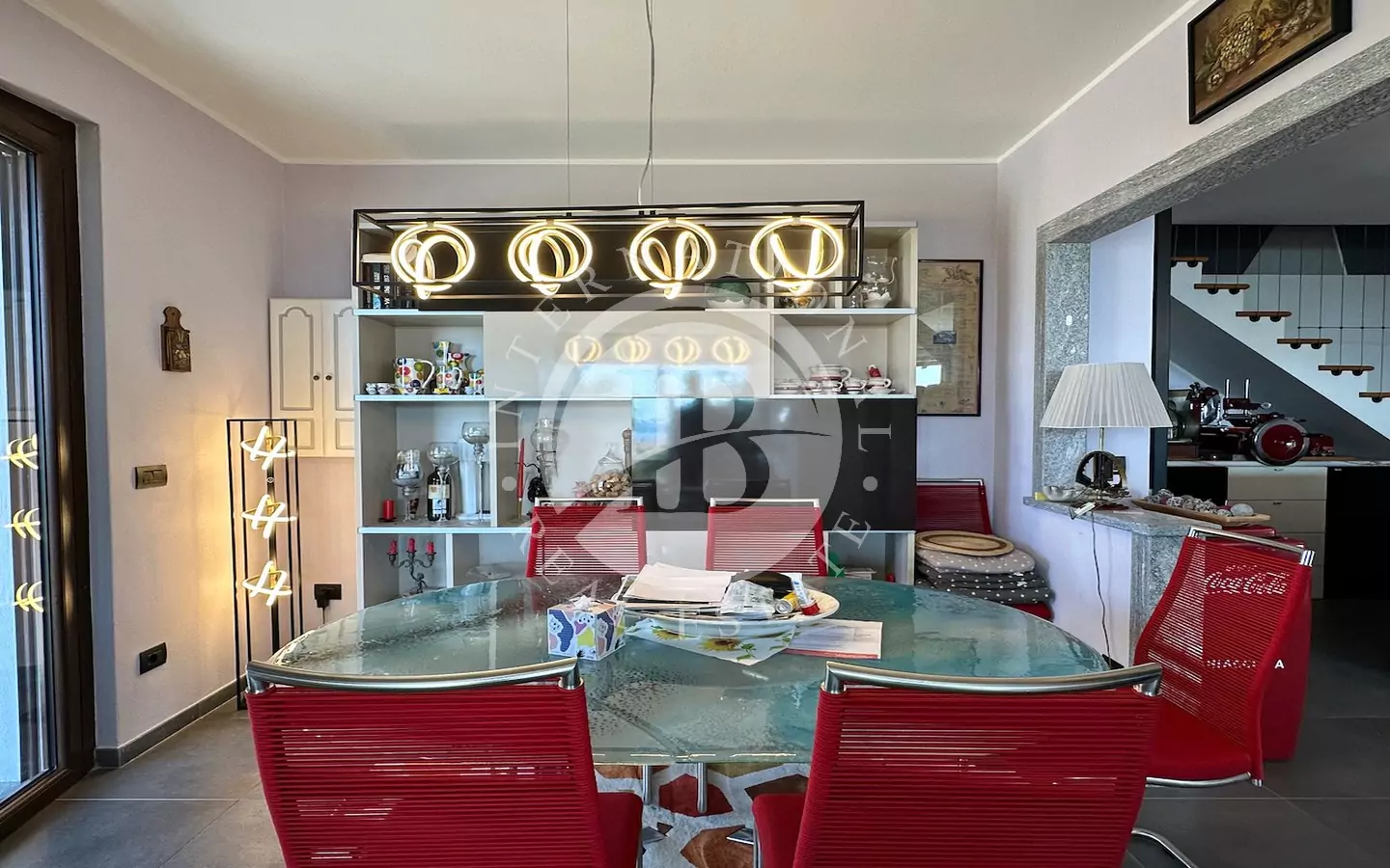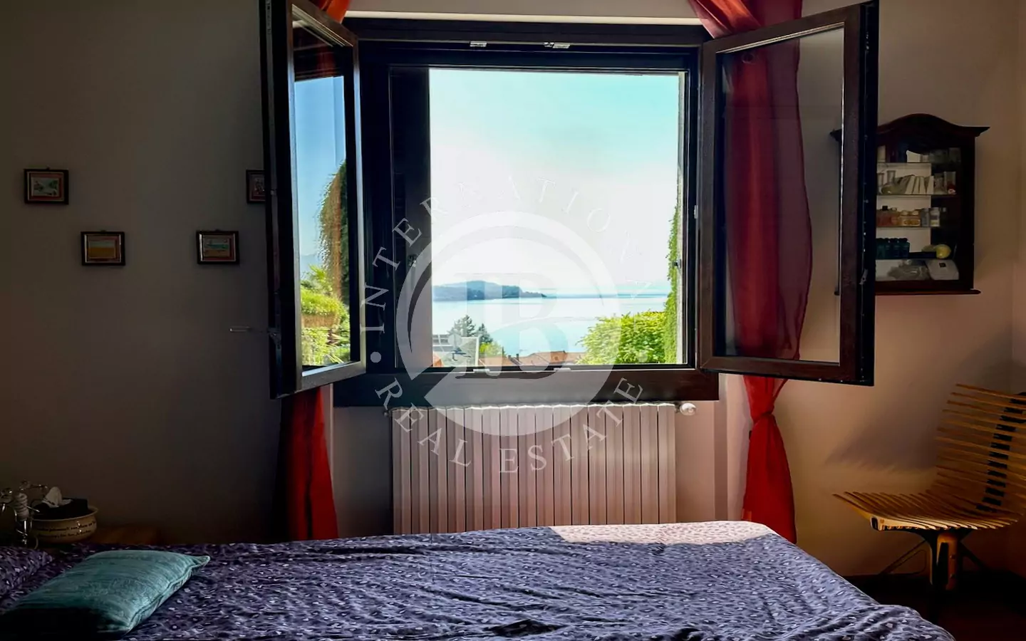 La villa, oggetto di una prima ristrutturazione negli anni Novanta e di un attento ampliamento e restyling nel 2020, si sviluppa su due livelli. Al piano terra si apre un’ampia zona giorno con grandi vetrate che offrono una vista impareggiabile sul Lago Maggiore. La cucina di design, integrata con il soggiorno e il camino bifacciale, dialoga armoniosamente con la zona pranzo. Il piano comprende inoltre due camere da letto, due bagni, un disimpegno, una cantina e due terrazzi coperti.