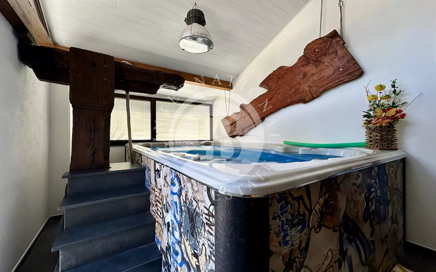 Sempre al piano terra, una sala benessere ospita una mini piscina con idromassaggio e nuoto controcorrente, oltre a una doccia di servizio.