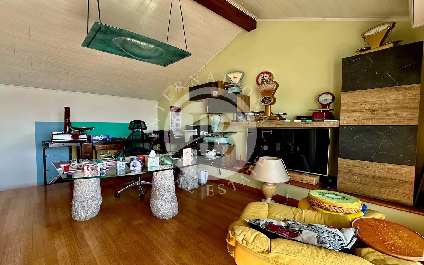 Al primo piano troviamo uno studio con terrazzo panoramico, una camera da letto con terrazzo coperto e un ampio solaio utilizzabile come ripostiglio.