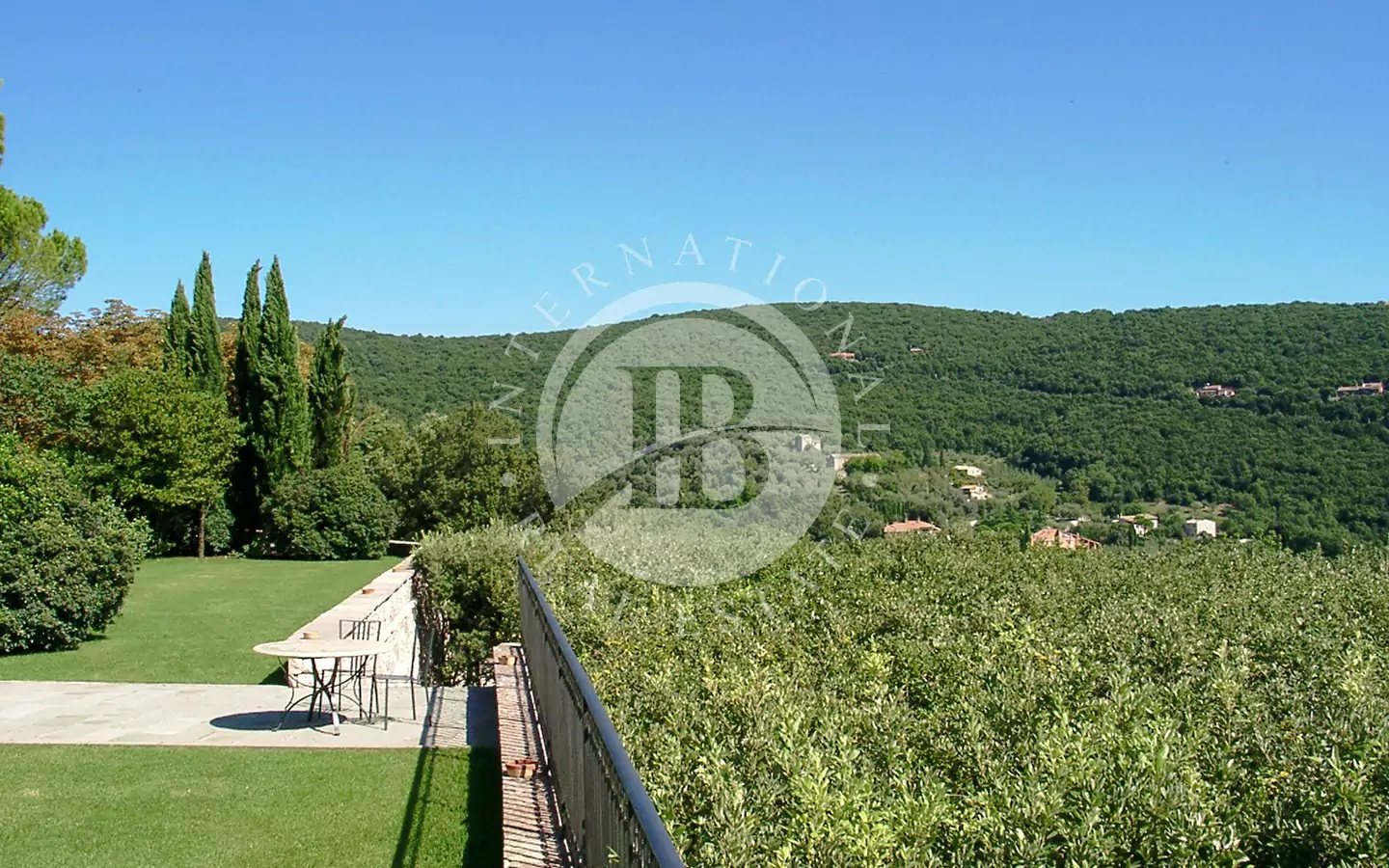 Insieme alla villa viene venduto un ampio terreno di circa 70 ettari (in gran parte boschivo) di cui circa 8 ettari con piante secolari che circondano la villa (1200 mq), parte del terreno è recintato da mura antiche costruite in pietra a secco, con 8 viali ed entrate indipendenti.