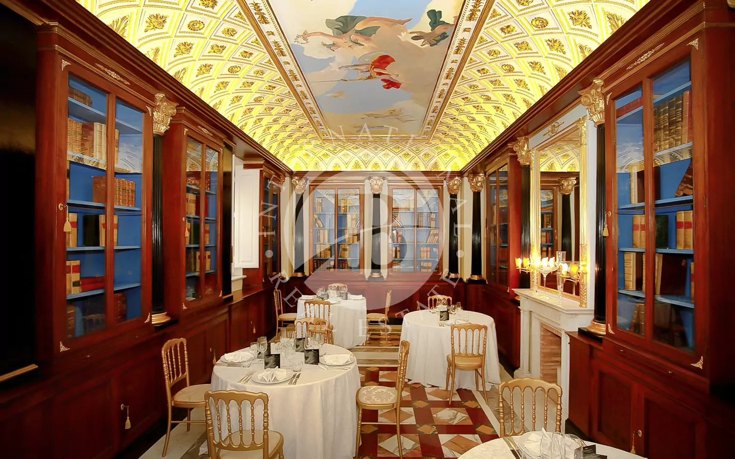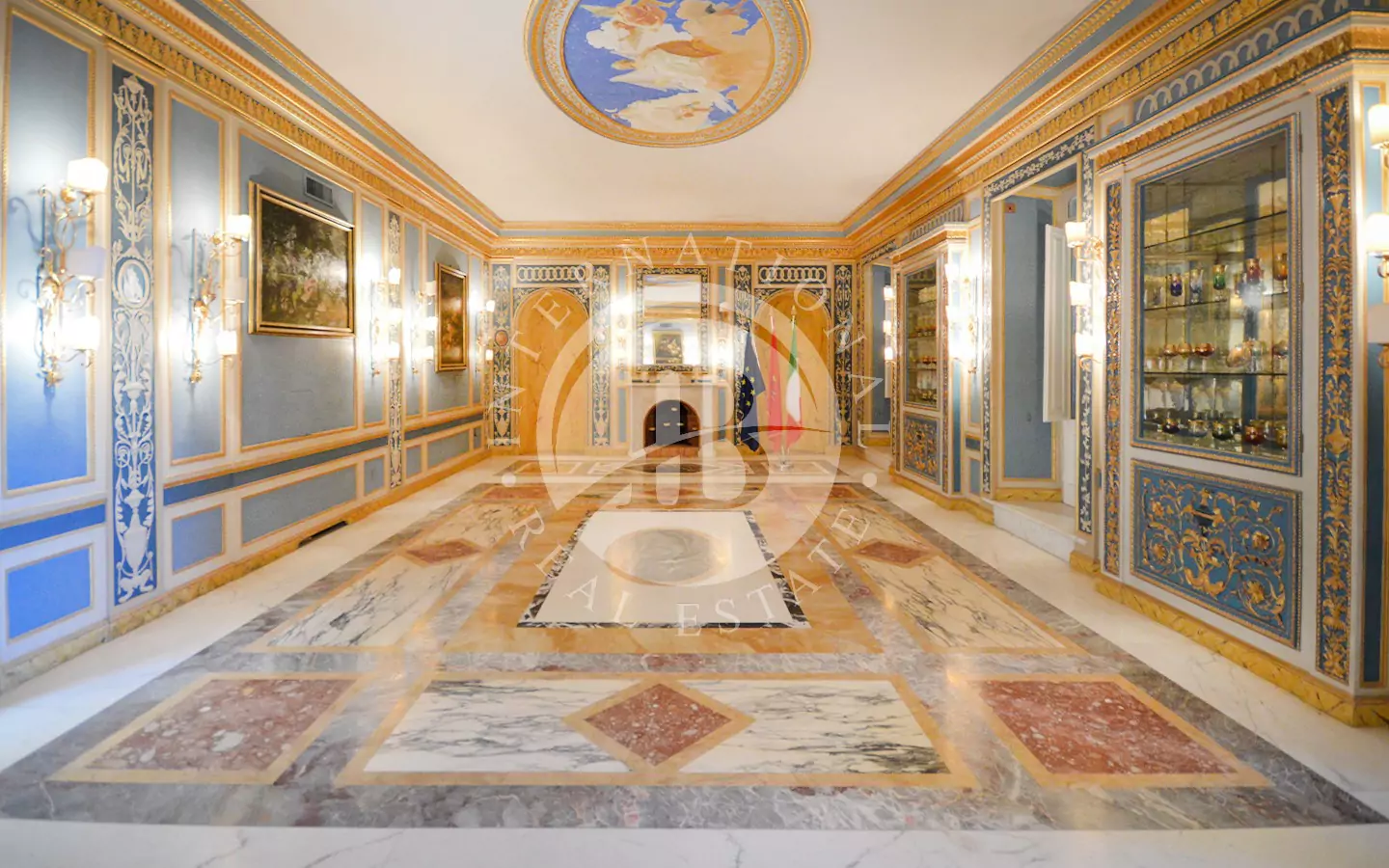 Il Piano Terra (piano nobile) particolarmente affascinante, è caratterizzato da un bellissimo corridoio affrescato da cui si accede alla Sala azzurra, alla Sala Rossa e alla biblioteca, un bagno originale con mosaico bizantino da un lato e ad un elegante studio e una cucina, dall’altro.