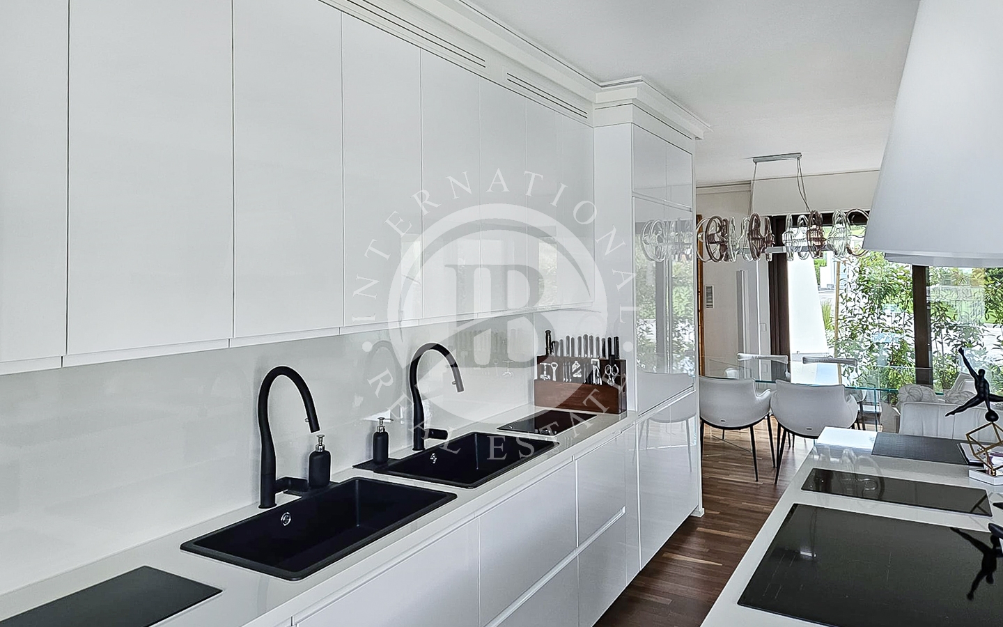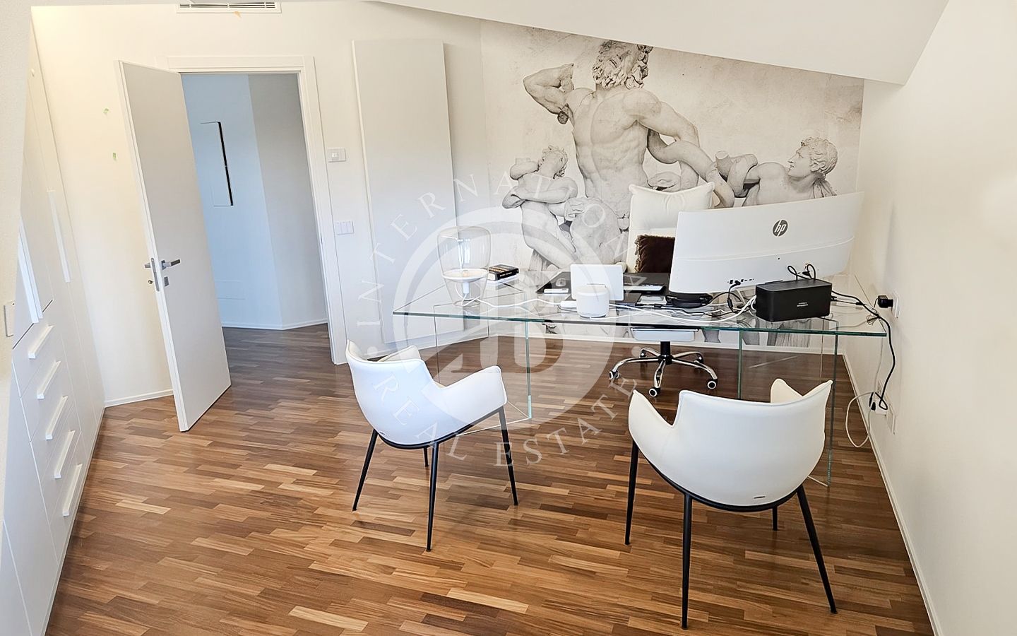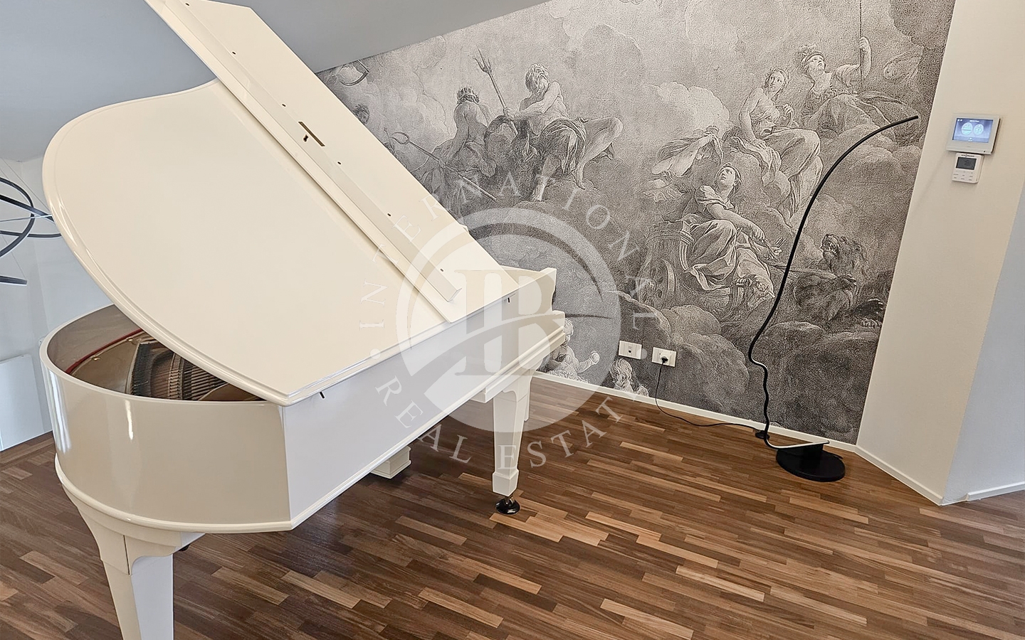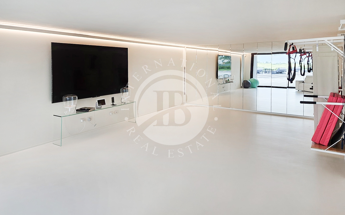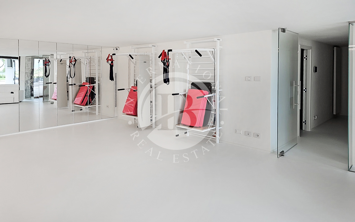 Completano gli ambienti una palestra di 50 mq con bagno, locali dedicati a sauna, bagno turco, massaggi, lavanderia e personale, oltre a un garage con accessi multipli ai piani. Il piano terra può essere trasformato, senza interventi invasivi, in un appartamento indipendente di oltre 175 mq.