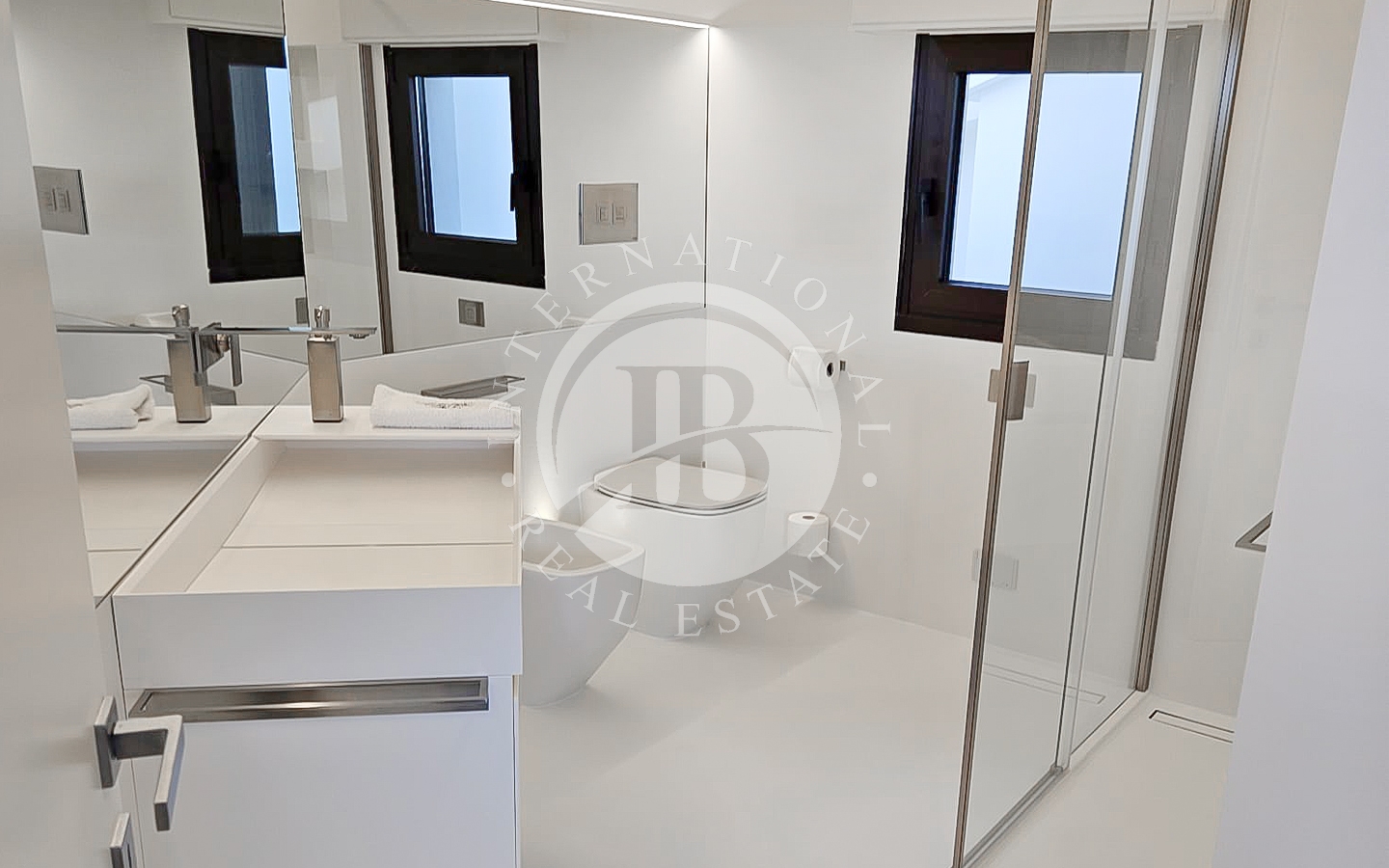 Ogni elemento è stato pensato per offrire benessere e funzionalità: dai nove bagni rivestiti in resina bianca con specchi su misura e rubinetteria in acciaio satinato, al sistema illuminotecnico studiato per valorizzare ogni angolo della casa attraverso luci scenografiche, fino agli arredi firmati perfettamente integrati con l’architettura.