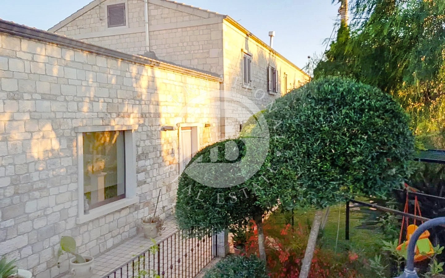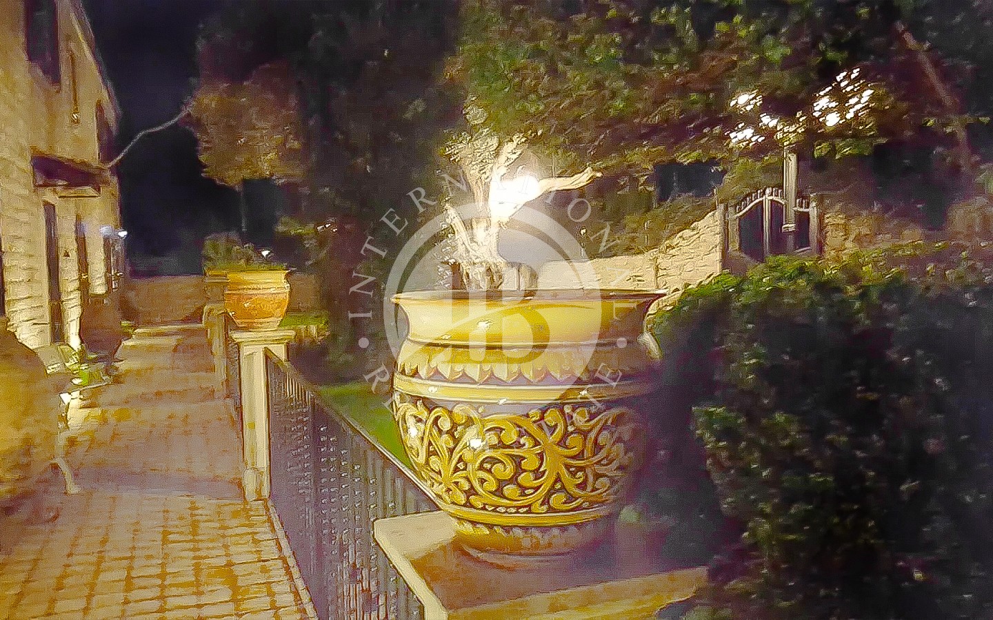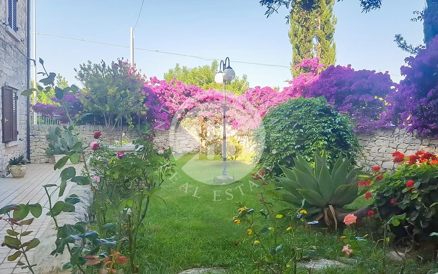 Il giardino, arricchito da un albero secolare, è dotato di impianto di irrigazione automatico e illuminazione.