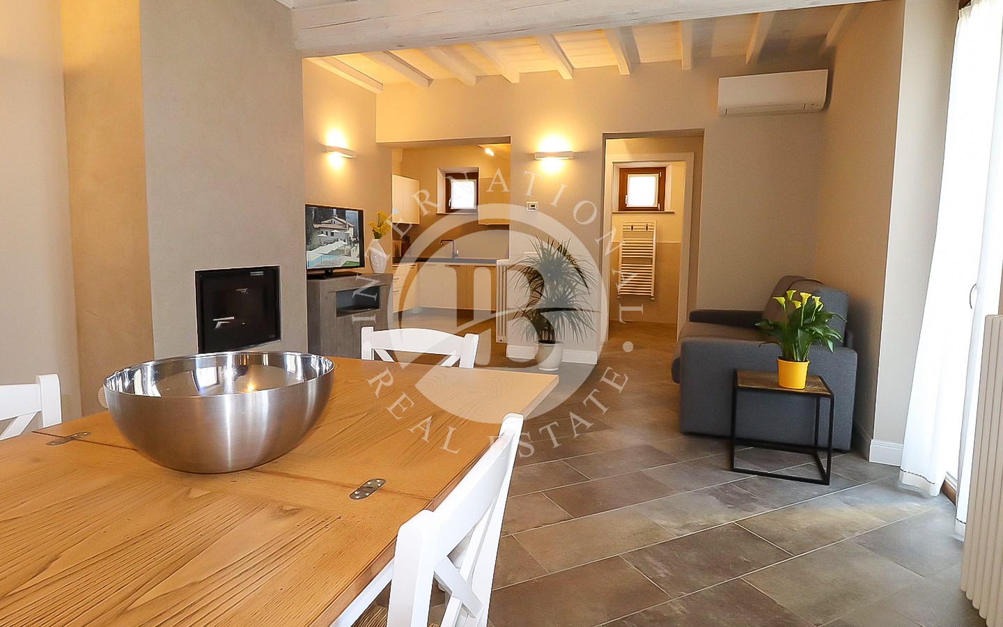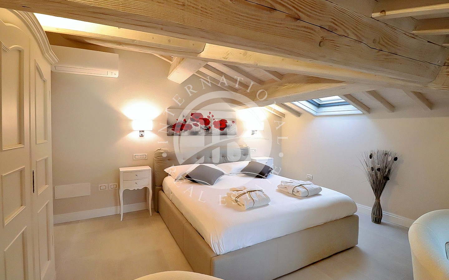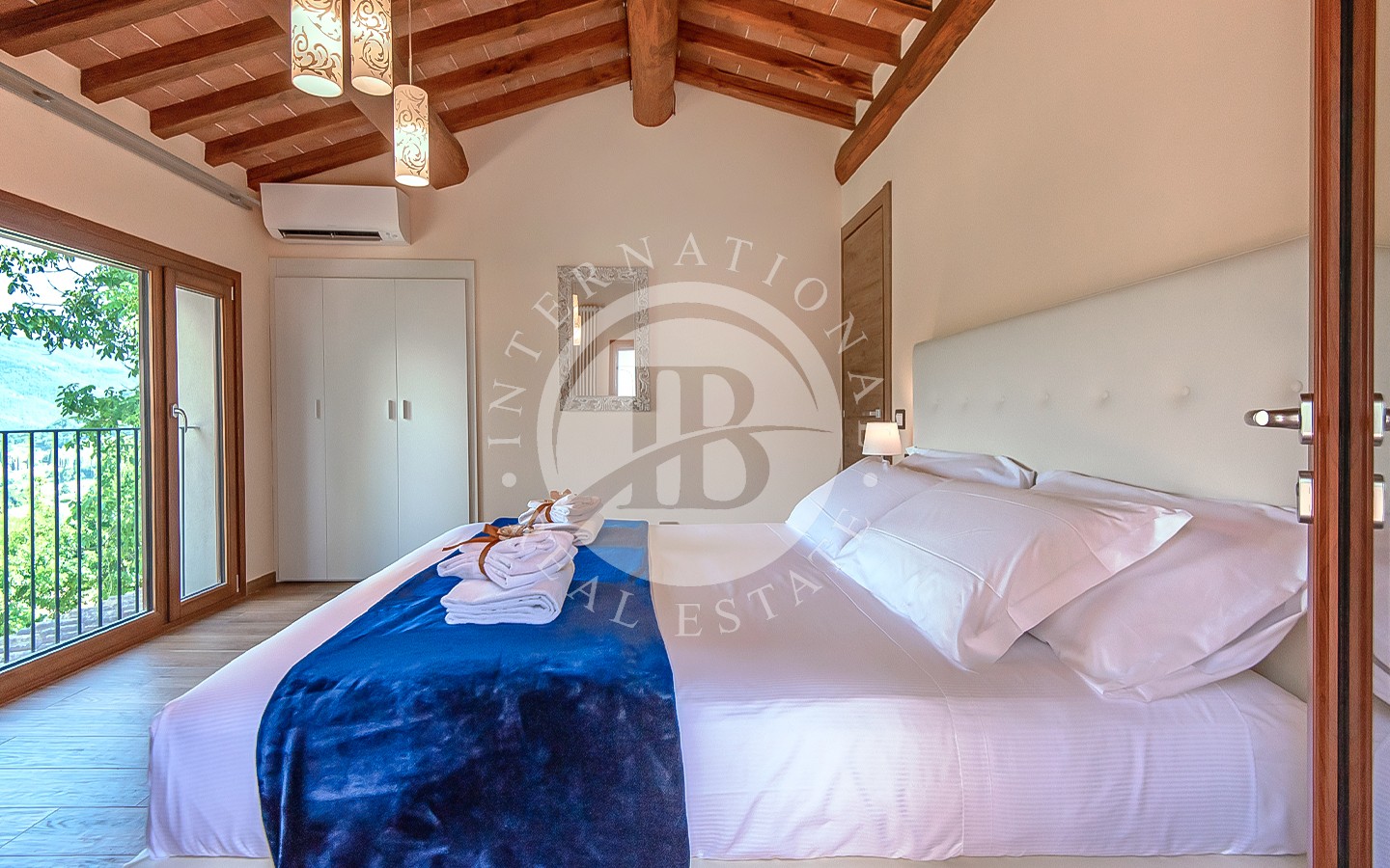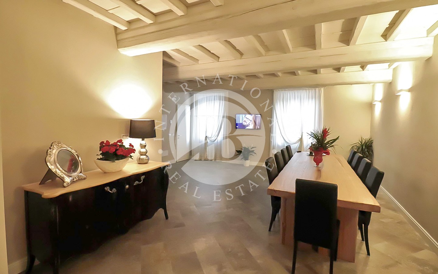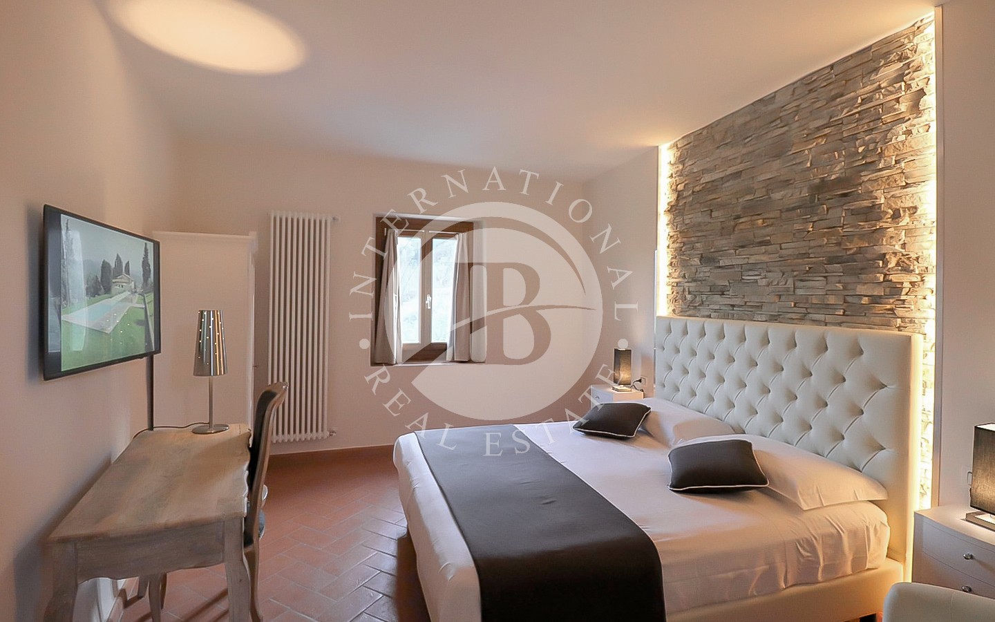 li raffinati, soffitti con travi a vista e pavimenti in cotto. I 13 bagni offrono finiture di alta qualità, combinando elementi tradizionali con moderne comodità. La villa ospita anche una spa con sauna e bagno turco, perfetta per momenti di relax. L'area ristorante e le ampie aree comuni sono ideali per eventi e ricevimenti, offrendo un ambiente accogliente e sofisticato.