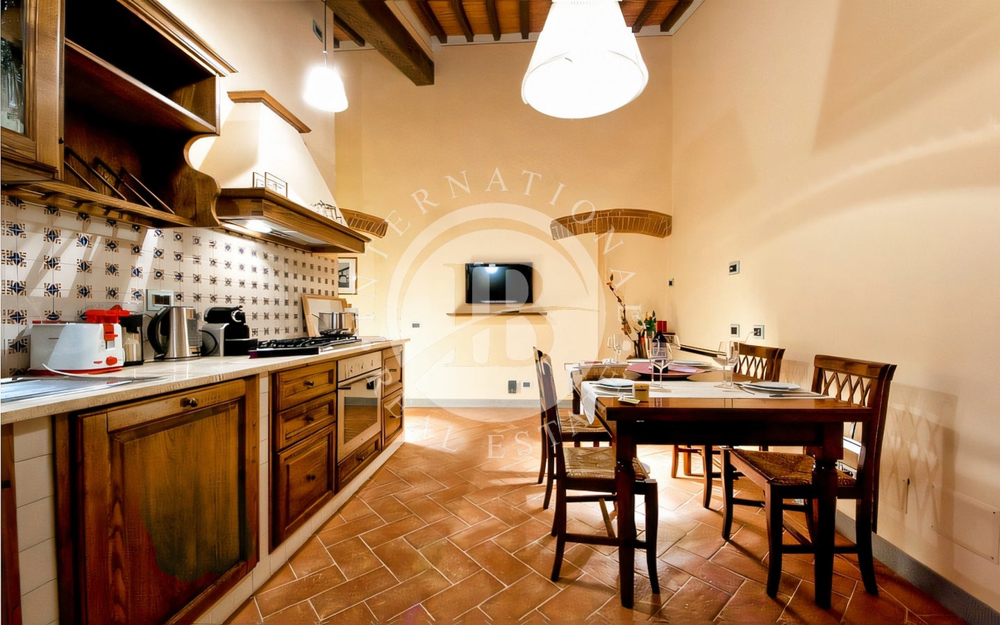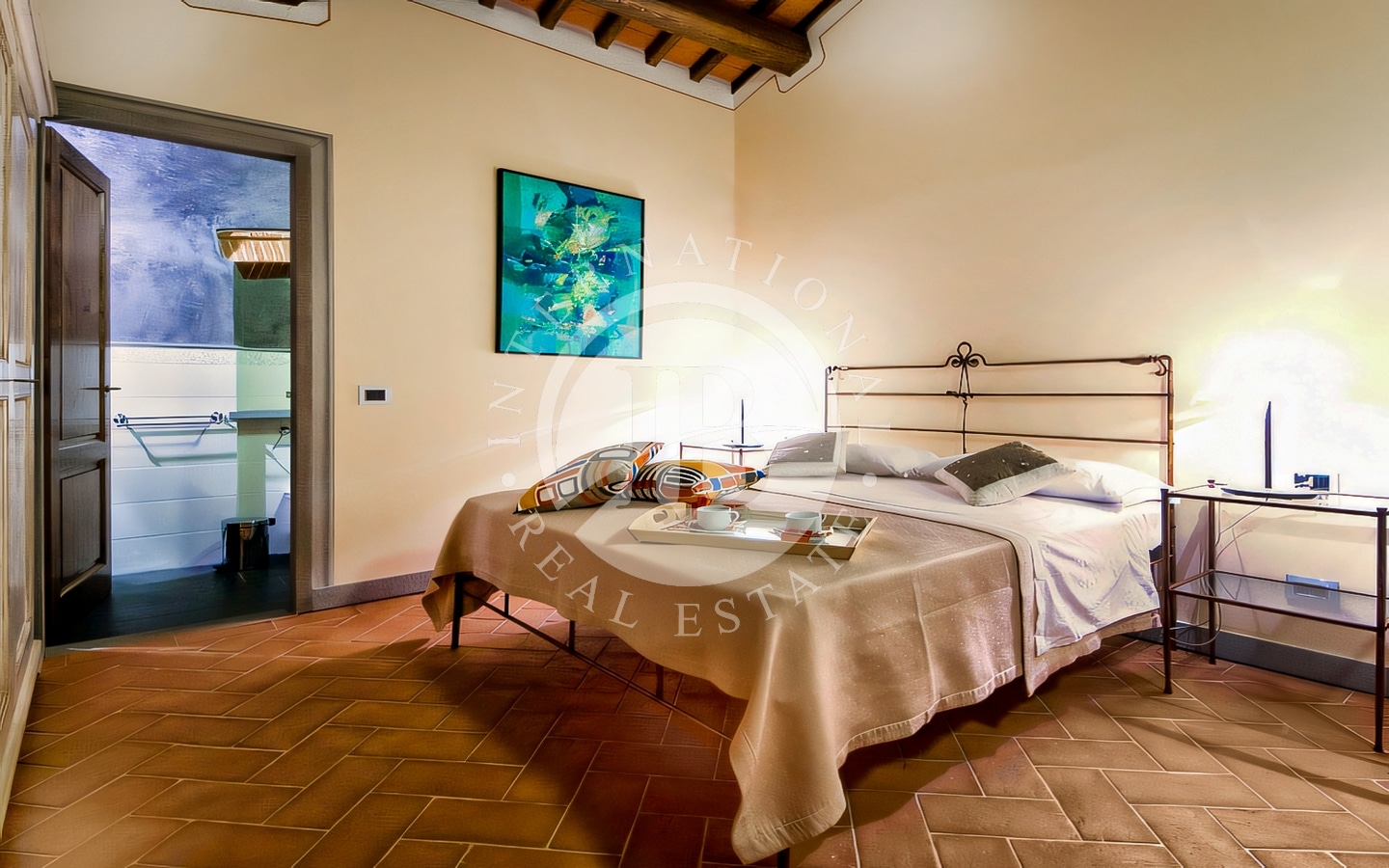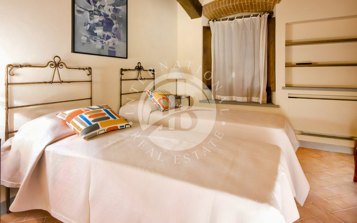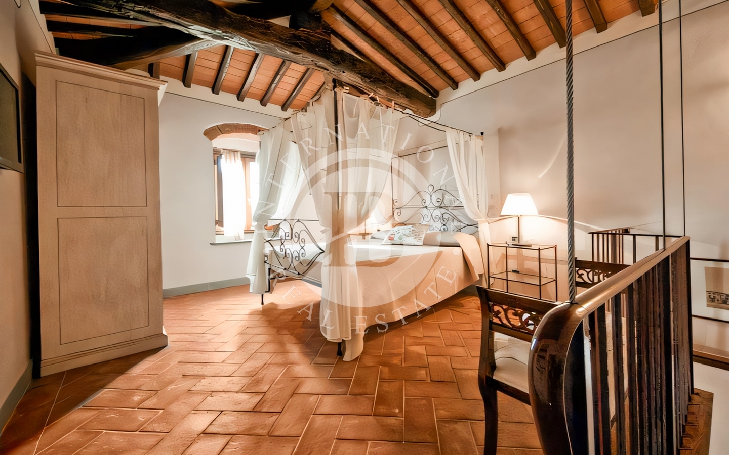 La proprietà è un autentico esempio di architettura toscana, caratterizzata da due torri laterali e un doppio ordine di archi che valorizzano l’ingresso principale. Il restauro del 2008 ha preservato il fascino storico, integrando comfort moderni e dettagli di pregio, tra cui pavimenti in cotto e soffitti con travi in legno a vista. Inoltre, la presenza di un forno a legna e di una sauna sottolinea l'esclusività della proprietà. Ideale sia per una residenza privata di lusso che per un’attività agrituristica di alto livello.