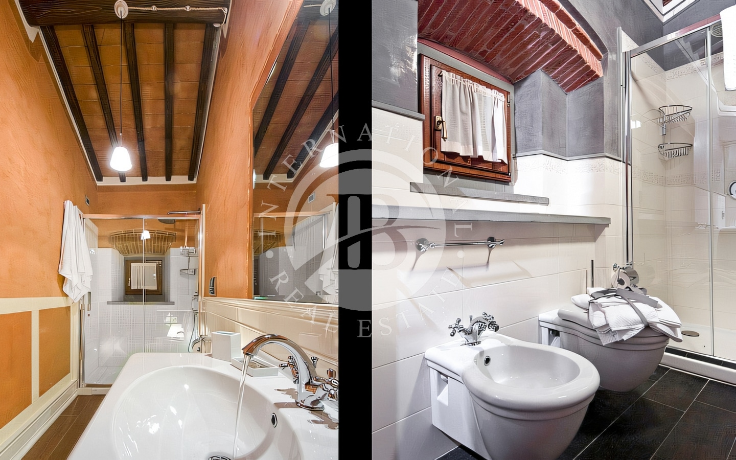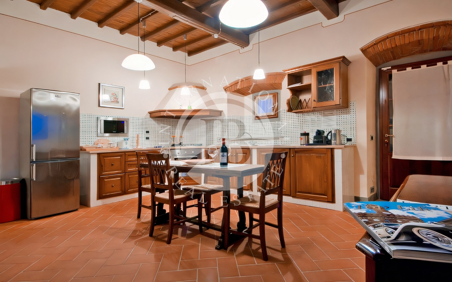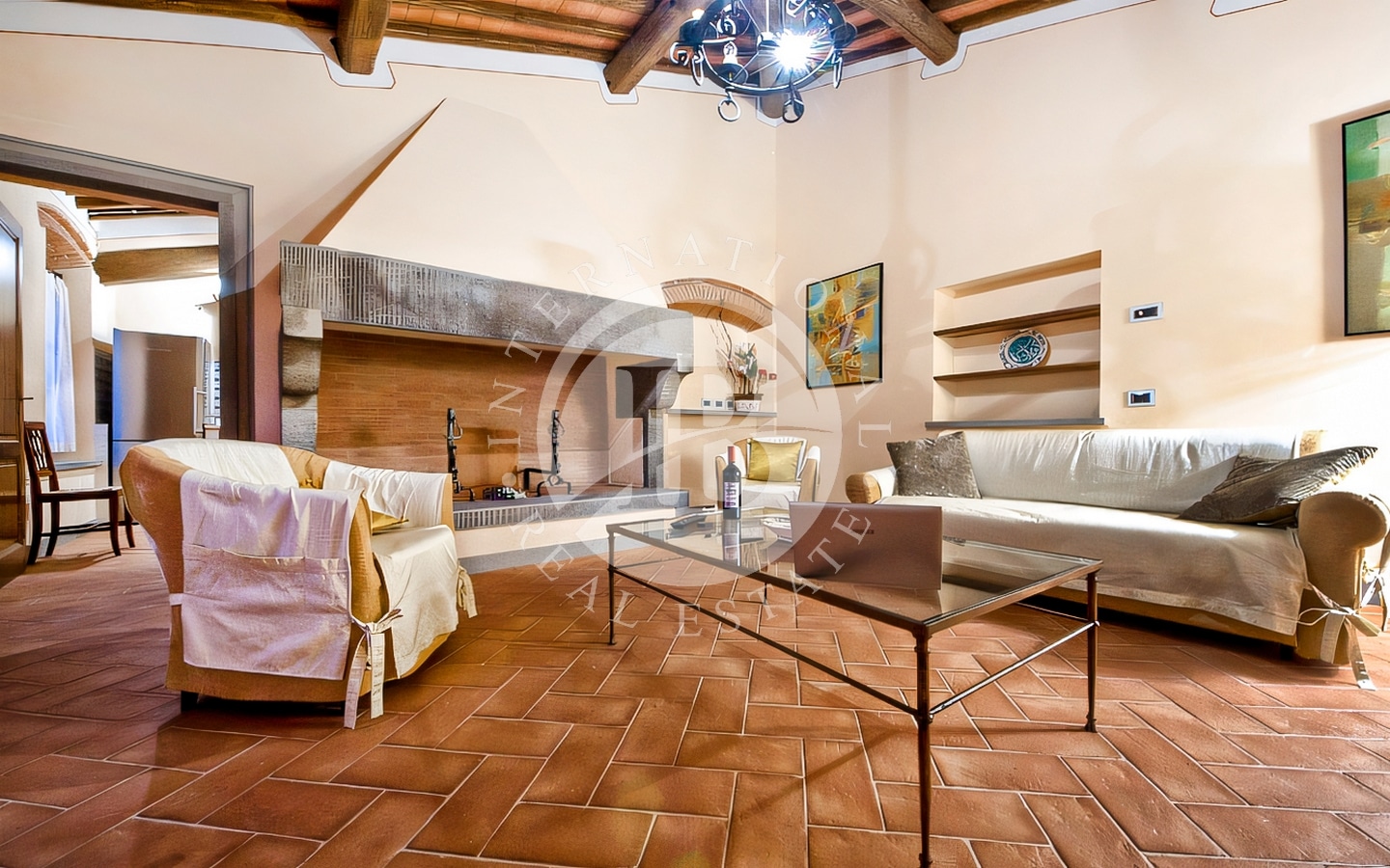 La proprietà è un autentico esempio di architettura toscana, caratterizzata da due torri laterali e un doppio ordine di archi che valorizzano l’ingresso principale. Il restauro del 2008 ha preservato il fascino storico, integrando comfort moderni e dettagli di pregio, tra cui pavimenti in cotto e soffitti con travi in legno a vista. Inoltre, la presenza di un forno a legna e di una sauna sottolinea l'esclusività della proprietà. Ideale sia per una residenza privata di lusso che per un’attività agrituristica di alto livello.