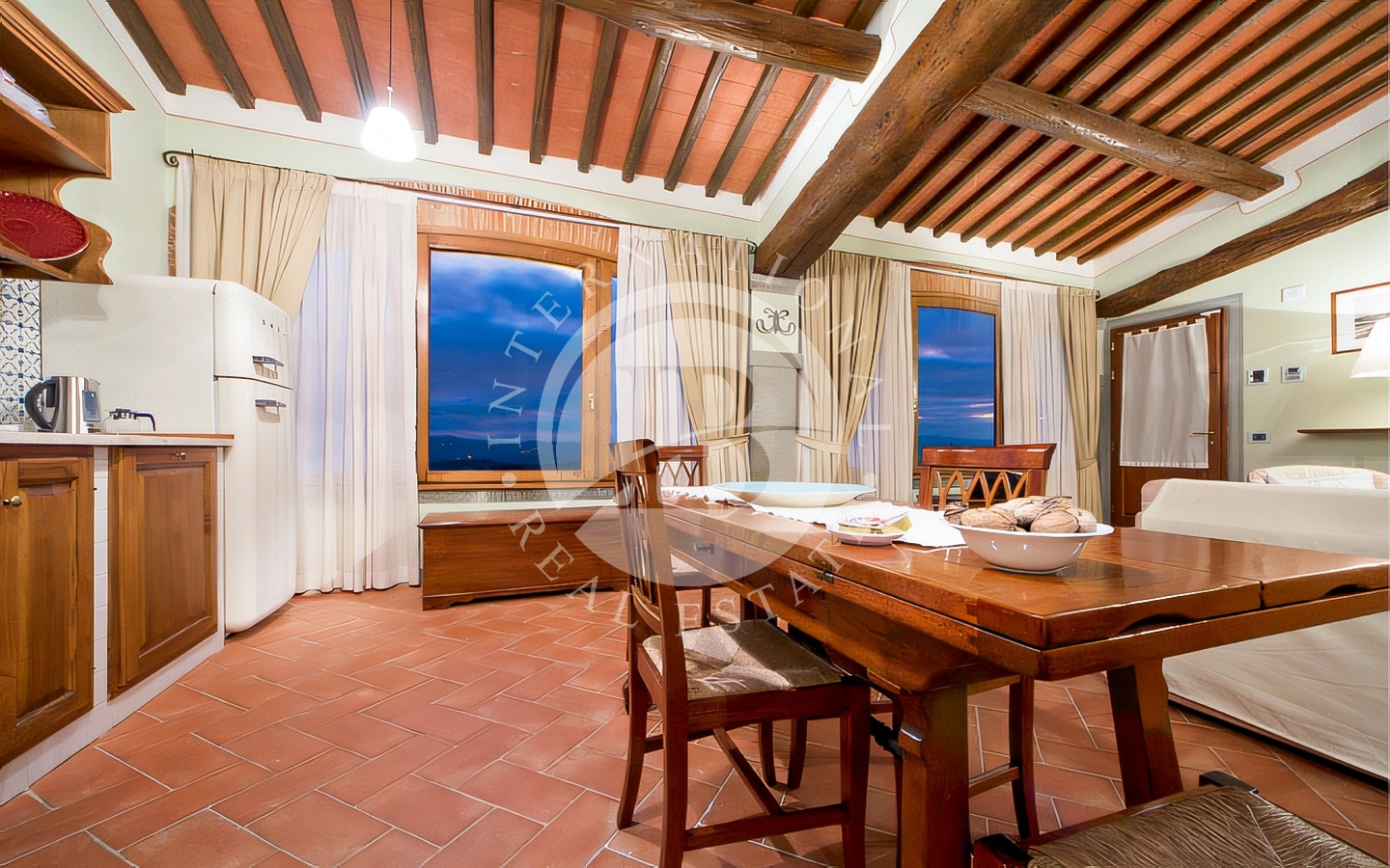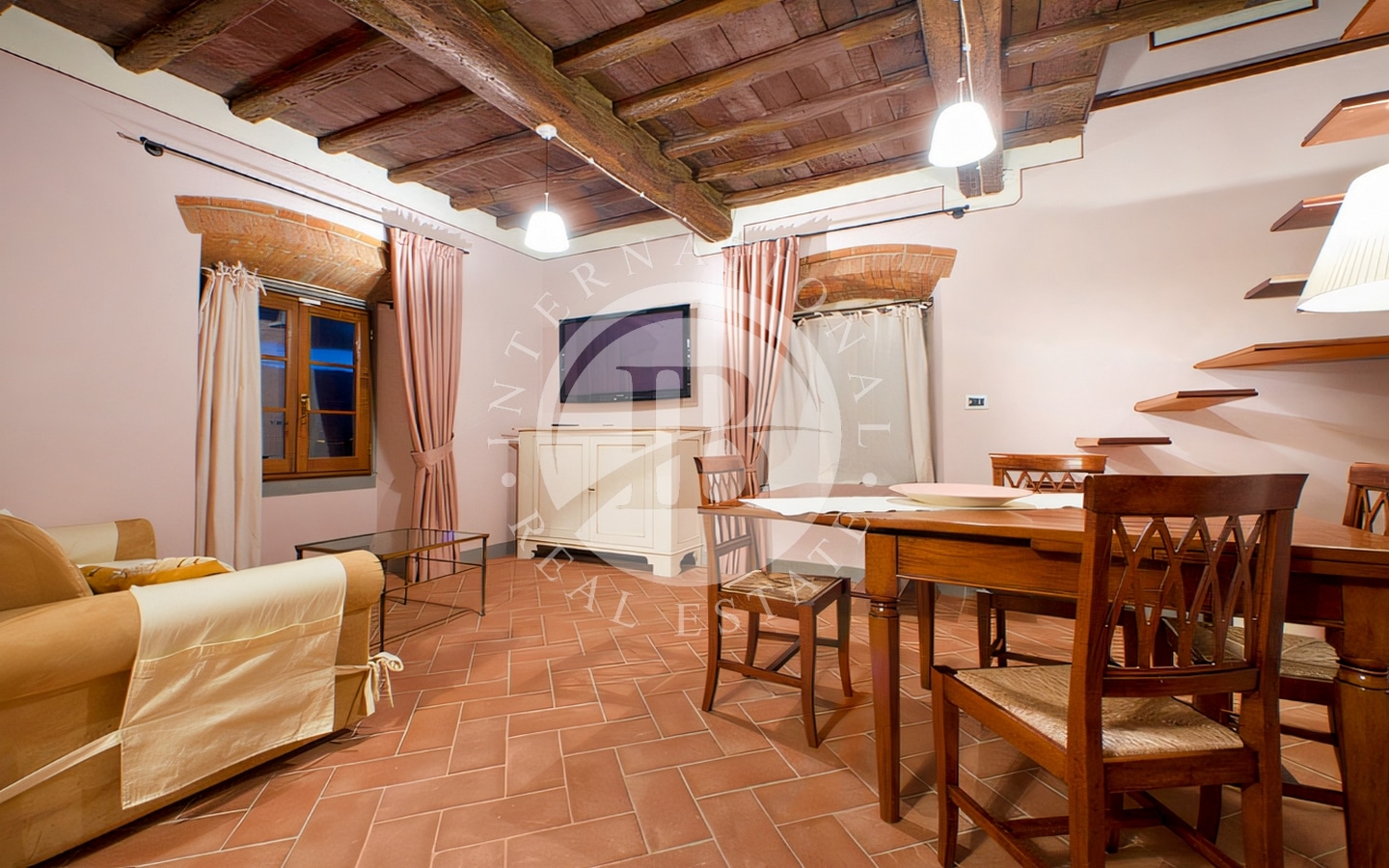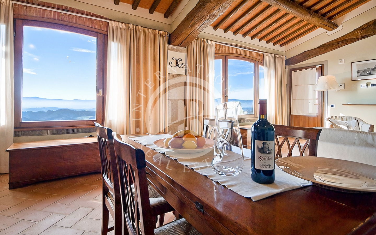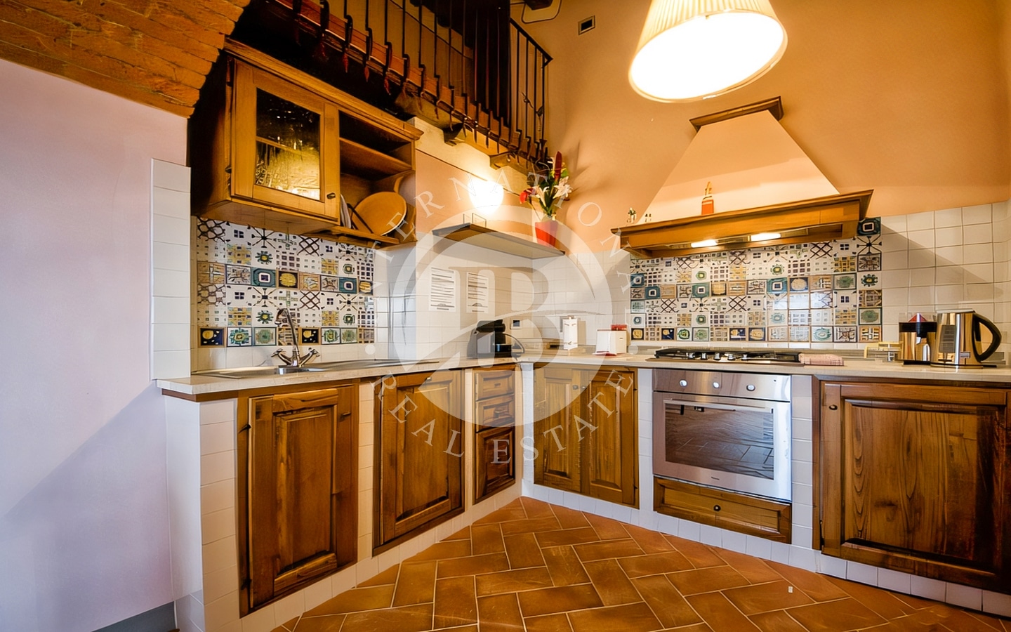 La proprietà è un autentico esempio di architettura toscana, caratterizzata da due torri laterali e un doppio ordine di archi che valorizzano l’ingresso principale. Il restauro del 2008 ha preservato il fascino storico, integrando comfort moderni e dettagli di pregio, tra cui pavimenti in cotto e soffitti con travi in legno a vista. Inoltre, la presenza di un forno a legna e di una sauna sottolinea l'esclusività della proprietà. Ideale sia per una residenza privata di lusso che per un’attività agrituristica di alto livello.