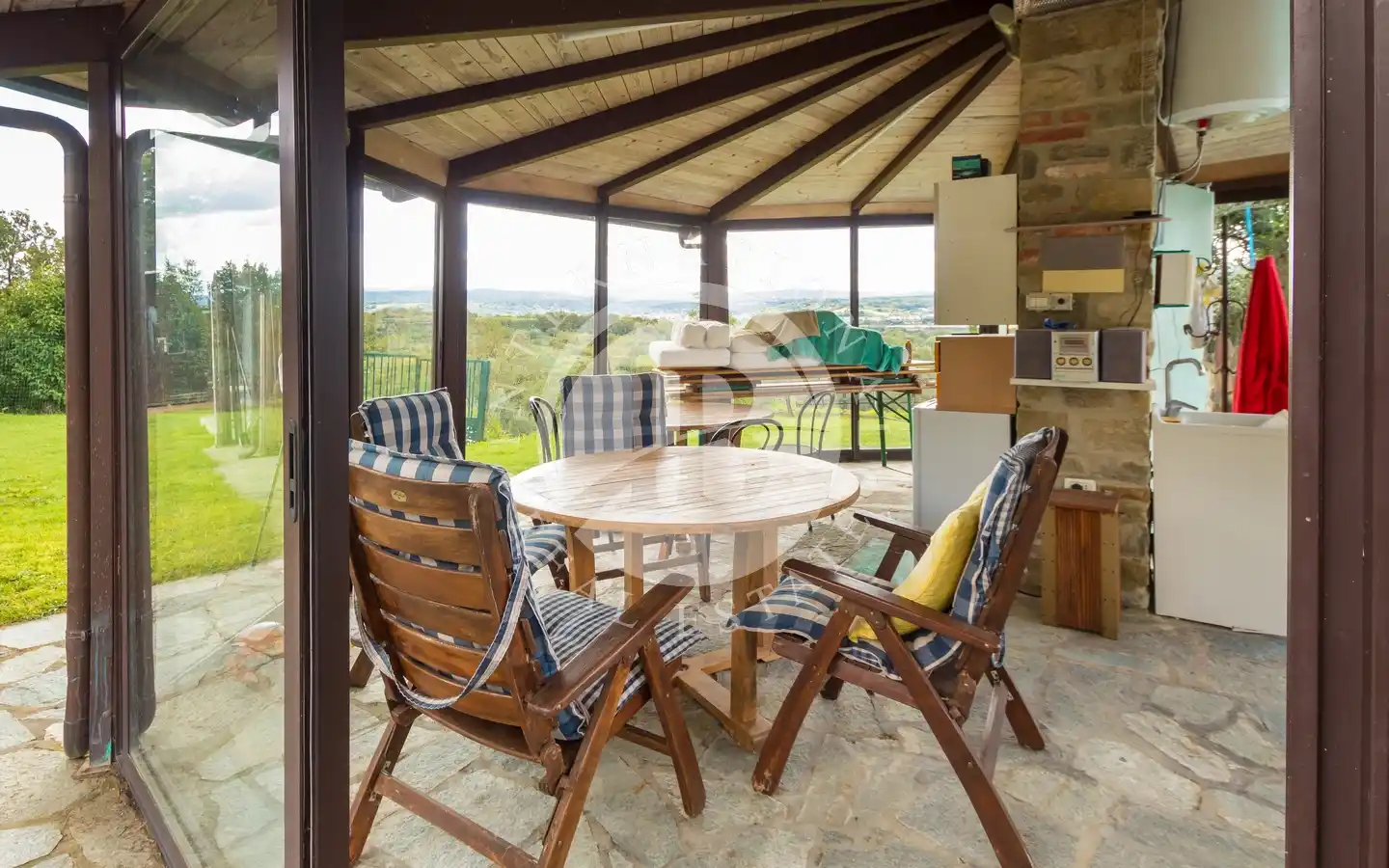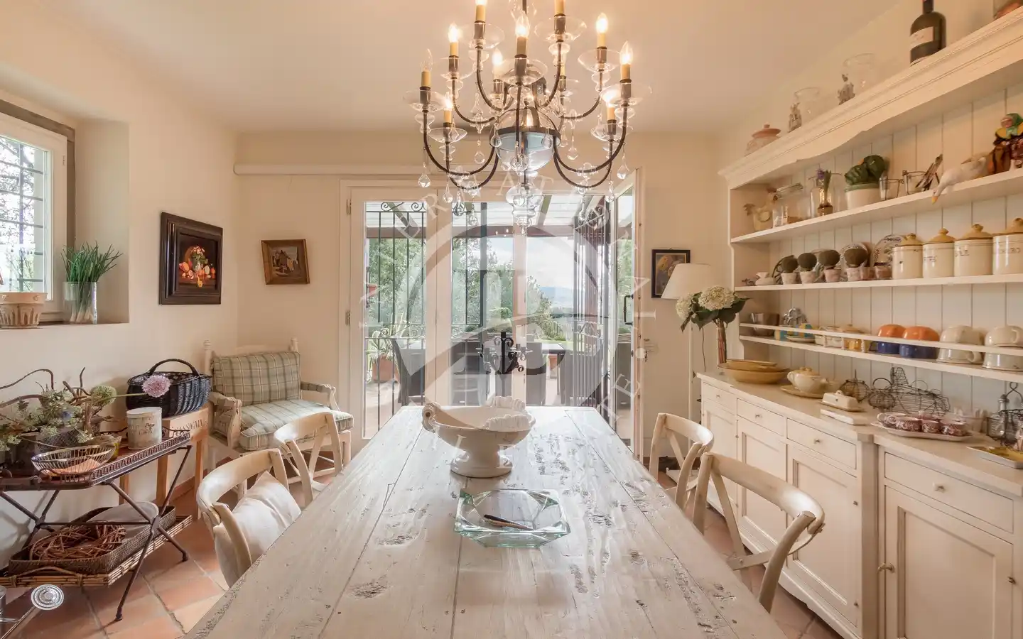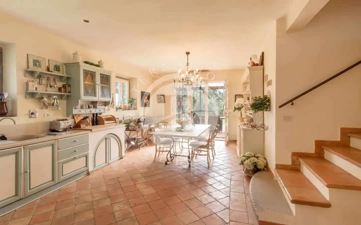 Gli spazi esterni offrono aree dedicate al relax e al tempo libero: giardini e parchi, piscina coperta con idromassaggio, piscina all’aperto, campo da tennis, aree attrezzate con barbecue e forno a legna, pergole ombreggiate e angoli per pranzi conviviali. Il terreno comprende uliveti, vigneti, bosco e seminativi, creando un perfetto equilibrio tra natura, produttività e bellezza paesaggistica. Una cantina è già pronta per la conservazione dei vini prodotti in loco, ideale per gli amanti dell’enologia.