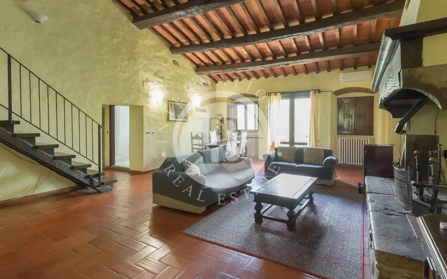 ti luminosi e terrazze panoramiche, alcuni con giardini privati e logge che regalano scorci tipicamente toscani. La disposizione degli edifici consente inoltre di convertire l’intero complesso in un’unica residenza di grande fascino, senza perdere la versatilità funzionale degli spazi.