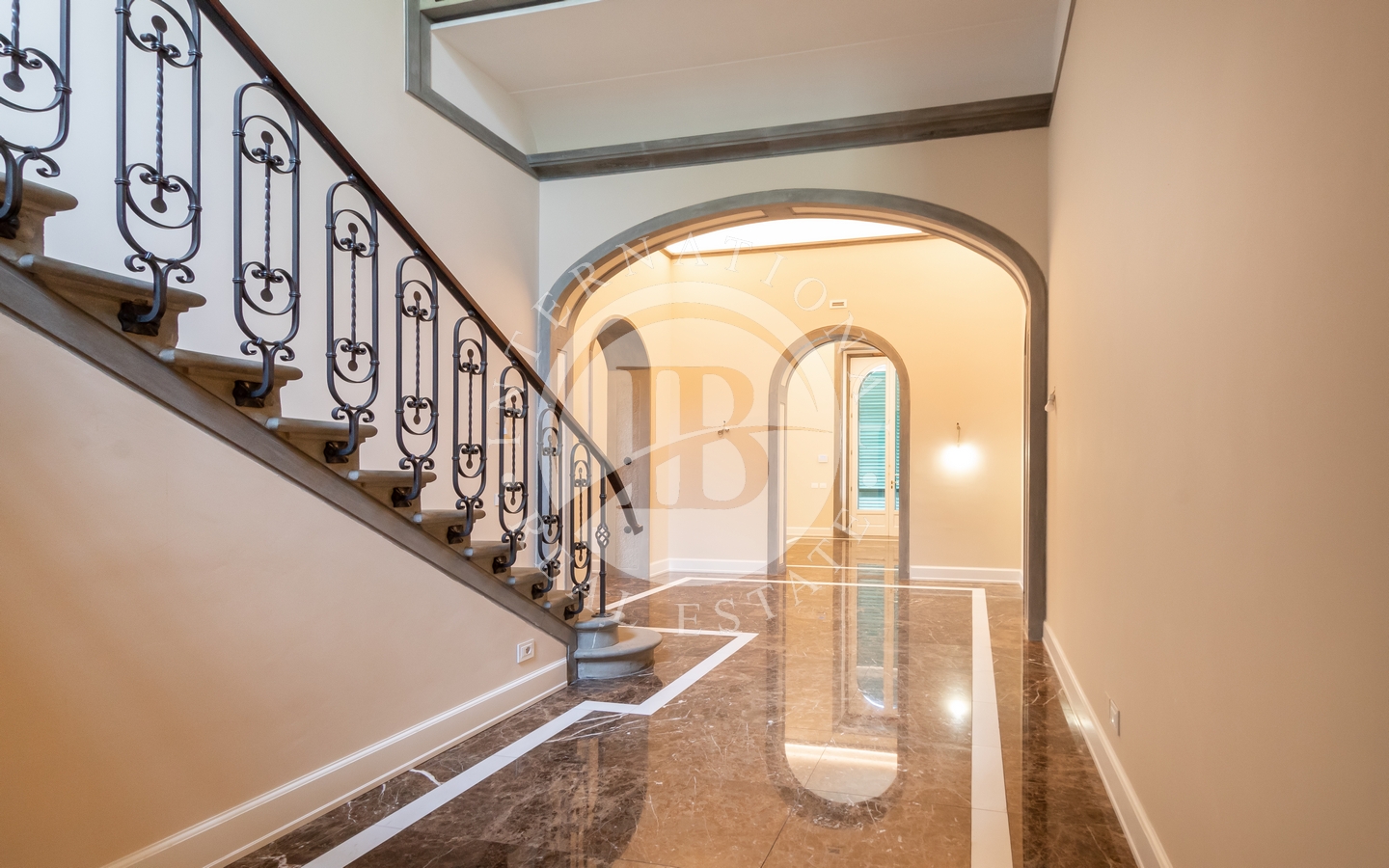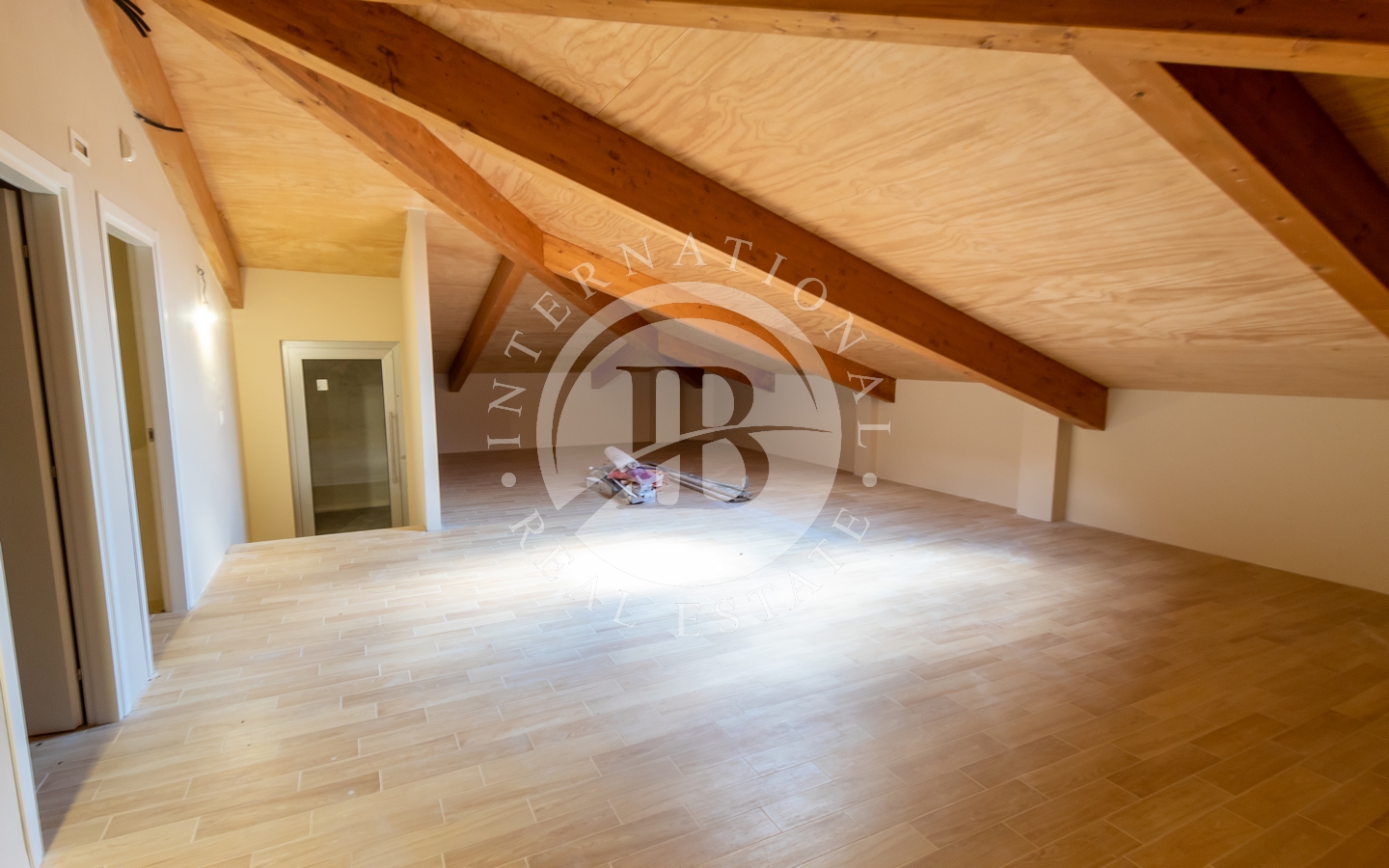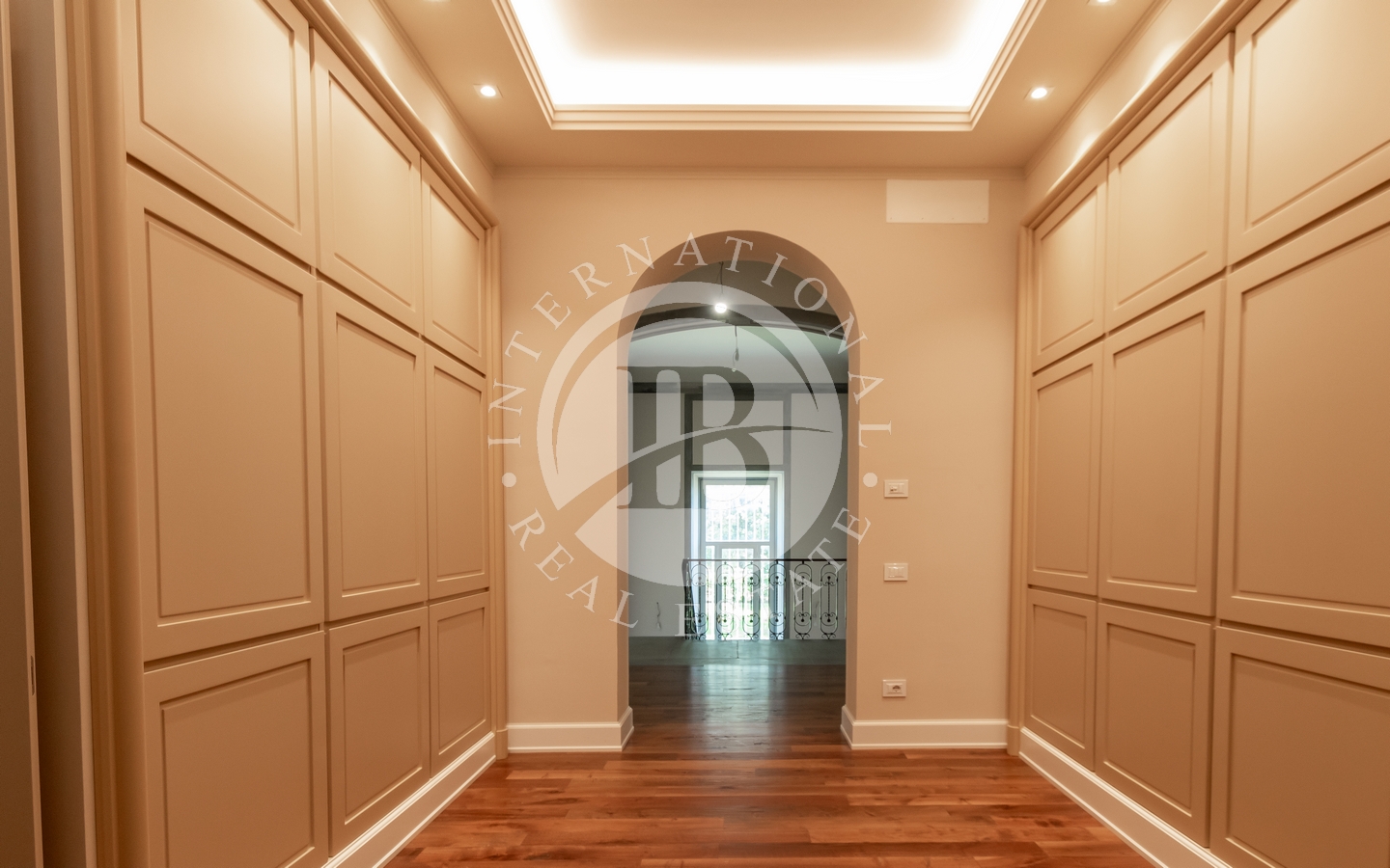 Al piano superiore, tre ampie suite con cabine armadio, ciascuna con il proprio bagno, offrono il massimo comfort. Il piano mansardato è stato trasformato in una spaziosa mansarda con tre ampie stanze, raggiungibili sia tramite una scala che un ascensore.