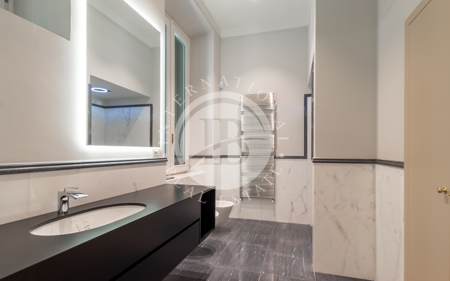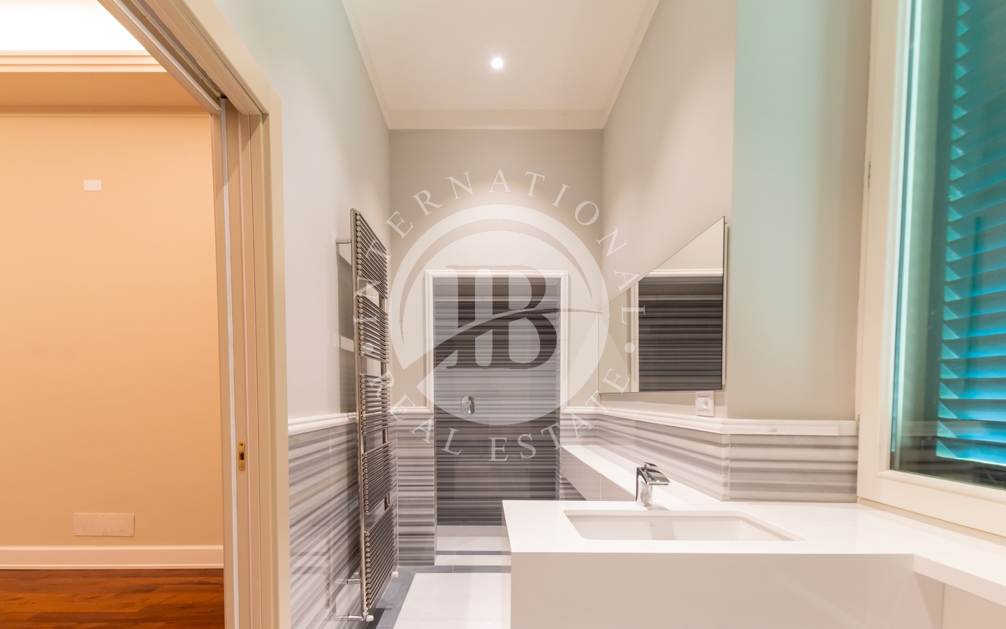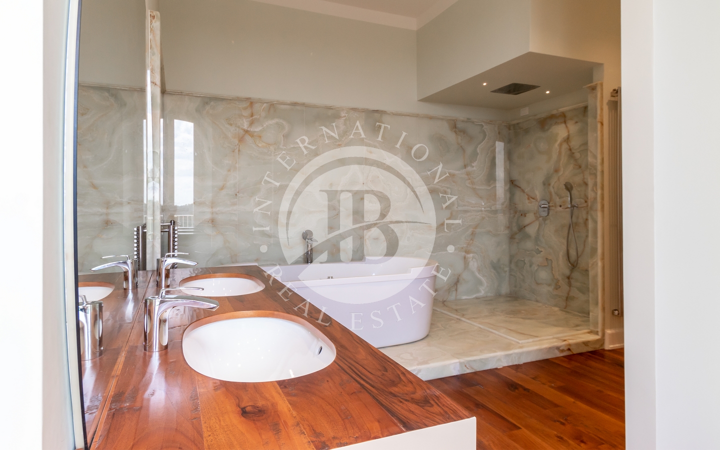 Al piano superiore, tre ampie suite con cabine armadio, ciascuna con il proprio bagno, offrono il massimo comfort. Il piano mansardato è stato trasformato in una spaziosa mansarda con tre ampie stanze, raggiungibili sia tramite una scala che un ascensore.