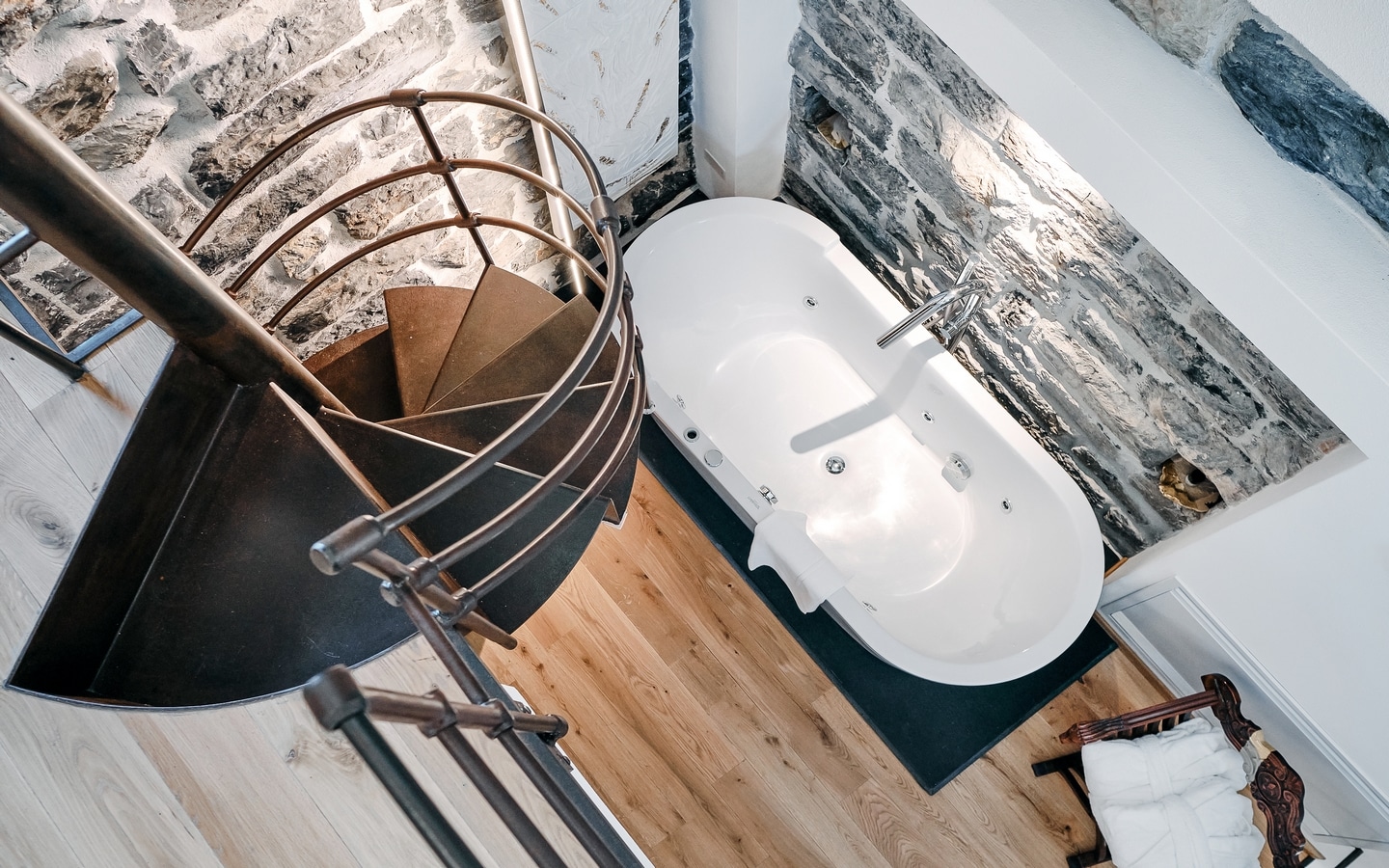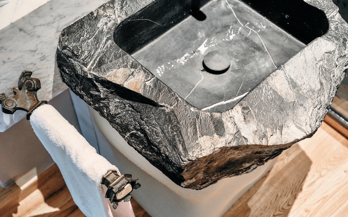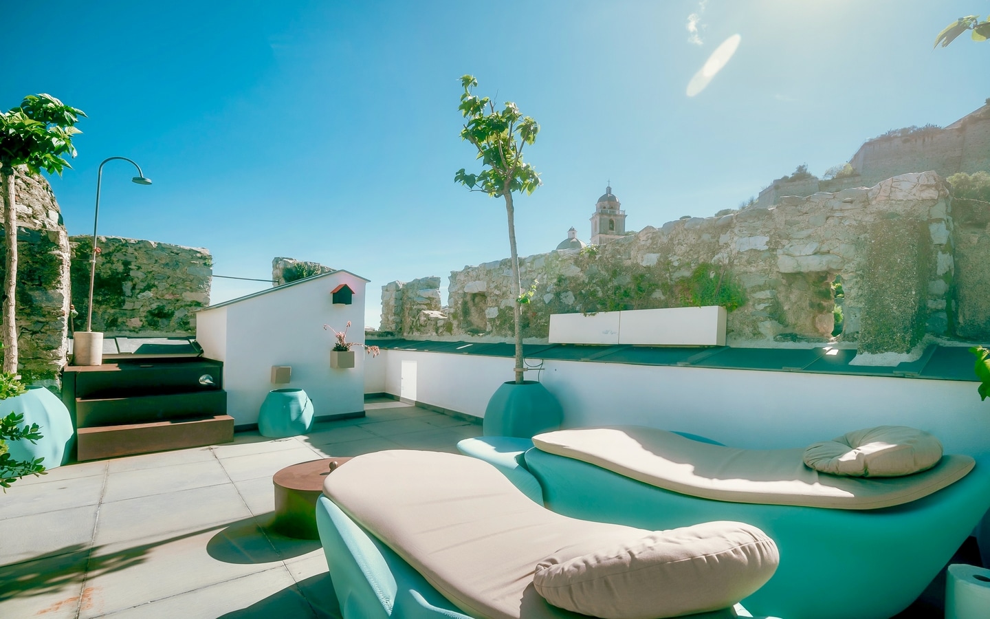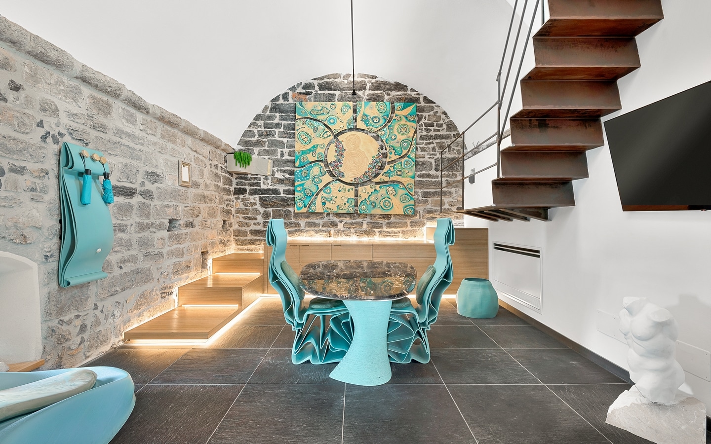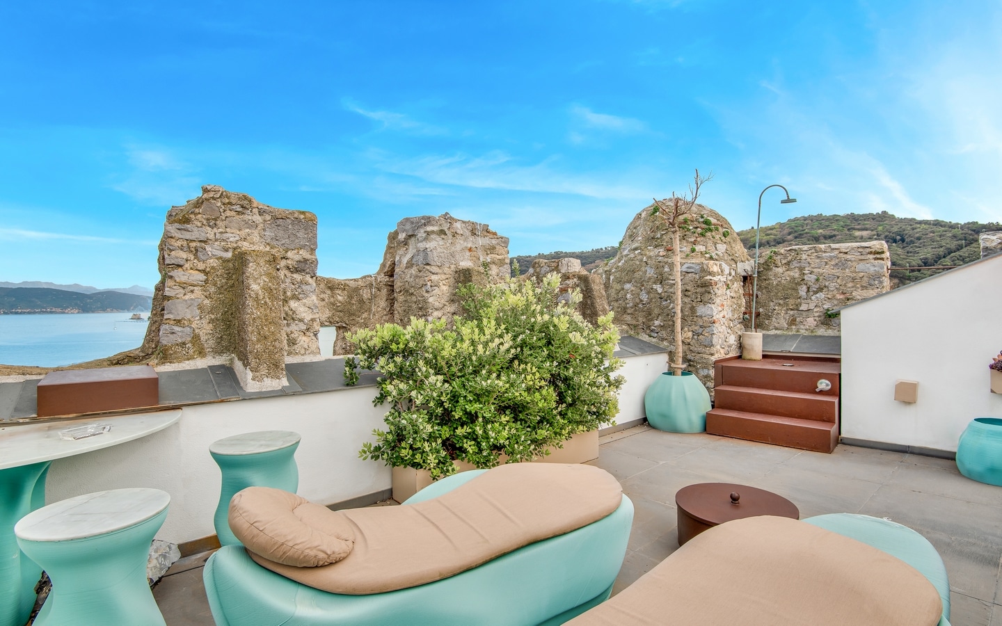 tingue per arredi di design, realizzati con materiali a km 0, tra cui pregiati marmi e pietre della Liguria e Toscana. Ogni elemento d'arredo è stato scelto con cura per rispettare l'identità storica della torre, con quadri di artisti locali e materiali sostenibili che si fondono armoniosamente con l'architettura medievale. L'atmosfera è resa unica dalle pietre a vista e dalle finestre affacciate direttamente sul mare cristallino, regalando un senso di continuità con il paesaggio circostante. Un luogo dove il lusso si esprime nella cura dei dettagli e nell'autenticità degli ambienti.