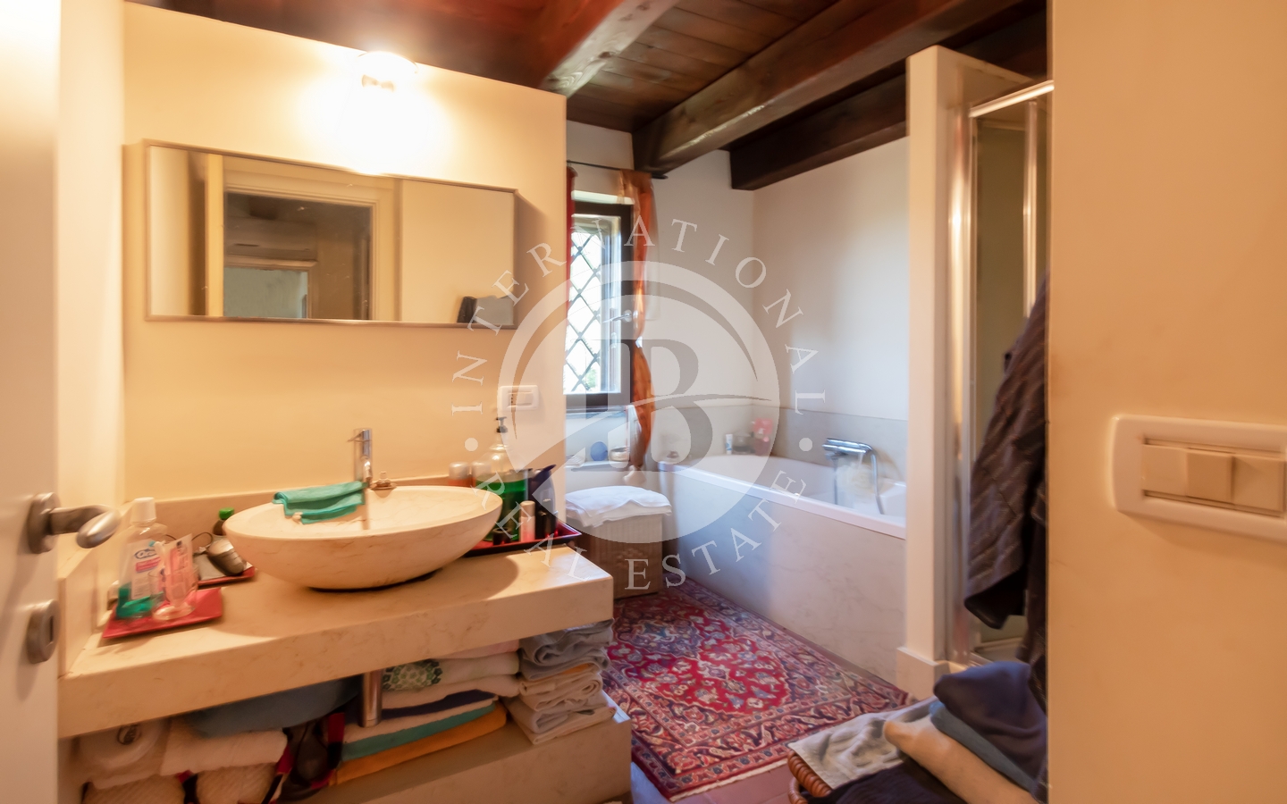 Completano la proprietà il terreno di circa 3500 mq, l’ampio box di 40 mq oltre a magazzini e cantine pertinenziali.