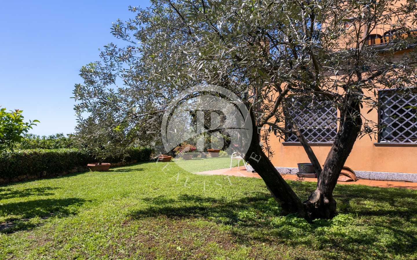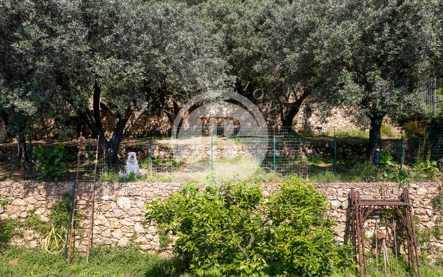 Varcata la cancellata elettrica di accesso e oltrepassata l’ampia area parcheggio, ci immergiamo in un ricco giardino pianeggiante tra piante di agrumi ed ulivi, atto ad ospitare anche una piscina.