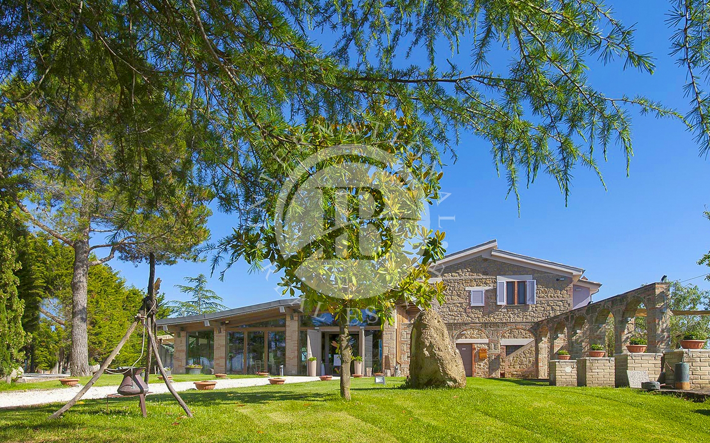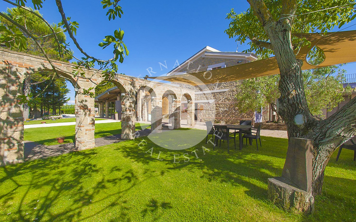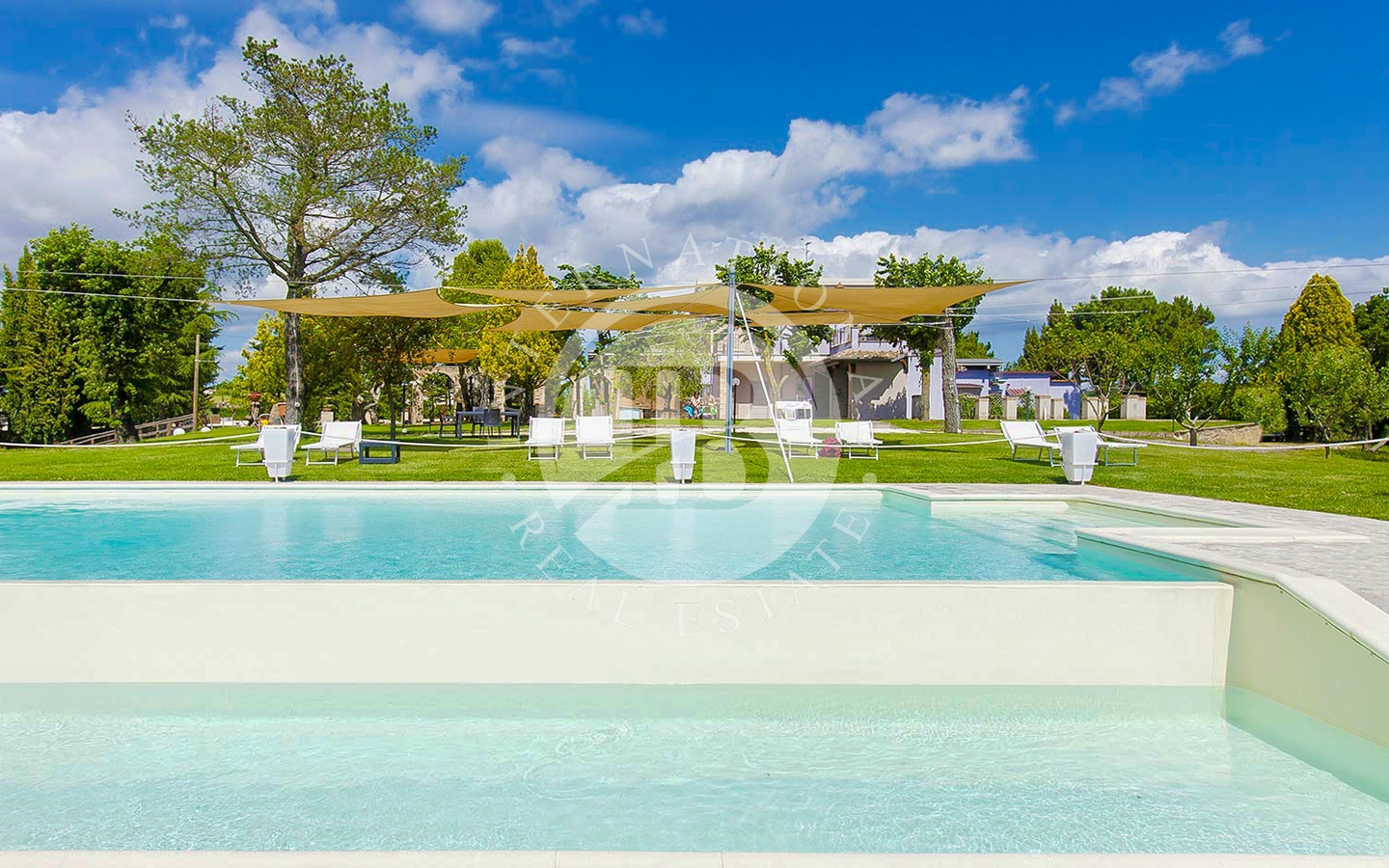 parco privato di circa 18 ettari di terreno curato, tra uliveti, prati e sentieri, con una meravigliosa piscina panoramica e un laghetto che aggiungono fascino e tranquillità all’ambiente.