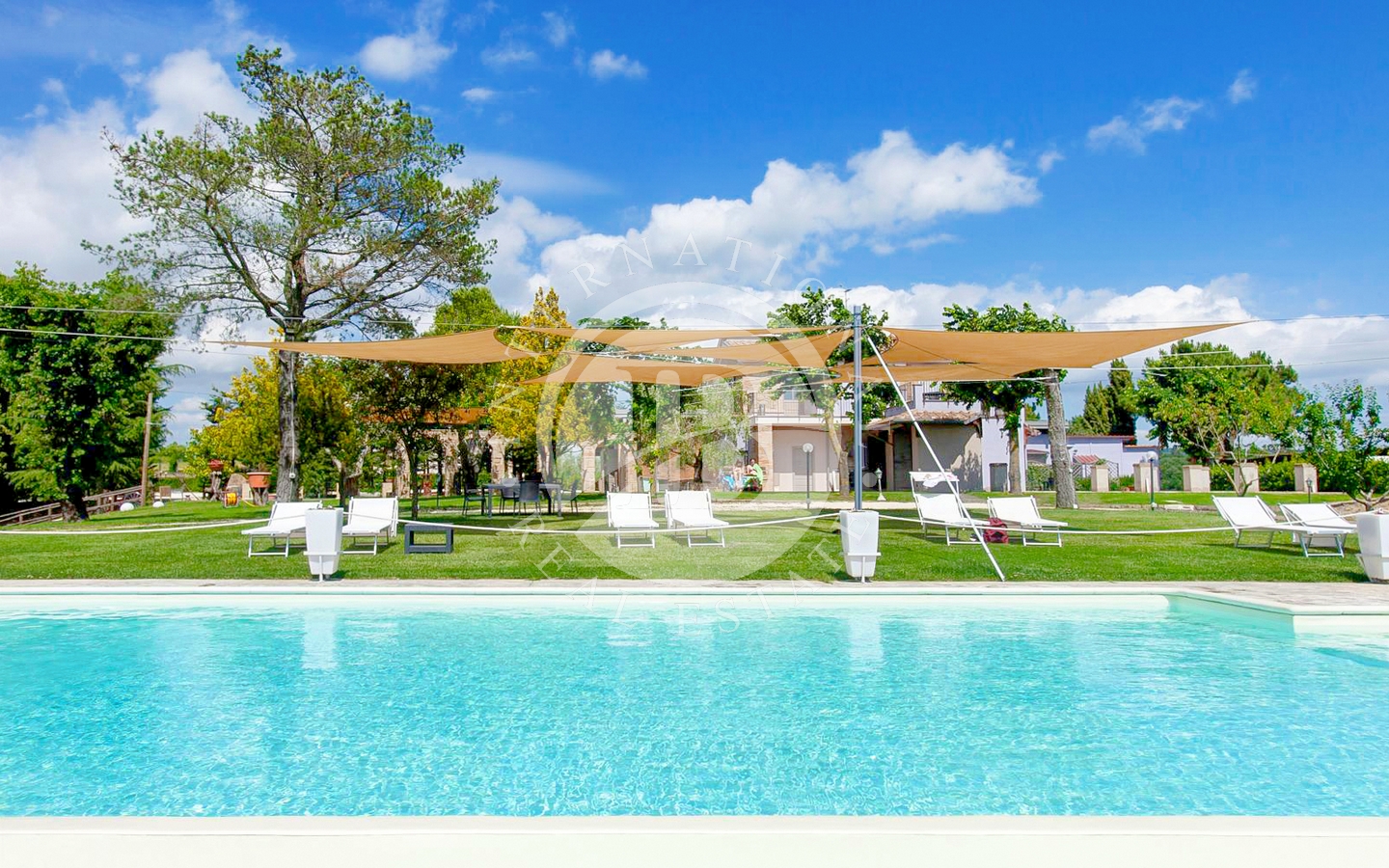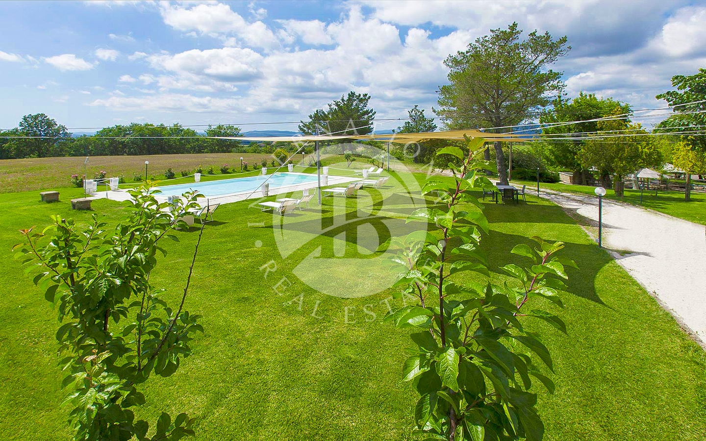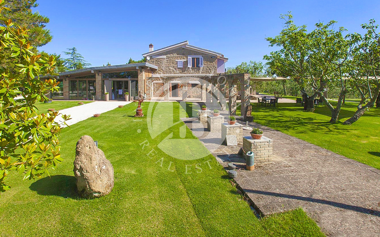 parco privato di circa 18 ettari di terreno curato, tra uliveti, prati e sentieri, con una meravigliosa piscina panoramica e un laghetto che aggiungono fascino e tranquillità all’ambiente.