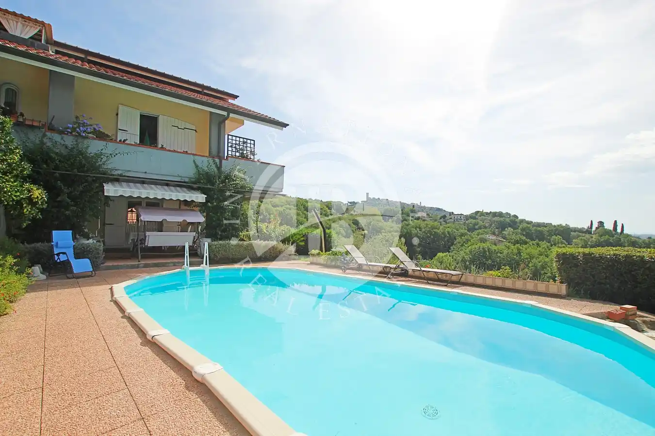 In posizione panoramica, poco distante dal borgo di Castelnuovo Magra, troviamo questa splendida villa di 570 mq con giardino e una grande piscina con vista panoramica. L’immobile è sviluppato su tre piani, con doppio ingresso di cui il primo dal piano seminterrato dove troviamo una taverna con camino funzionante, cucina a vista e portafinestra su veranda dove si possono fare degli splendidi pranzi all’aperto ed accesso alla piscina, un bagno di servizio e accesso diretto al garage con 4/6 posti auto, una cantina con zona lavanderia e…